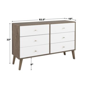 Prepac Milo Mid-Century 6 Drawer Wooden Dresser, 16″ x 52.25″ x 33″, Brown/White