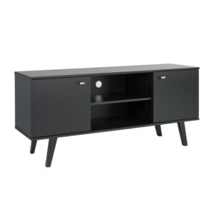 Prepac Milo Mid Century Modern TV Console for TVs Up To 55″, Black: