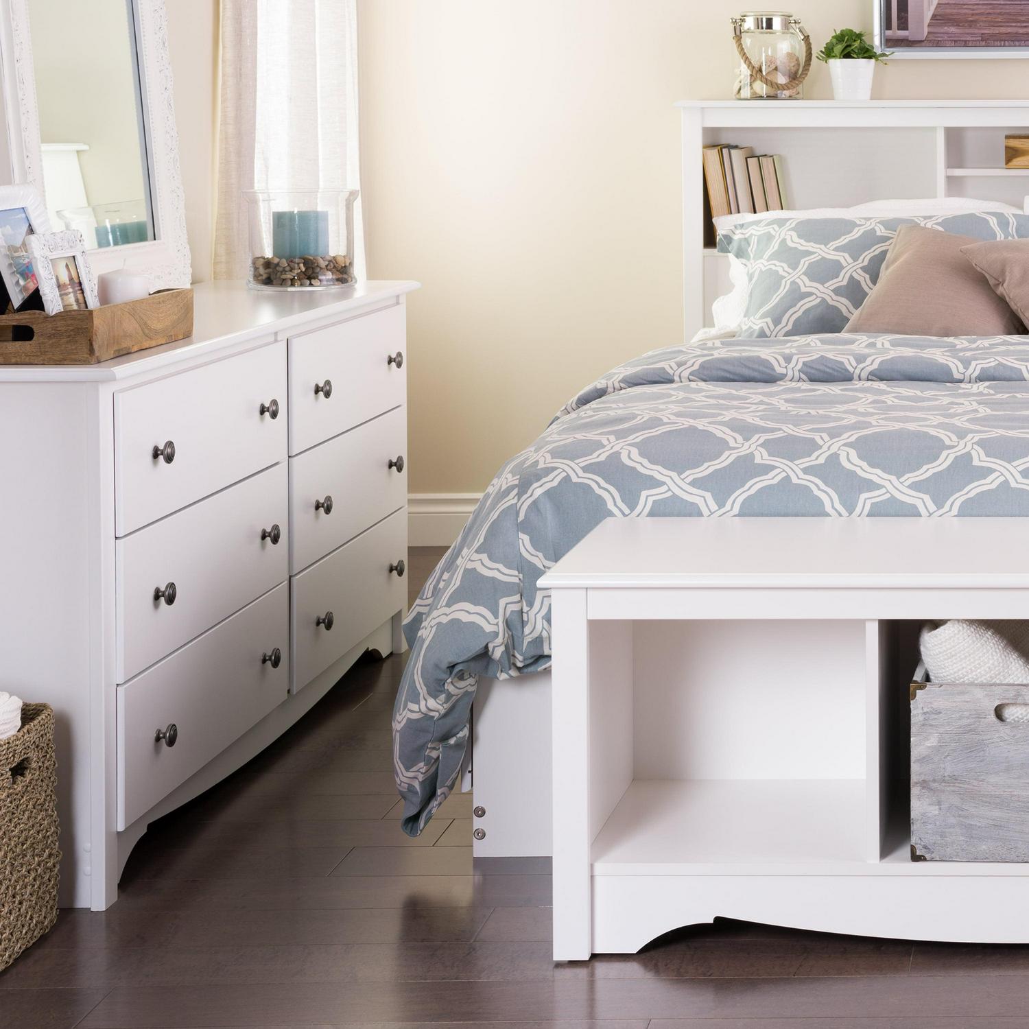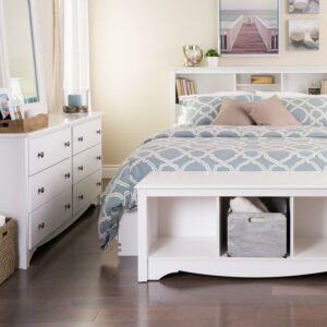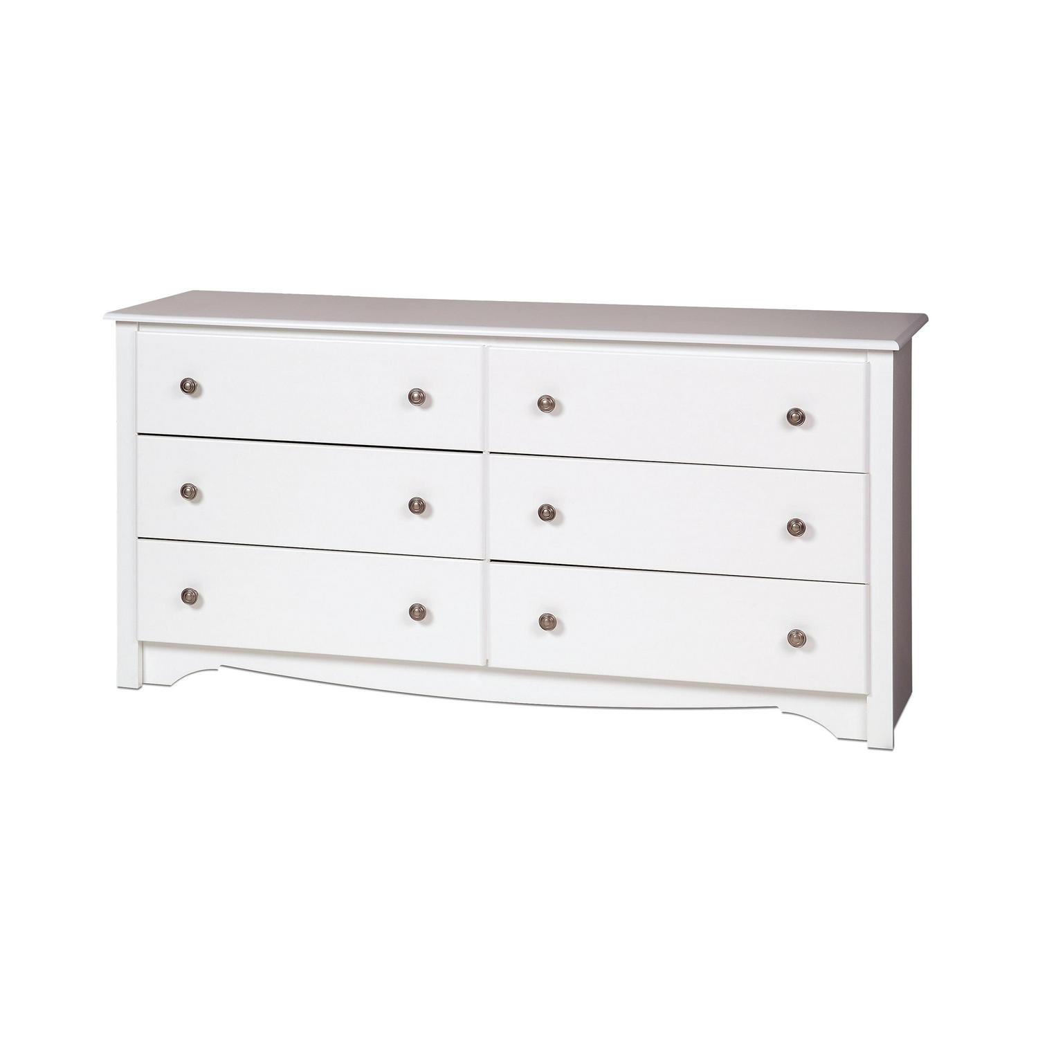 Reimagine your bedroom with this sleek, modern bedroom dresser. The Prepac Monterey 6 drawer dresser presents a combination of style and utility that can easily blend with your existing decor. With a dimension of 16″ D x 59″ W x 29″H, this double dresser is the ideal choice not only for the bedroom but can be a decorative addition to your living room as well. This dresser for bedroom wood blends the charm of wooden dressers for bedrooms with a fresh, modern touch. It offers ample storage space for your clothes in six large drawers, making it not just a decorative item, but a functional piece of bedroom furniture. The sturdy, spacious top of this storage dresser can also double as a TV stand or lamp stand, adding more value to its usage. The elegantly curved kick plate and side moldings, combined with the robust brushed nickel knobs and the glossy black finish, subtly enhances the ambiance of any room. Crafted from non-toxic laminated composite woods, this bedroom dresser assures longevity while adding a classy touch to the bedroom decor. This white dresser can be efficiently used as a storage cabinet in your walk-in closet or even the living room, adding to the decor while keeping clothes and other items organized. The Prepac Sonoma 6 drawer dresser ships flat-packed and can be assembled in less than two hours. Pair it with other Sonoma collection items for a harmonious and stylized look in your home. With its blend of design, utility and efficiency, this white dresser can surely elevate the character of any room in your home.