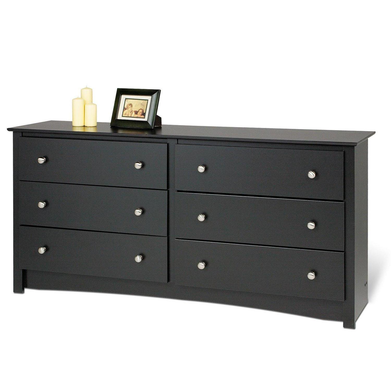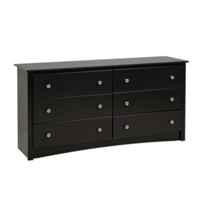 Prepac Sonoma Bedroom Furniture: Black Double Dresser for Bedroom, 6-Drawer Wide Chest of Drawers, Traditional Bedroom Dresser, BDC-6330-V, 59 W x 16 D x 29 H