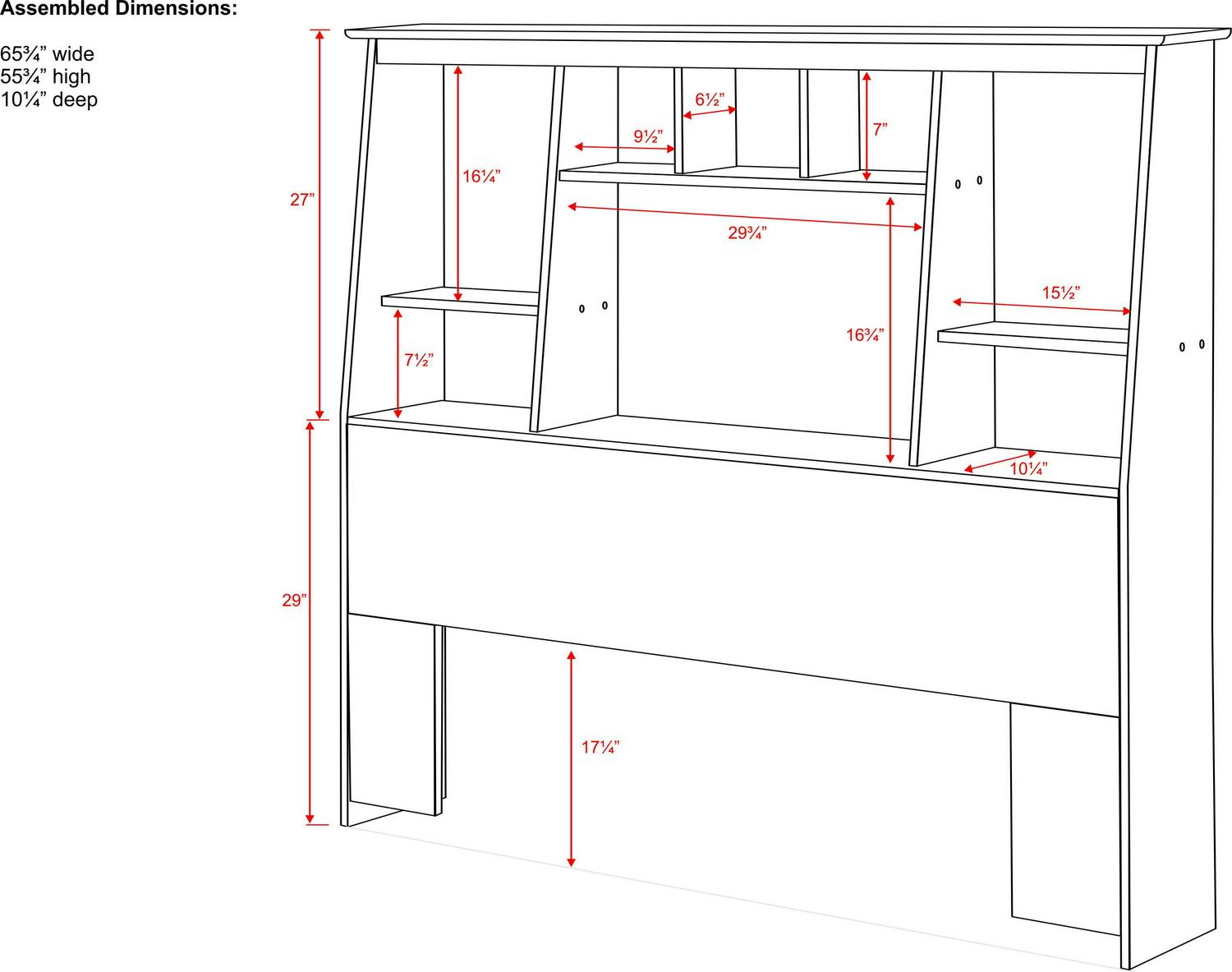 Get big storage in any bedroom with the Full/Queen Tall Slant-Back Bookcase Headboard. Boasting a unique design that will complement your existing decor, this headboard offers maximum storage space while taking up minimum floor space. Fill the eight storage compartments with bedside books, knick-knacks, and whatever else you can fit in their various sizes. This free-standing product is designed to be paired with any full or queen bed including our Mate’s Platform Storage Beds and our Tall Captain’s Platform Storage Beds.