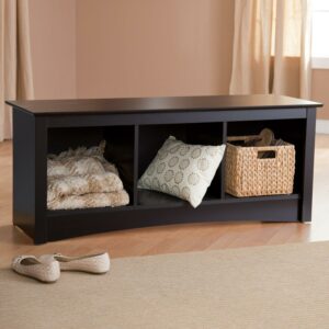 Versatile and practical, the Prepac Sonoma Storage Bench, Black Laminate Finish is at home in any room. Store favorite shoes in the three compartments under the sturdy bench and keep it in your front hallway. It’s equally suitable for holding your baskets, books and blankets in other areas of the home, such as at the foot of a bed. With a simple style that blends with any decor, this is one bench that won’t leave you on the sidelines.