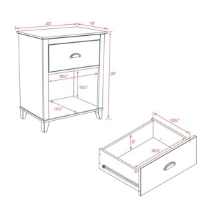 Prepac Yaletown Modern Tall Bedroom Nightstand with Open Shelf, 1-Drawer, White: