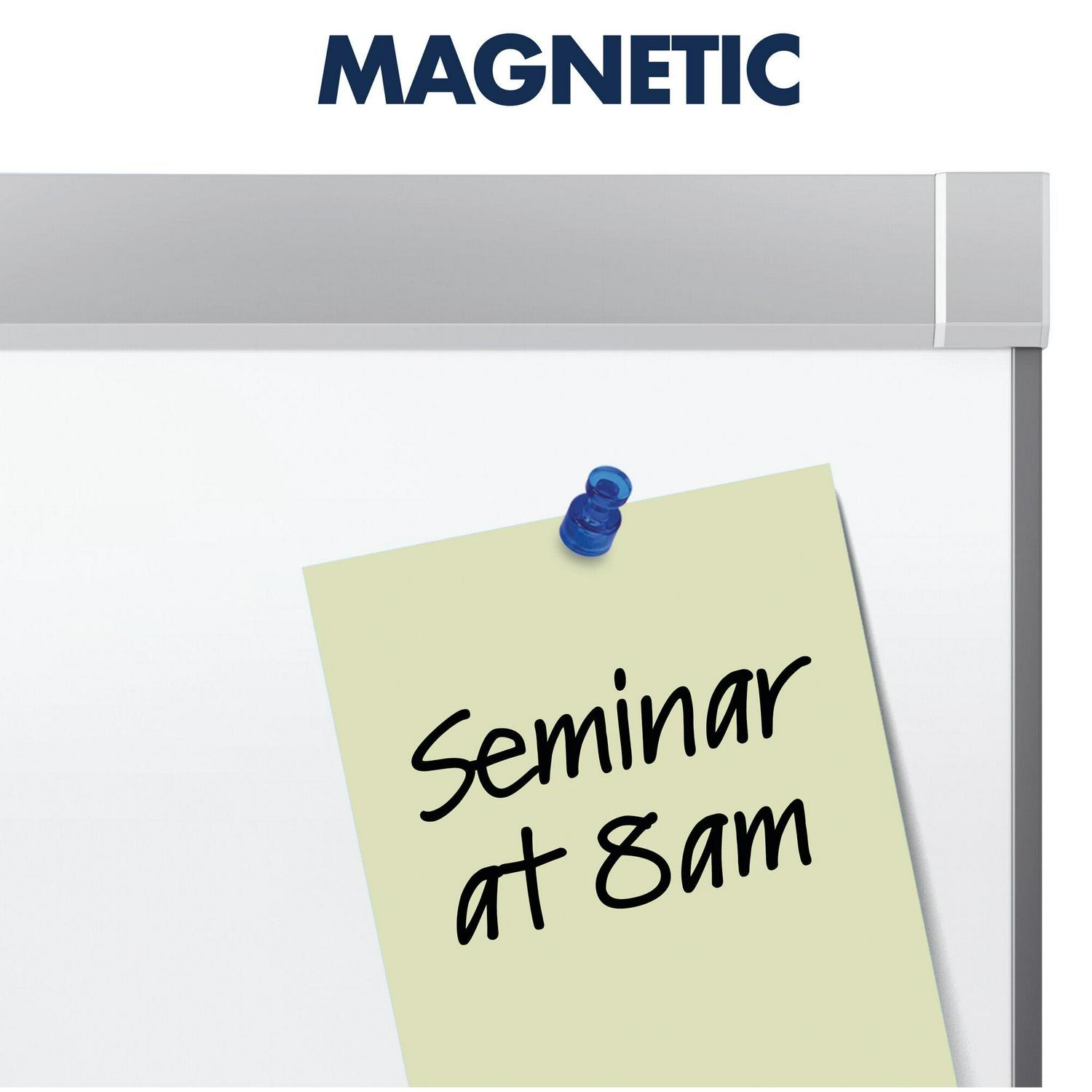 – Magnetic quality allows board to double as a display surface for printed documents and notes