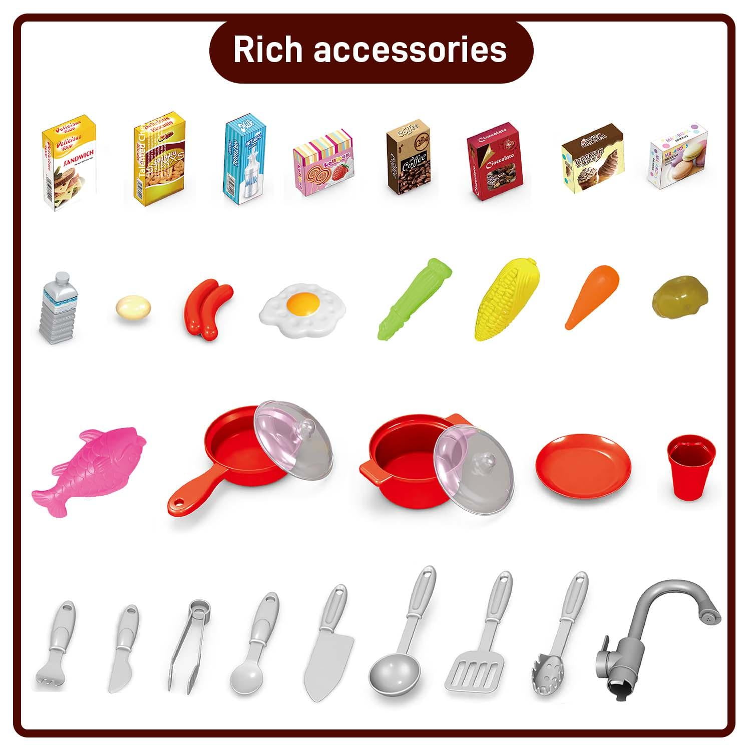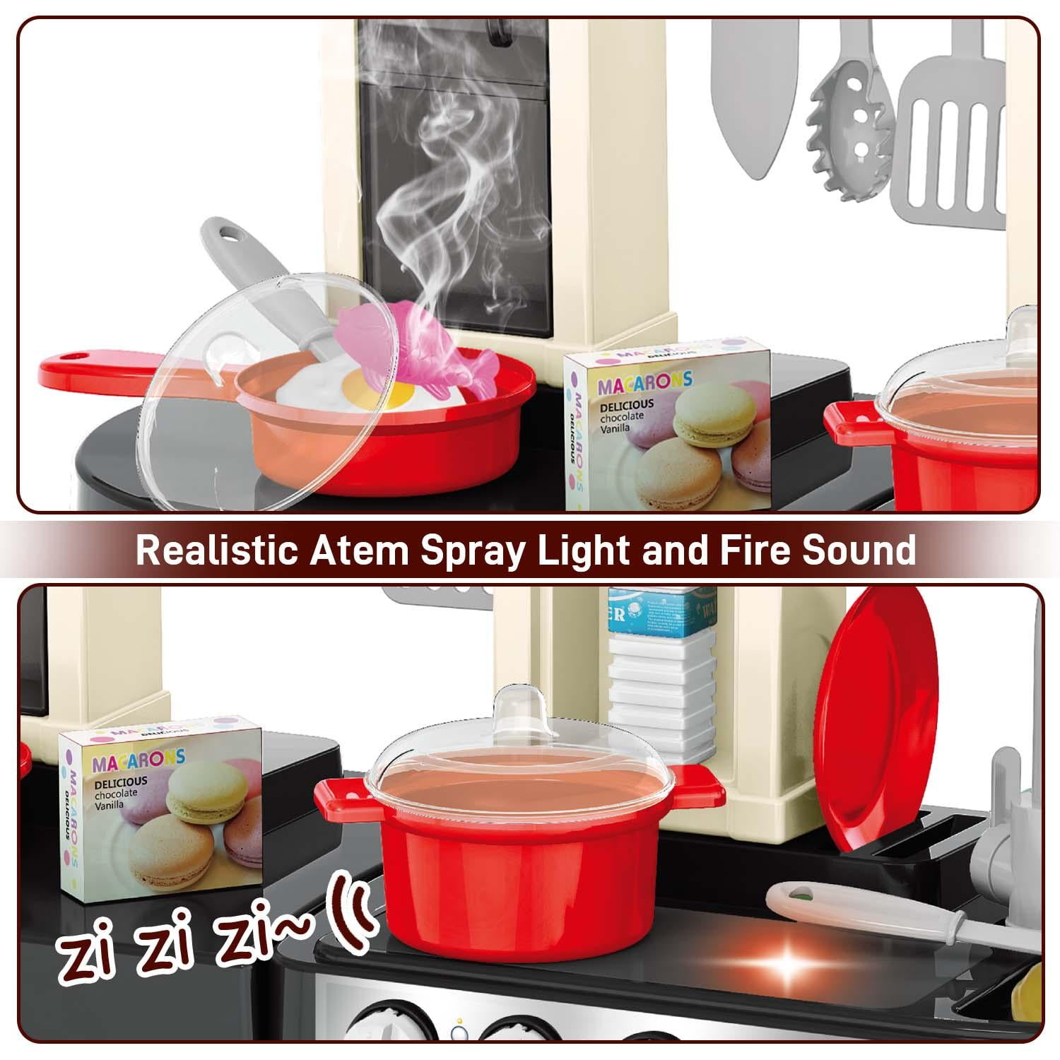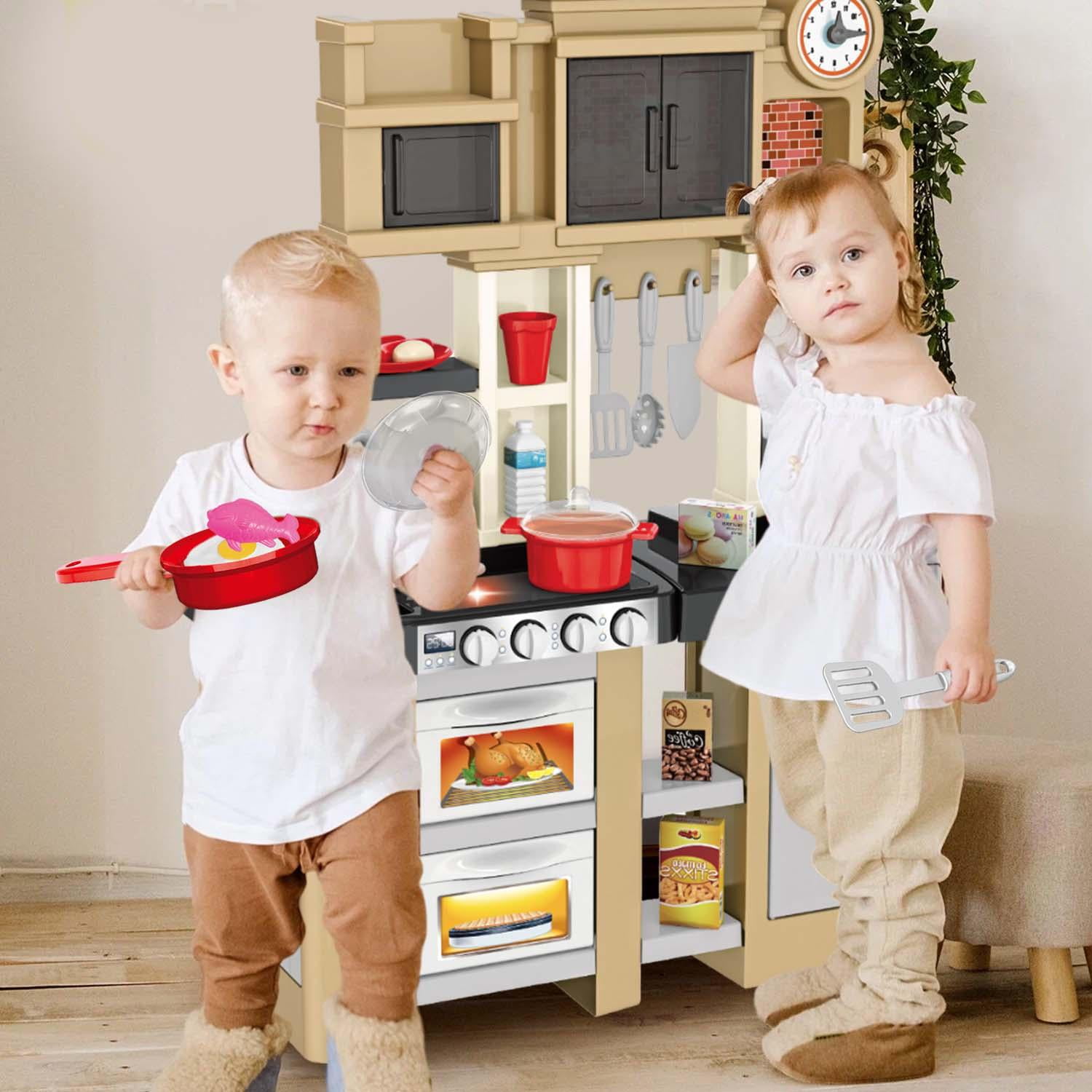 Pretend Kitchen Toys for Kids, Kitchen Set for Toddlers 1-8, Play Kitchen Accessories w/Real Water Sounds Light, for Boys, Girls