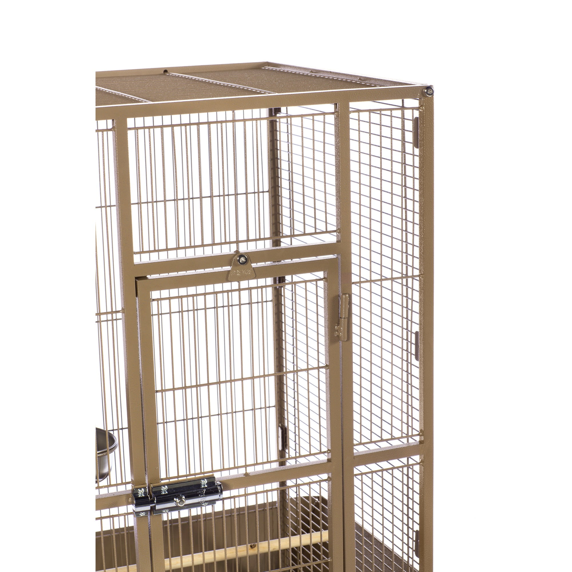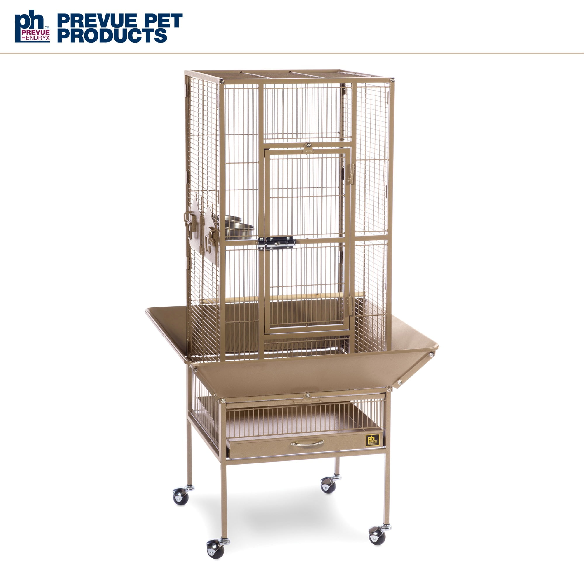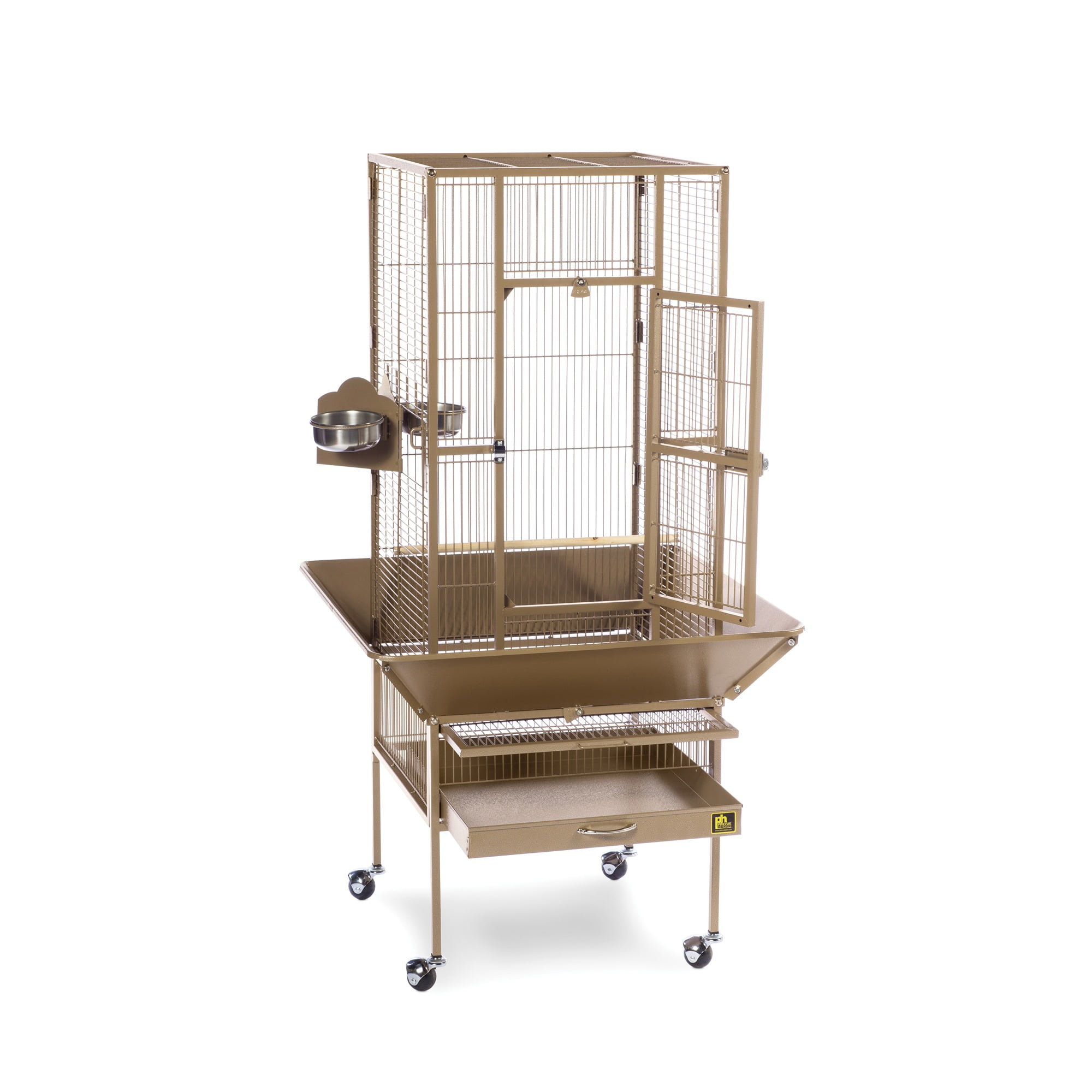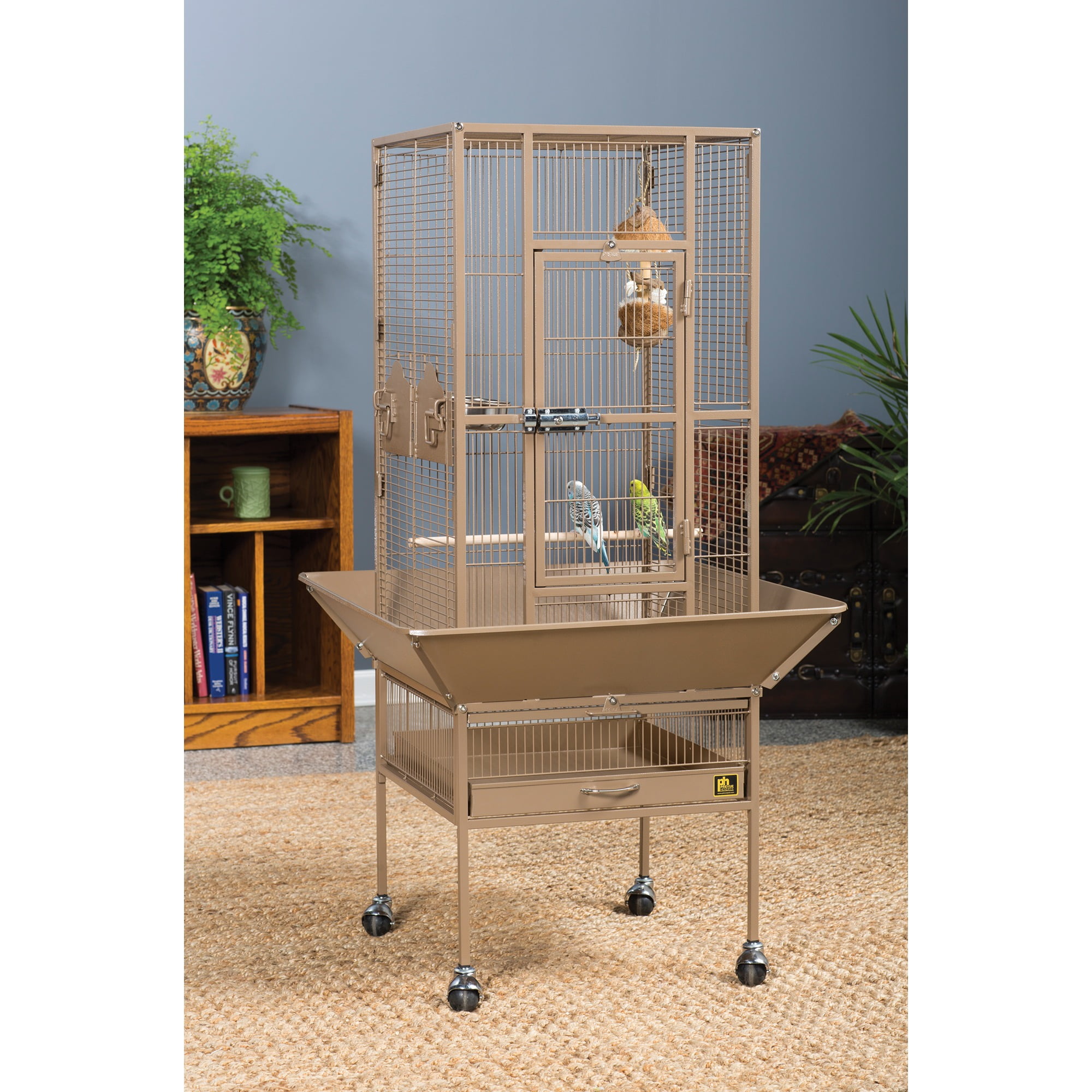 Our popular powder-coated steel construction cage re-engineered for small birds Large hinged front access door with dual locks Solid-panel cup doors & wide seed guard to control debris Pull-out grille and debris tray for easy cleaning Cage stand base with easy-rolling casters Ideal for parakeets, canaries and other small to medium birds Model NO : 3351COCO Park Plaza Bird Cage Coco