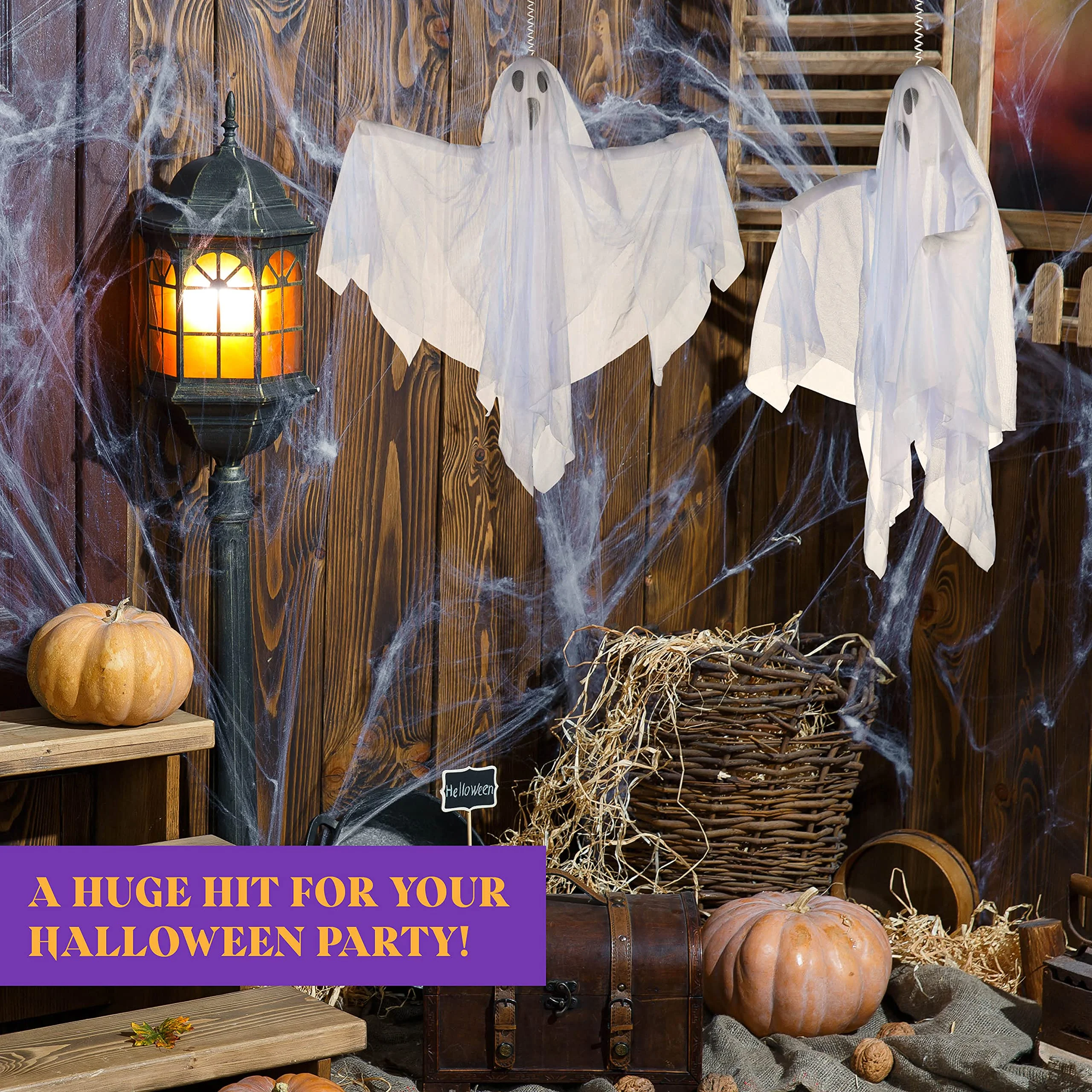 Prextex Halloween Fabric Ghost. 6 Pcs Halloween Hanging Spooky Ghost Props for Indoor/Outdoor Decorations