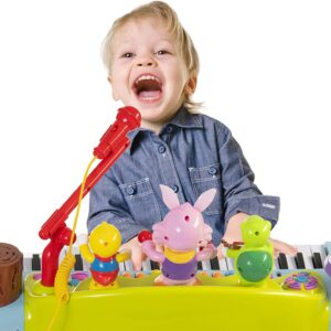 – Uniquely designed with a singing rabbit, drummer duck, and turtle violin player all dancing and clapping while your little one plays the piano