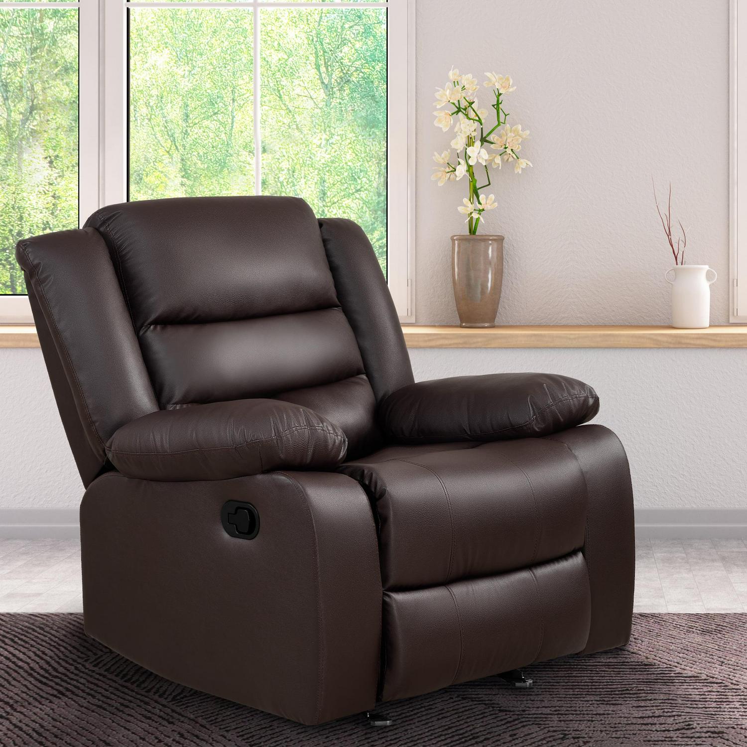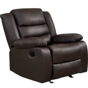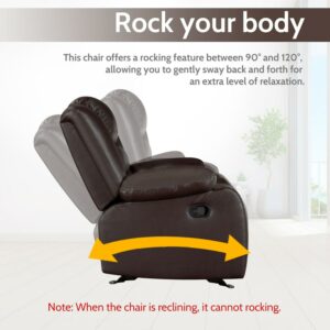 Prilinex Oversized Recliner Rocker Chair, Faux Leather Home Theater Seating, Brown