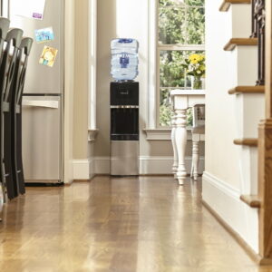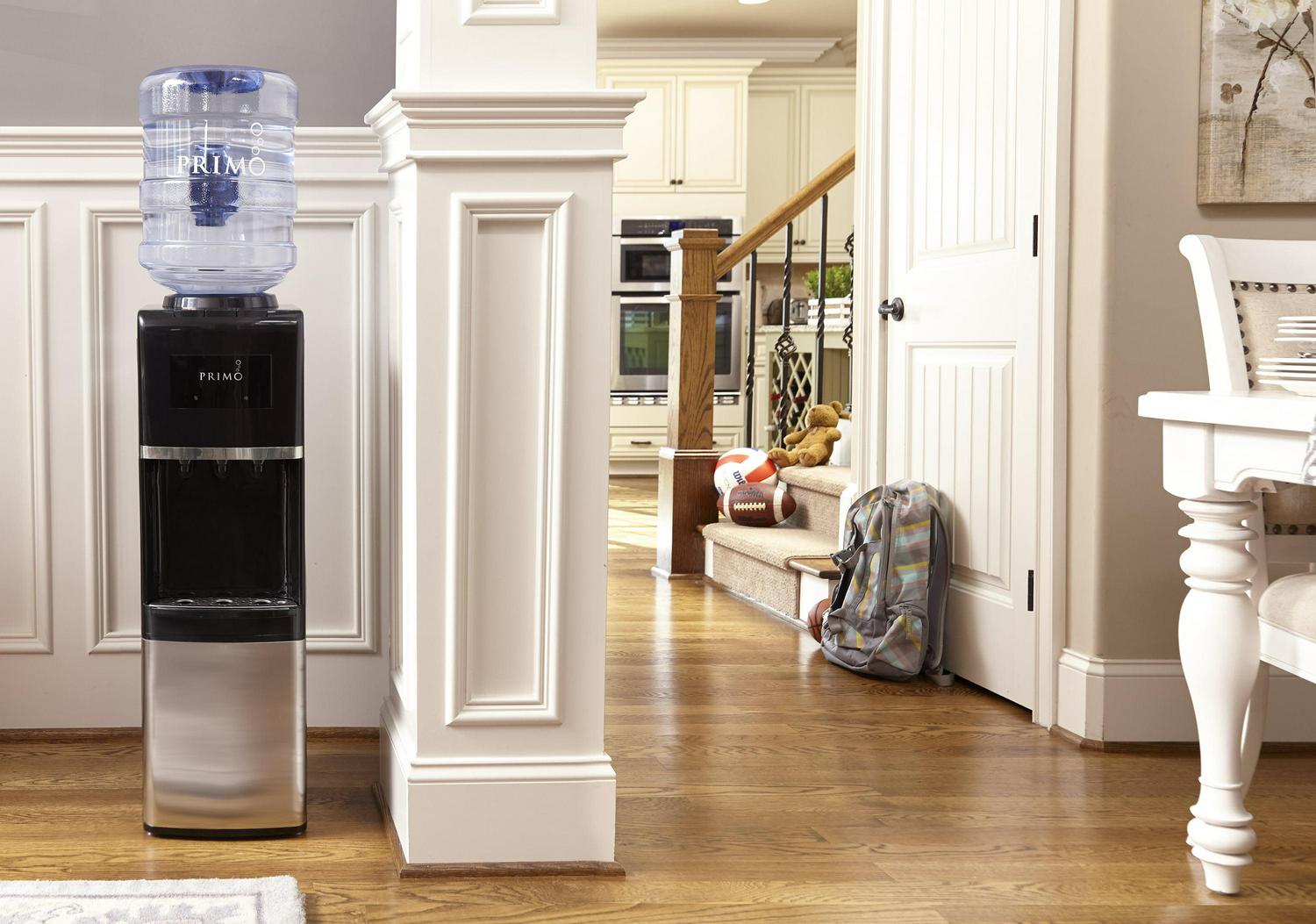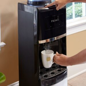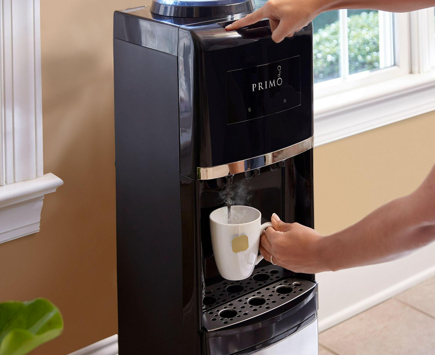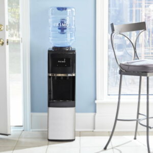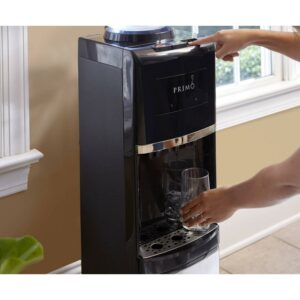 Stay hydrated in the home or office with the Primo Stainless Steel Top Loading Water Dispenser. Designed with a removable, dishwasher-safe drip tray, quiet heating and cooling and a spill-proof bottle, this dispenser delivers room-temperature, hot and ice-cold water with the ultimate convenience. To use, simply load any compatible 3, 4, 5 or 5.2 gallon water jug into the dispenser and enjoy room-temperature water in minutes; no plumbing or complicated installation required.