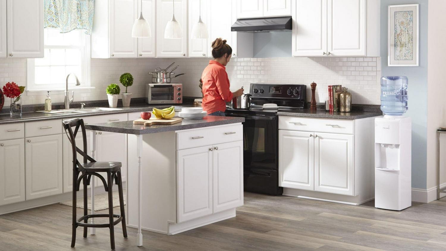 The Primo Top Loading Hot and Cold Water Dispenser provides easy access to hot and cold water with the touch of a button. A removable, dishwasher-safe drip tray, quiet heating and cooling and a spill-proof bottle add everyday practicality to this sleek model that s perfect for homes and offices. To use, simply load any compatible 3 or 5 gallon water jug into the dispenser and enjoy ice-cold and hot water in minutes; no plumbing or complicated installation required. The Primo Top Loading Hot and Cold Water Dispenser is ENERGY STAR-certified for cost-efficient performance.