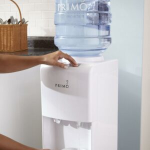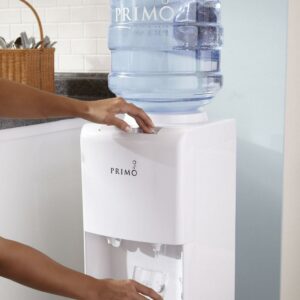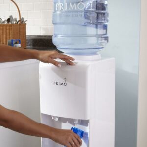 The Primo Top Loading Hot and Cold Water Dispenser provides easy access to hot and cold water with the touch of a button. A dishwasher-safe drip tray, quiet heating and cooling and a spill-proof bottle add everyday practicality to this sleek model that s perfect for homes and offices. To use, simply load any compatible 3 or 5 gallon water jug into the dispenser and enjoy ice-cold or hot water in minutes; no plumbing or complicated installation required. Visit Crowdfused’s convenient Primo refill and exchange stations for a quick, affordable and environmentally friendly drinking water solution. Our water is subjected to the highest standards of quality. Primo water is purified with a multi-step reverse osmosis process to ensure pure, refreshing drinking water, free of contaminants. Primo bottles are also thoroughly inspected and sanitized after each recycling. Stay hydrated and sip happy, because now you can enjoy Water Your Way.