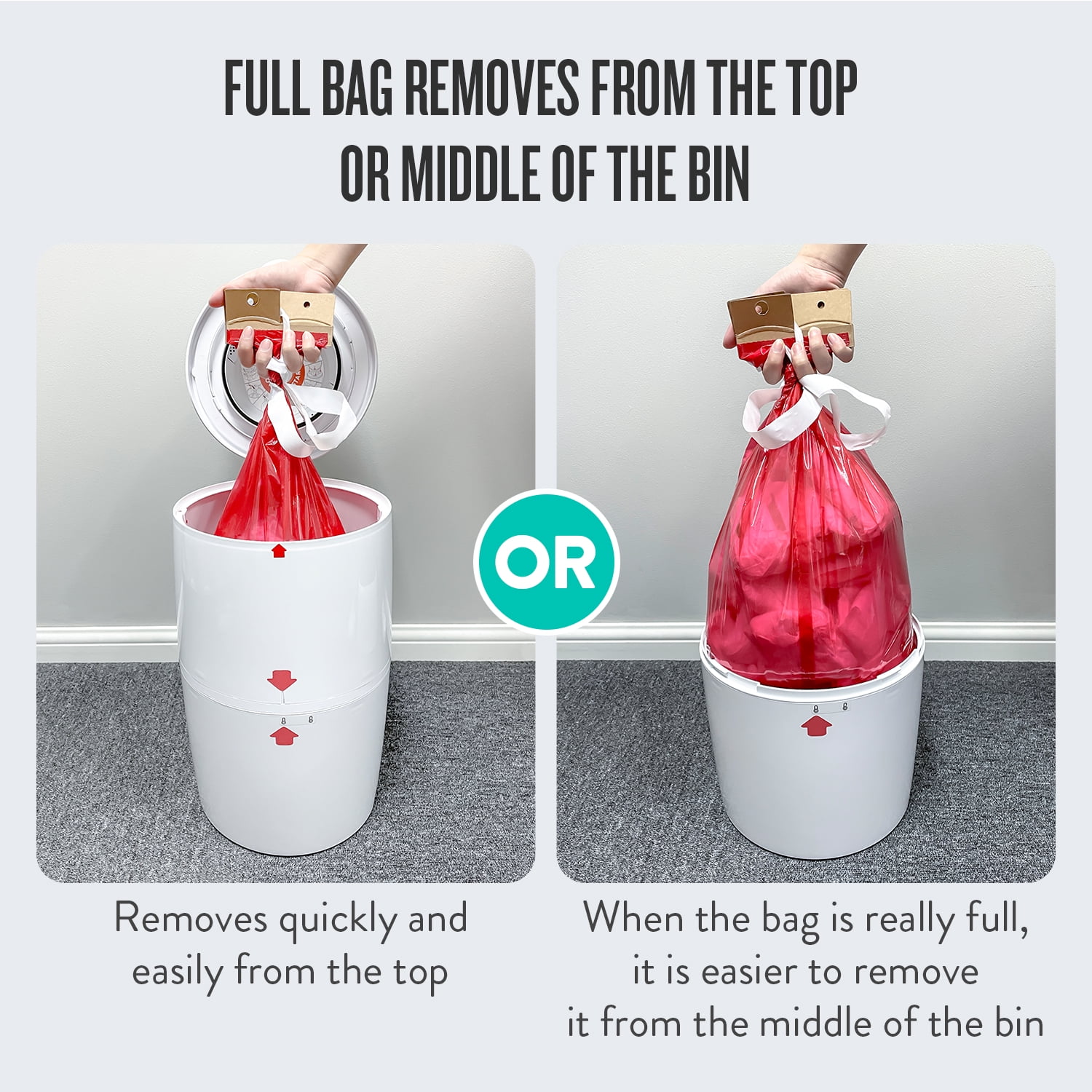 WHAT’S INCLUDED: Prince Lionheart’s baby diaper pail includes 1x Diaper Twist’R Pail Baby Diaper Trash Can, 2x Diaper Pail Refill Bags, & 2x Charcoal Sachets, providing parents with everything they need to ensure they have an easy to use trash can for bathroom or nursery use that eliminates odors from dirty diapers. This award-winning pail’s odorless properties make it unique when compared to other baby diaper trash cans that allow the stench of used diapers to linger in the bathroom or nursery. PATENTED TWIST TECHNOLOGY: Outsmarts odors with our patented Twist Technology and specially-designed odor-trapping bags to eliminate any smell from the diaper pail. The patented technology consists of: 1) Self-Sealing Bag that isolates dirty diapers 2) Activated Charcoal that absorbs odors within the baby diaper pail 3) 7-Layer Bag traps odor molecules 4) Patented Twist Technology that seals in odors, preventing them from escaping the bathroom or nursery trash can. EASY TO USE: This baby diaper pail has easy to use technology that prevents odors from escaping. Simply lift the lid, drop the diaper on the twisted top, close the lid and turn the handle. The patented diaper bag opens quickly to swallow the diaper, and shuts quickly to seal in odor, preventing the smell from ever escaping. The Twist Technology ensures no one will ever smell the diapers, and children or pets will not be able to access the diapers within the pail. HIGH CAPACITY BAGS: Every bag fits up to 35 newborn dirty diapers from any disposable brand. Prince Lionheart’s high-capacity baby diaper pail refill bags offer prolonged use due to their durability and spaciousness. The increased capacity and sealed opening in the Prince Lionheart diaper pail trap all odor molecules, ensuring your bathroom or nursery stays free from diaper stench. This odorless invention will soon be your favorite trash can in the house, and your nose will thank you! 7-LAYER REFILL BAGS: These extra strength, 7-layer refill bags trap odor molecules that are too big to escape through the layers, AND keep the odors contained with the patented twist that always remains at the top. With the 7-layer strength of these diaper pail refills, you will never worry about heavy bags breaking when you are disposing of them. This diaper trash can odor control is secured within the baby diaper pail, thanks to the twist technology, and the high capacity, 7-layer refill bags.