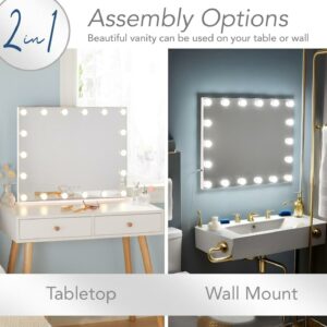 Prinz Lighted Hollywood Vanity Mirror LED Lights, 25 Makeup Mirror, Bedroom or Dressing Room, Wall Mount or Tabletop