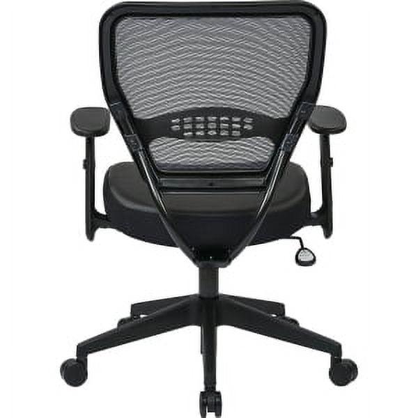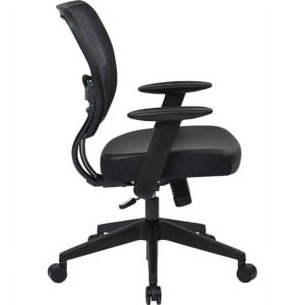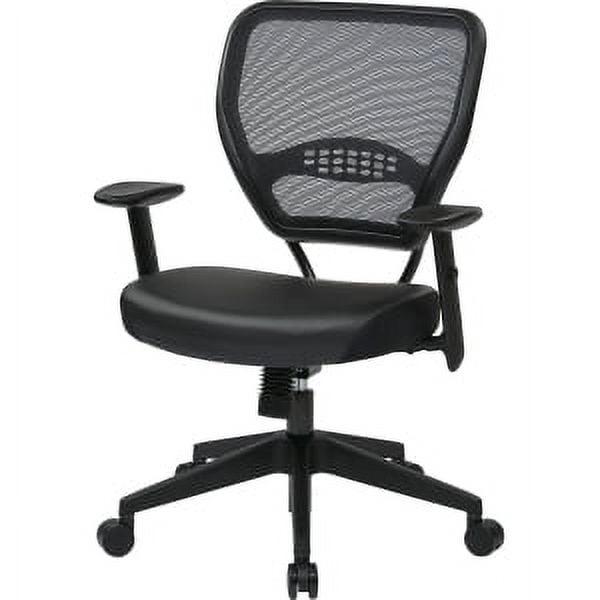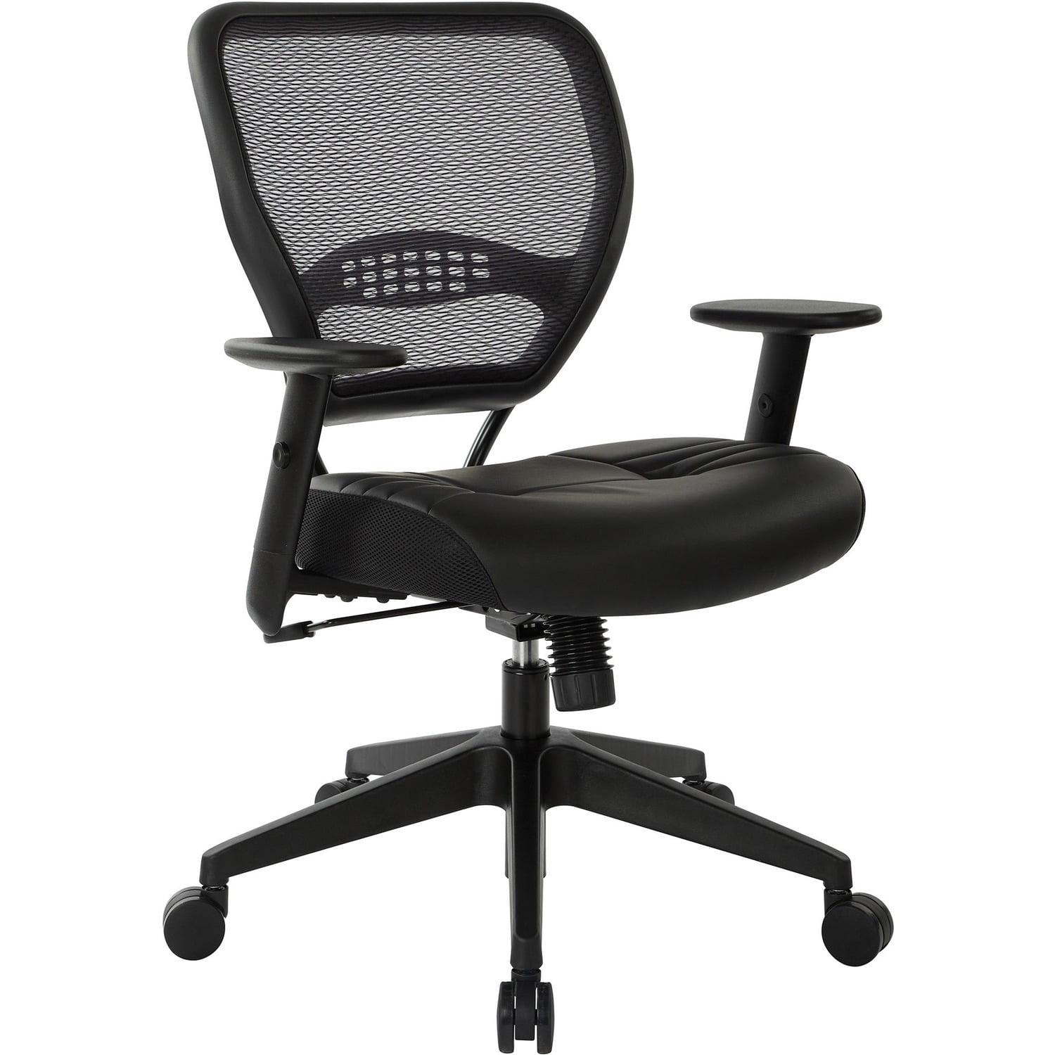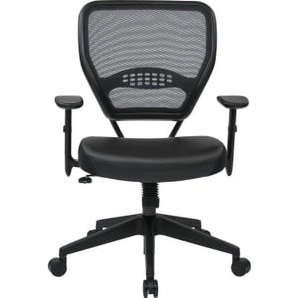 Breathable Dark Air Grid Back with Built-in Lumbar Support; Thick Padded Black Bonded Leather Seat; Pneumatic Seat Height Adjustment; 2-to-1 Synchro Tilt Control with Adjustable Tilt Tension; Height Adjustable Angled Arms with Soft PU Pads; Heavy Duty Angled Nylon Base with Oversized Dual Wheel Carpet Casters; This product has achieved GREENGUARD Certification
