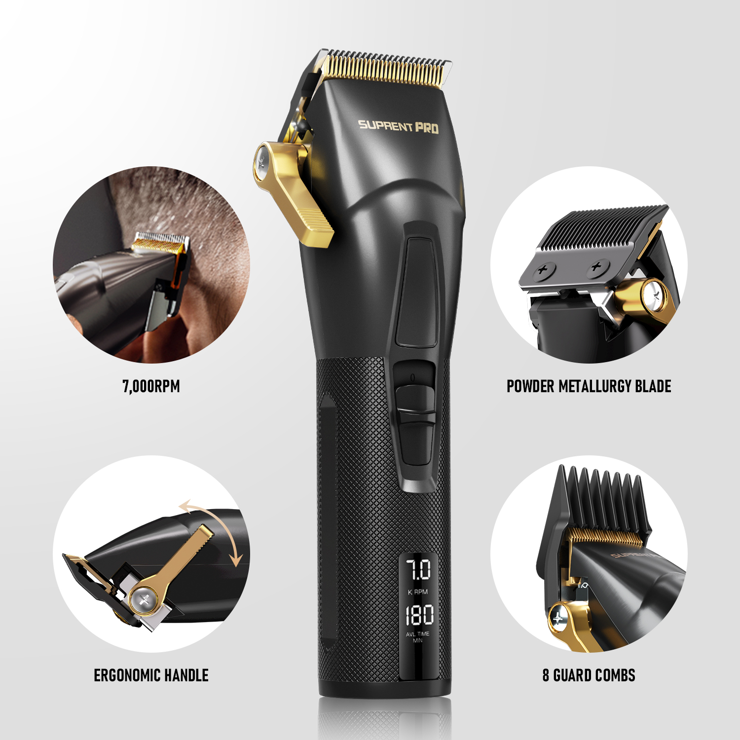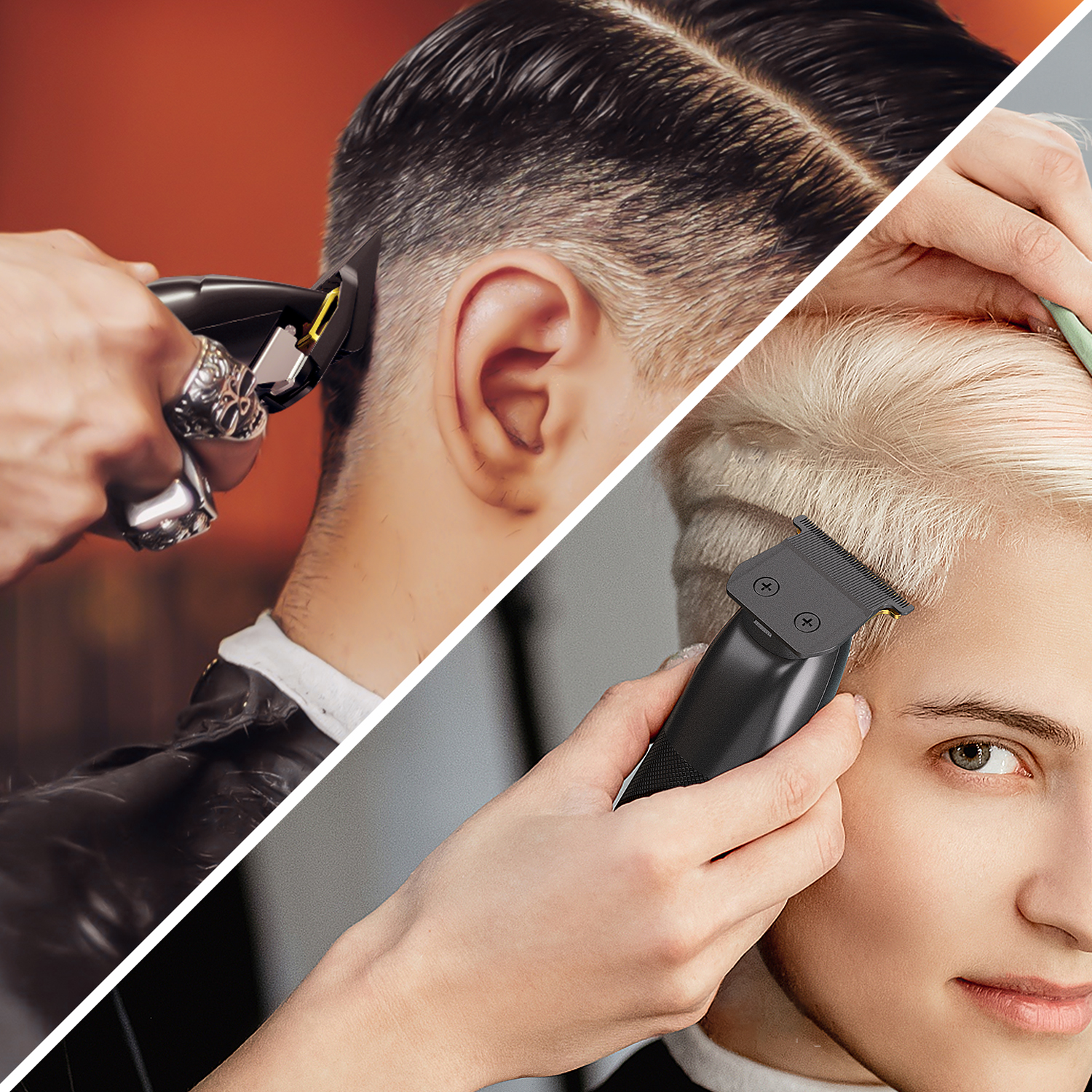 LUXURY PROFESSIONAL HAIR CLIPPERS FOR MEN–Zeus Strong shear force, professional removal. The cordless hair clippers include a clipper and trimmer to provide barbers with precise trimming (0.2mm-20mm). The adjustable lever length is 0.8mm/1.2mm/1.6mm/2.0mm making it easy to cut all types and lengths of hair and the trimmer is suitable for art carving/tapering/blending/fading, etc. With 8 guards for hair cutting and 4 guards for detail trimming, you can more easily control the trim length. It catches more hair and saves you more than 60% time. Ideal for all barbers and stylists. Package Content: 1 * Professional Hair Clipper 1 * Detail Trimmer 1 * Oil Bottle 1 * Cleaning Brush 1 * Cape 1 * Haircut Comb 1 * USB Charge 9 * Premium Guards (1.5/3/4.5/6/9/12/16/18mm) & (1.5/3/4.5/6mm)