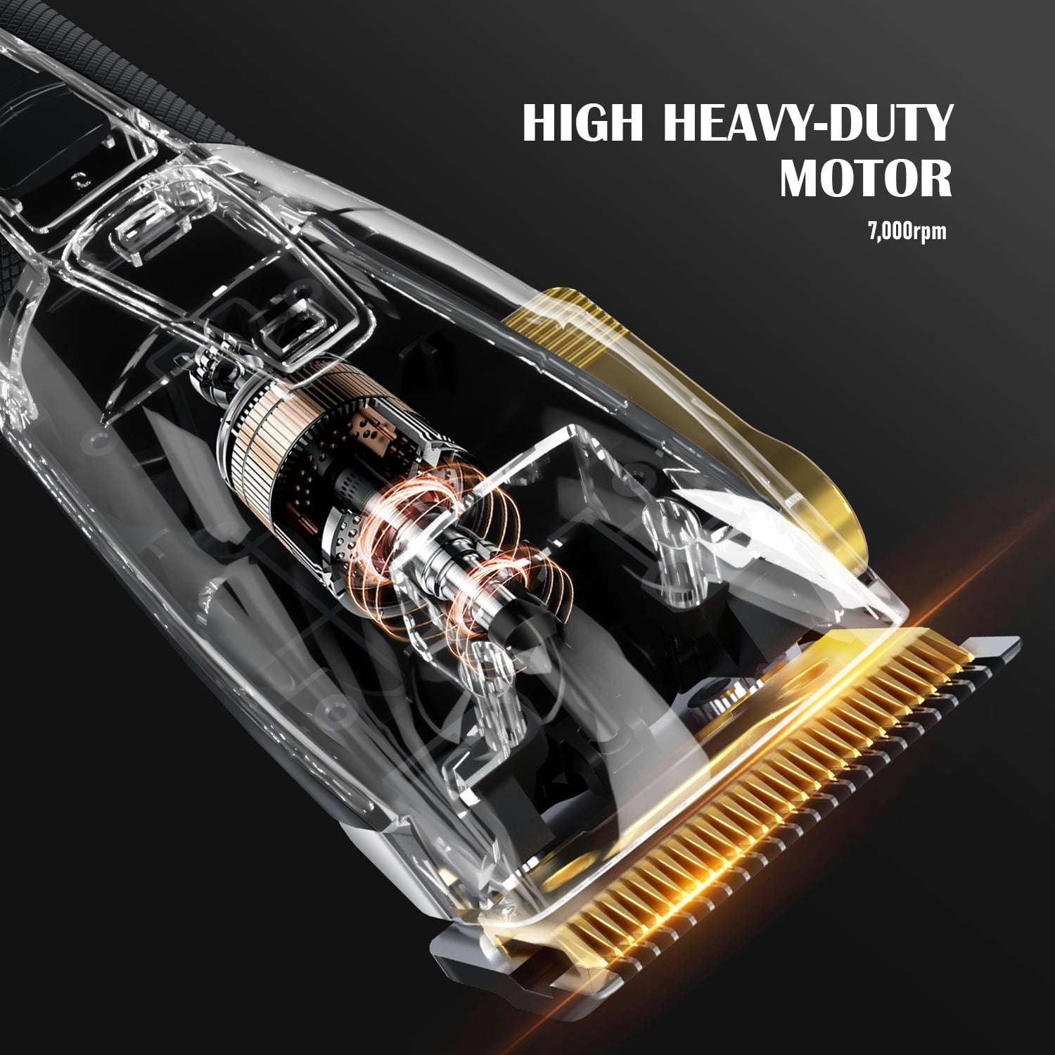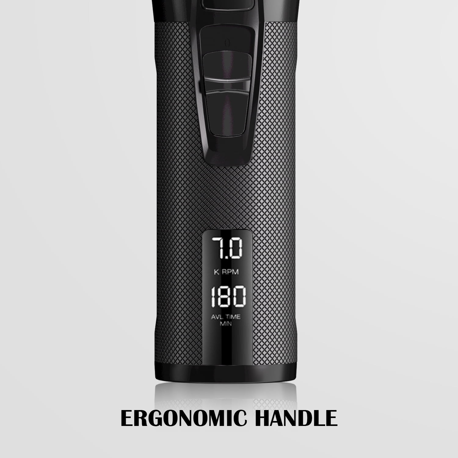 BLADES for BARBER’S NEED: Our professional hair clippers are equipped with market-leading powdered ink metallurgical high corrosion resistant fixed blades for ultra sharp and wear resistance. Naturally lubricated and extremely rust-free ceramic titanium-coated dynamic blades are slowly heated for long-lasting power. ADJUSTABLE & STRONGER MOTOR: TURBO mode is available at 2 speeds to meet the power requirements in different scenarios. The advanced high torque engine with 5V-Boost tech maintains stable power during cutting, delivers maximum power when working with coarse dense hair. Equipped with a charging protection device to ensure charging safety. LONG LIFE LI-ION BATTERY & LED SMART DISPLAY: 2500mAh high-capacity battery can easily work all day per charge. It supports USB-C cord/cordless use, so you don’t need to worry about power outages at work. The ultra high definition LED display clearly shows speed and working time, ensuring you do a full day’s work. COMFORT & CONTROL: To enhance the user experience, the knurled barbell grip is waterproof and oil resistant, so you won’t slide or accidentally drop it while using it. The grip is slotted on both sides to actively adapt to the palm structure for optimum control and comfort, making it easier to change and adjust. WARM TIPS: 1. When charging, please use a power adapter with an input voltage not higher than 5V 1A (not included) to ensure safety and efficiency. 2. It is recommended to drip oil on the blade every 3-5 times of use to keep the blade sharp, and it can also alleviate possible problems such as heat and noise to a certain extent.