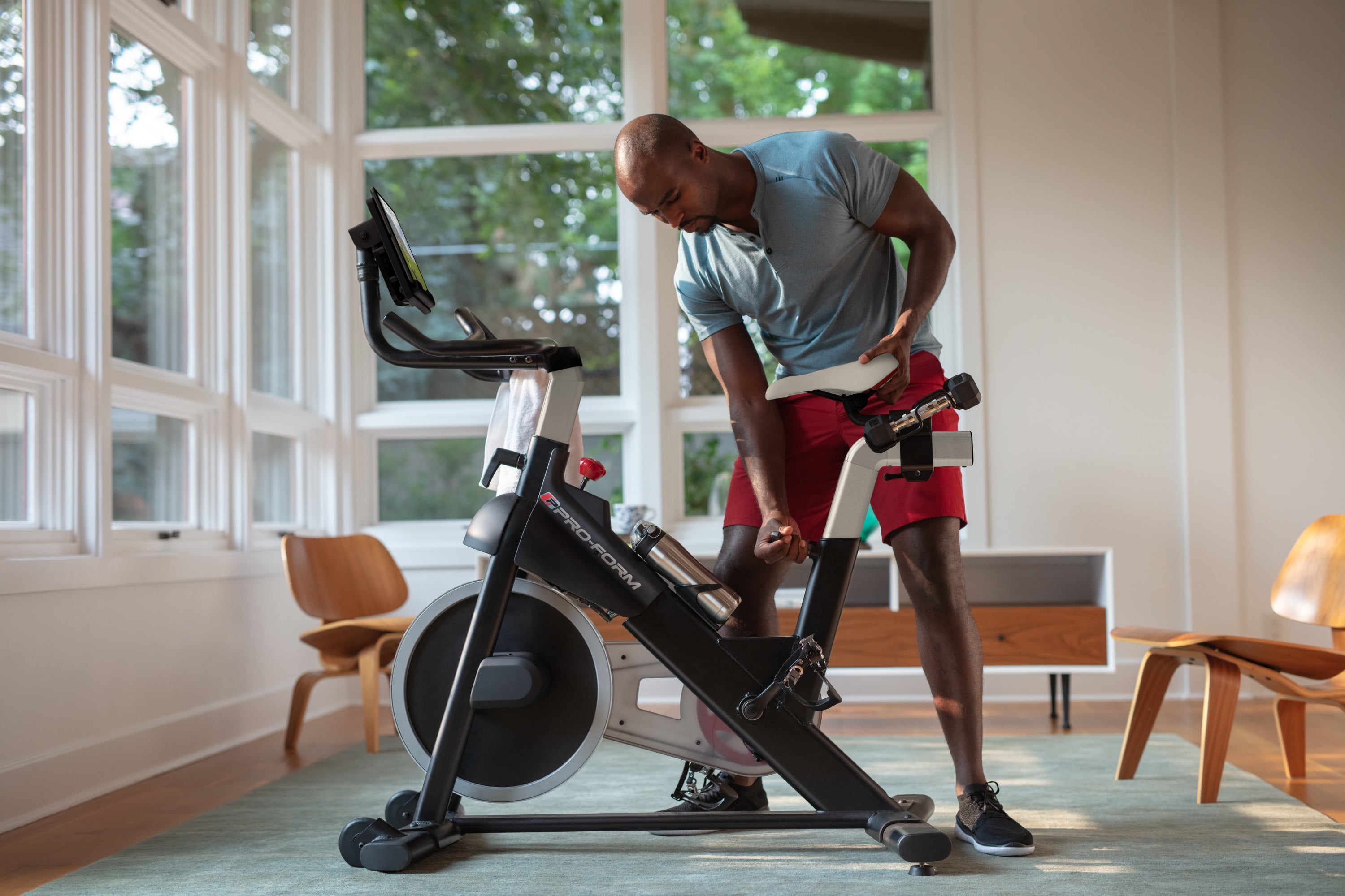 Start Your Free, 30-Day iFIT Membership* Live & On-Demand Workouts: Use the iFIT app to connect your mobile device to your equipment. Stream Live Workouts and events or choose from thousands of on-demand workouts Studio Classes: Follow iFIT Trainers through high-energy classes as they auto-adjust your speed, incline, or resistance Global Workouts: From the towering peaks of Mount Everest basecamp to the expansive African plains, you can travel the world from the comfort of your home Top Trainers: Choose from more than 100 hand-picked trainers, ranging from elite athletes, mental health professionals, and Olympic champions who will auto-adjust your equipment as you exercise Activate Your Membership: Follow the prompts given with your equipment to activate your membership. Existing members will receive a 30-day credit to their account Credit/Debit Card Required: iFIT experience shown. WiFi required. Credit card required for activation. Individual membership auto-renews for $15/mo., plus tax, unless canceled in advance Integrated Device Shelf A secure device shelf allows you to lock in your phone or tablet and access your iFIT account or favorite media while you train Large LCD Window Display Easily track your mileage, speed, calorie burn, heart rate, time elapsed, and other workout stats on this convenient display (2) 3 Lb. Dumbbells Included Work your entire body with this included dumbbell set When training with iFIT, some trainers will have you use these dumbbells for an added boost of muscle tone 16 Digital Resistance Levels Take control of your workout with a wide range of resistance levels Through a Bluetooth connection, iFIT can automatically adjust your resistance for a fully immersive, hands-off experience Inertia-Enhanced Flywheel A faster gear ratio and effective weight placement deliver a more natural pedal stroke SMR Silent Magnetic Resistance This innovative technology delivers a smooth, quiet ride with every use Pedals with Toe Clips & Straps Designed to keep your feet in place, these pedals are built with adjustable toe clips and straps to increase stability Interchangeable Racing Saddle Enjoy horizontal and vertical adjustment to find the perfect fit for a comfortable ride 250 lb. Weight Capacity 10-Year Frame Warranty 1-Year Parts & Labor Warranty See for more warranty information Footprint 51″ H x 21.9″ W x 52.5″ L Model #: PFEX63919
