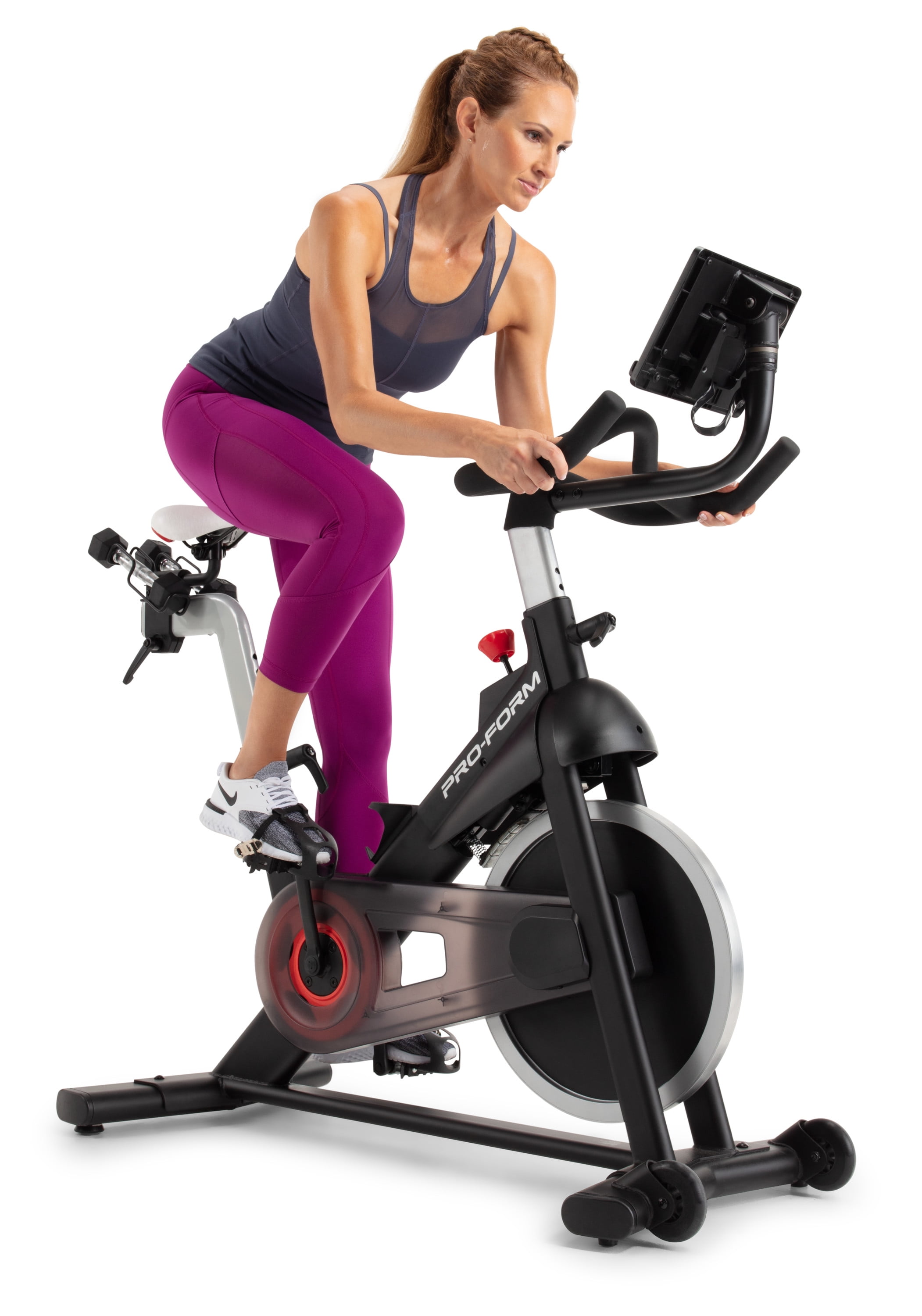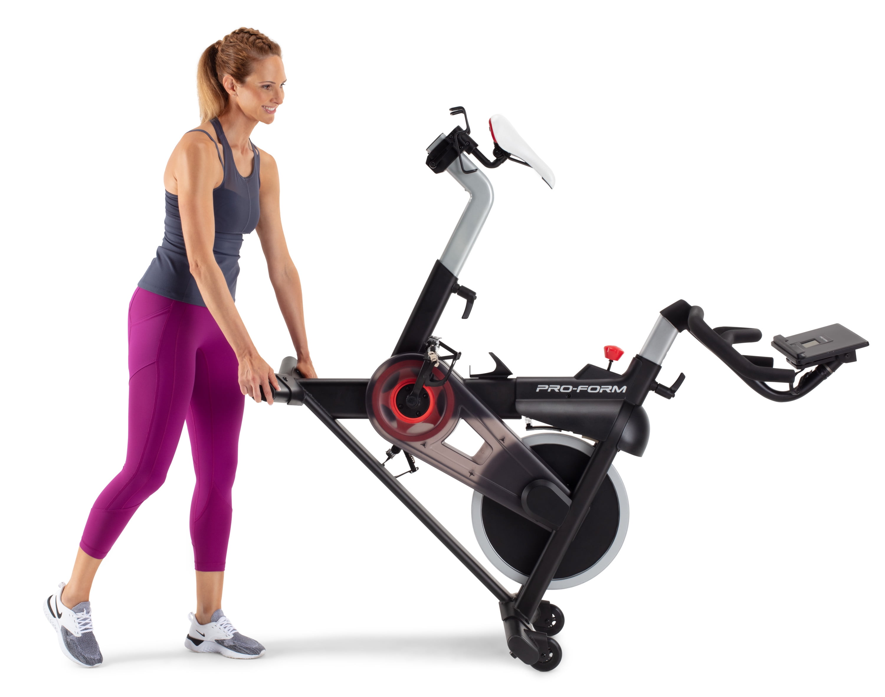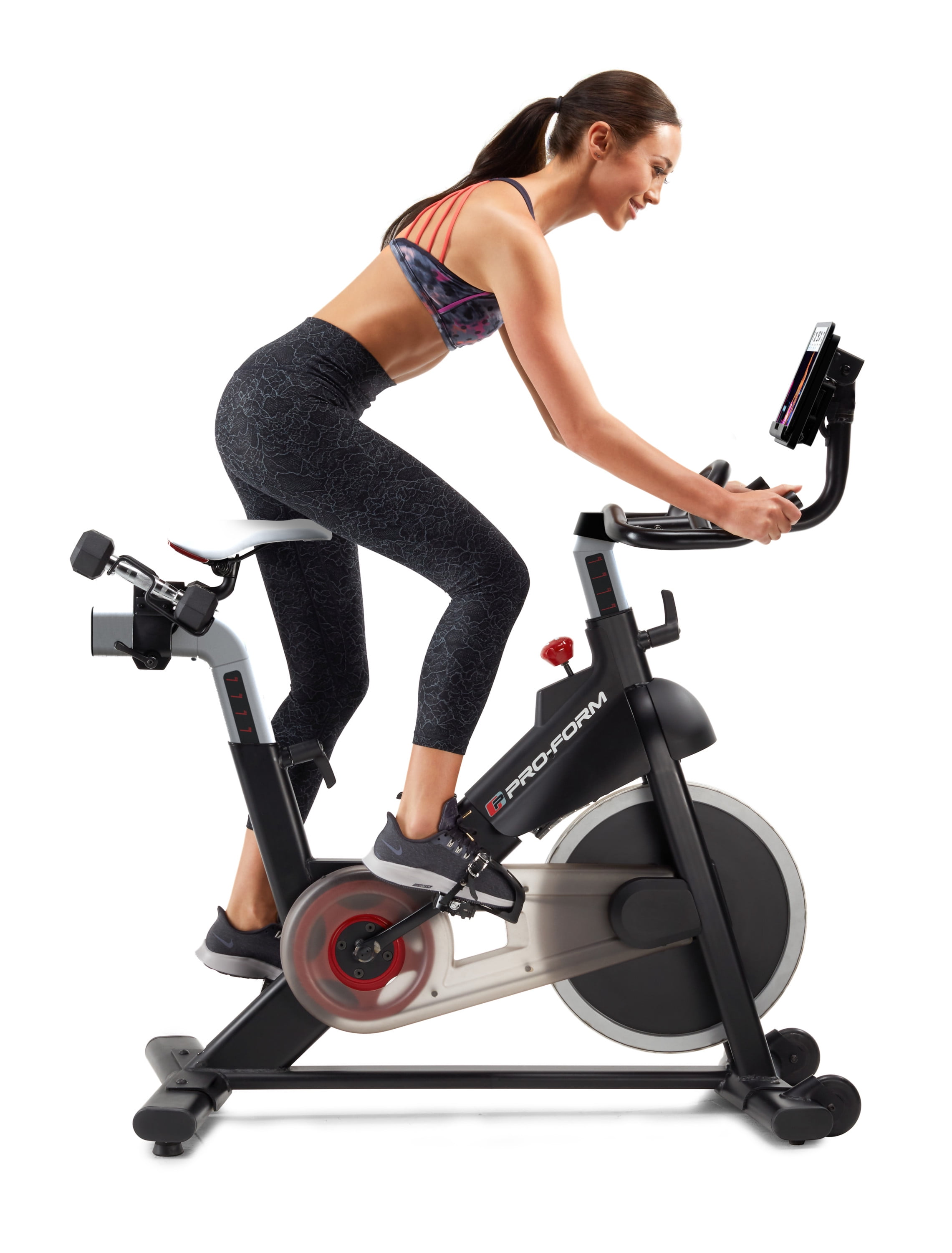 Get a complete fitness experience with interactive personal trainers in your living room. The ProForm Carbon CX home Exercise Bike comes with a 30-day iFIT membership, bringing the power of personalized training into the comfort of your living room. Embark on a virtual trip around the world, cycling from the breathtaking red rock deserts of Southern Utah to colorful Chilean streets. Transform your living room into a boutique studio class with on-demand video workouts led by charismatic coaches that automatically adjust your bike’s resistance to meet your workout’s requirements or mimic real-world terrain. An LCD window display with an incorporated device shelf provides a secure platform for your tablet or smartphone, and a SMART Bluetooth connection allows your iFIT Trainers to communicate with your exercise bike to automatically adjust your resistance. A set of 3 Lb. dumbbells gives you the ability to engage in full-body cross-training to develop comprehensive health, while 16 digital resistance levels give you total control of your workout while on your bike. Finally, an inertia-enhanced flywheel fortified with SMR Silent Magnetic Resistance delivers a smooth, quiet workout with every use – so you can train without waking the kids or bothering the neighbors.
