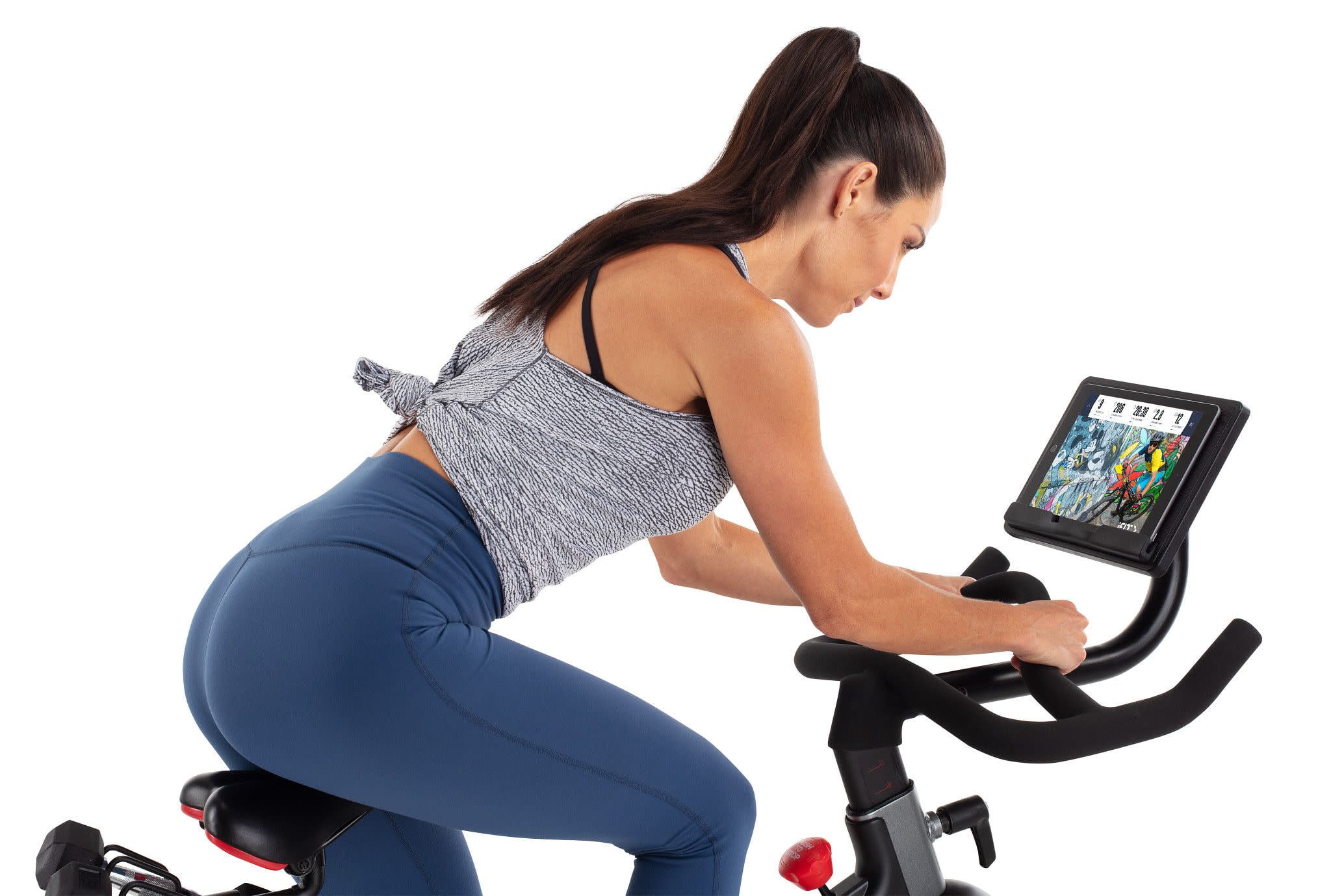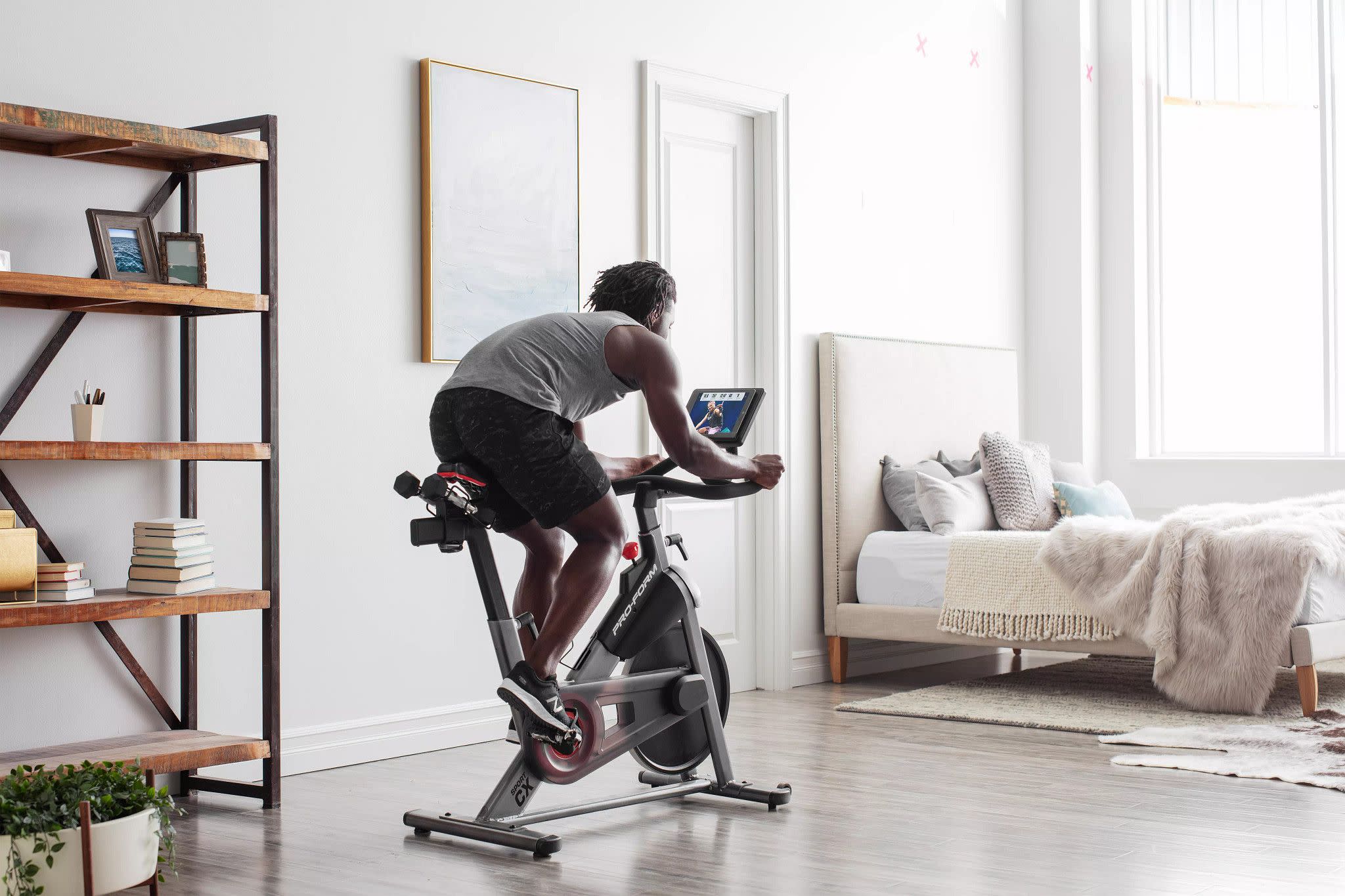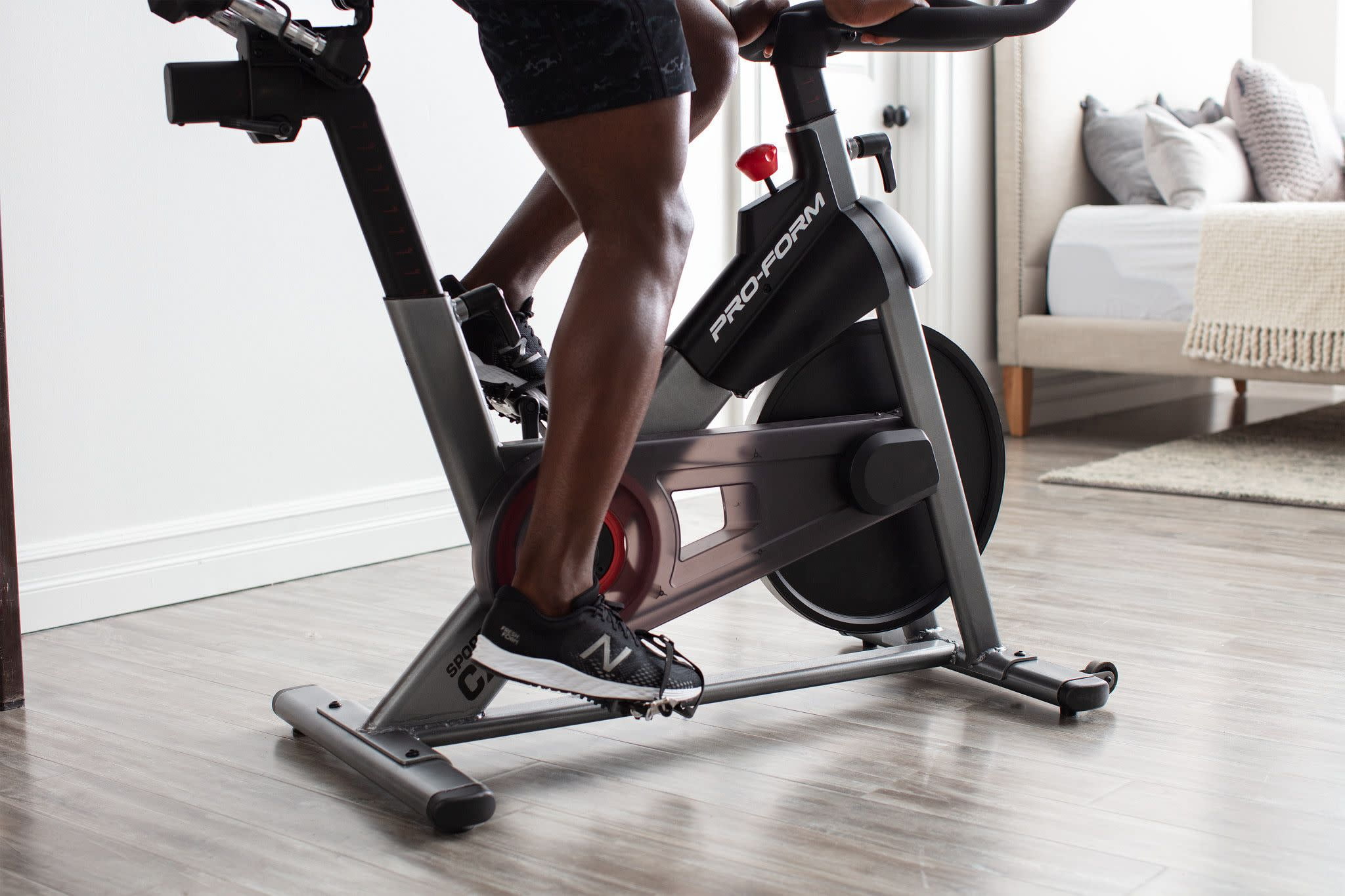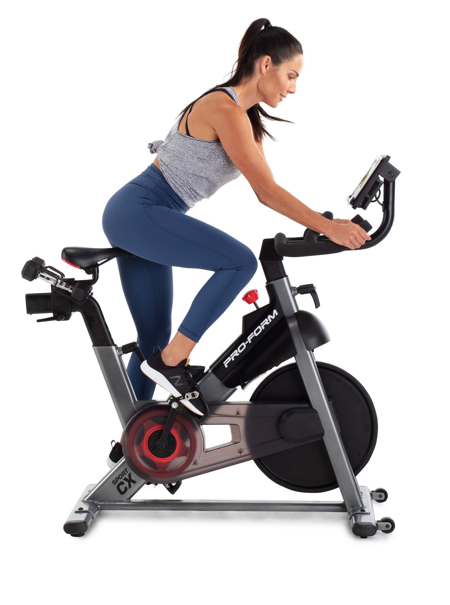 Cycle like a pro with the Sport CX Stationary Exercise Bike from ProForm. This durable indoor cycle comes ready to connect with iFIT (30-day membership included), unlocking a vast library of live and on-demand video workouts on your own tablet or smartphone. Transform your living room into a boutique studio class, blasting calories alongside virtual classmates as your iFIT Trainer motivates and coaches you to success. Embark on an exciting adventure around the world, following your iFIT Trainer as they lead you through breathtaking landscapes across all seven continents. With iFIT, your trainers will automatically adjust your bike’s resistance to meet suggested workout requirements and mimic real-world terrain, creating a totally immersive, hands-free experience. When not following along with iFIT Trainers, you can manually adjust your bike through 16 levels of digital resistance. The Sport CX Stationary Exercise Bike also includes a pair of 3-pound rubber hex dumbbells for targeted upper body exercise and intense cross-training sessions. This bike has been thoughtfully engineered to provide total customization with adjustable handlebars, seat, and pedal straps.