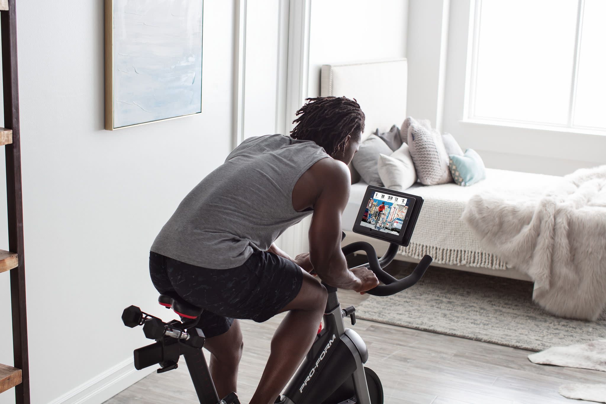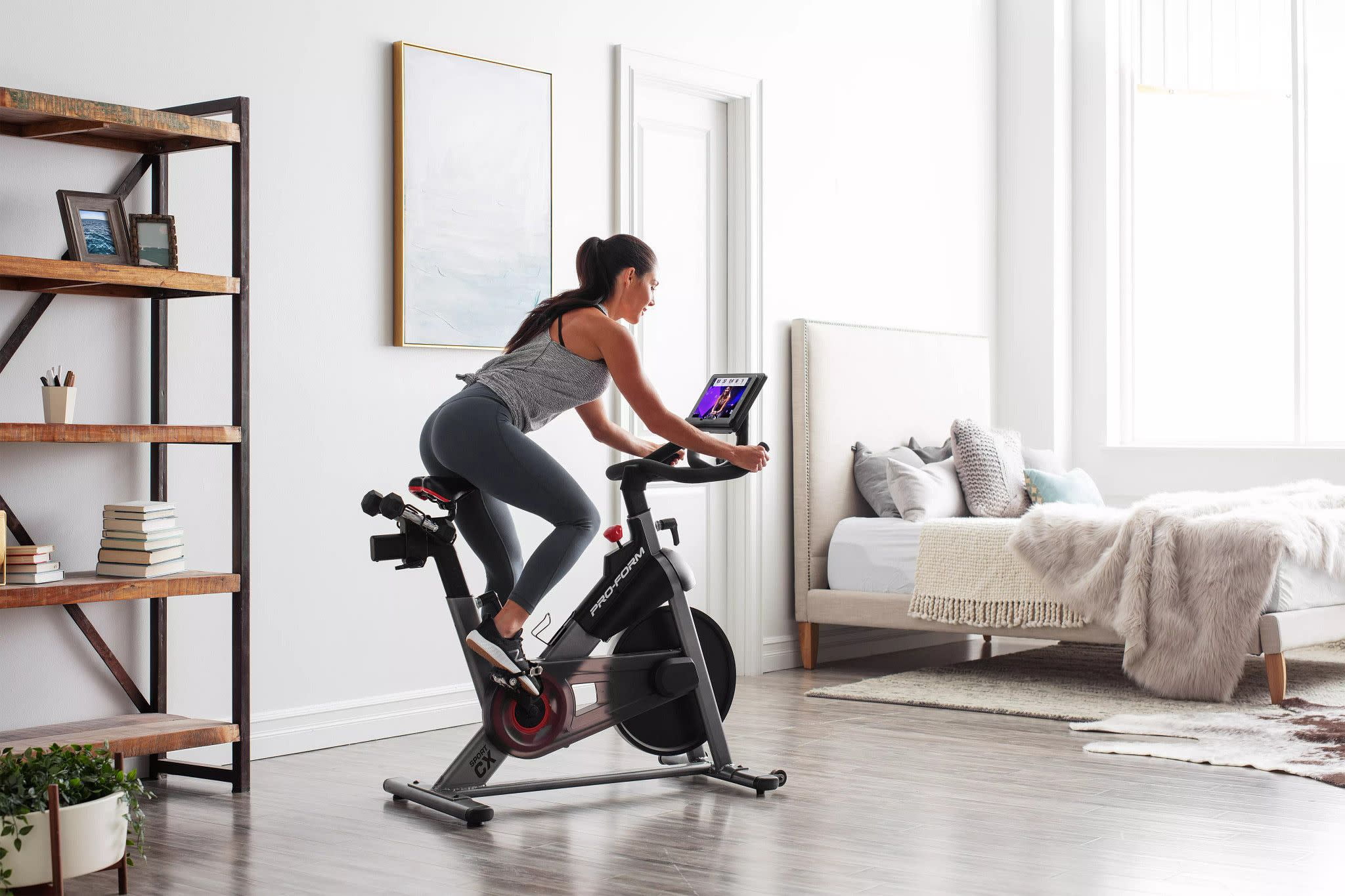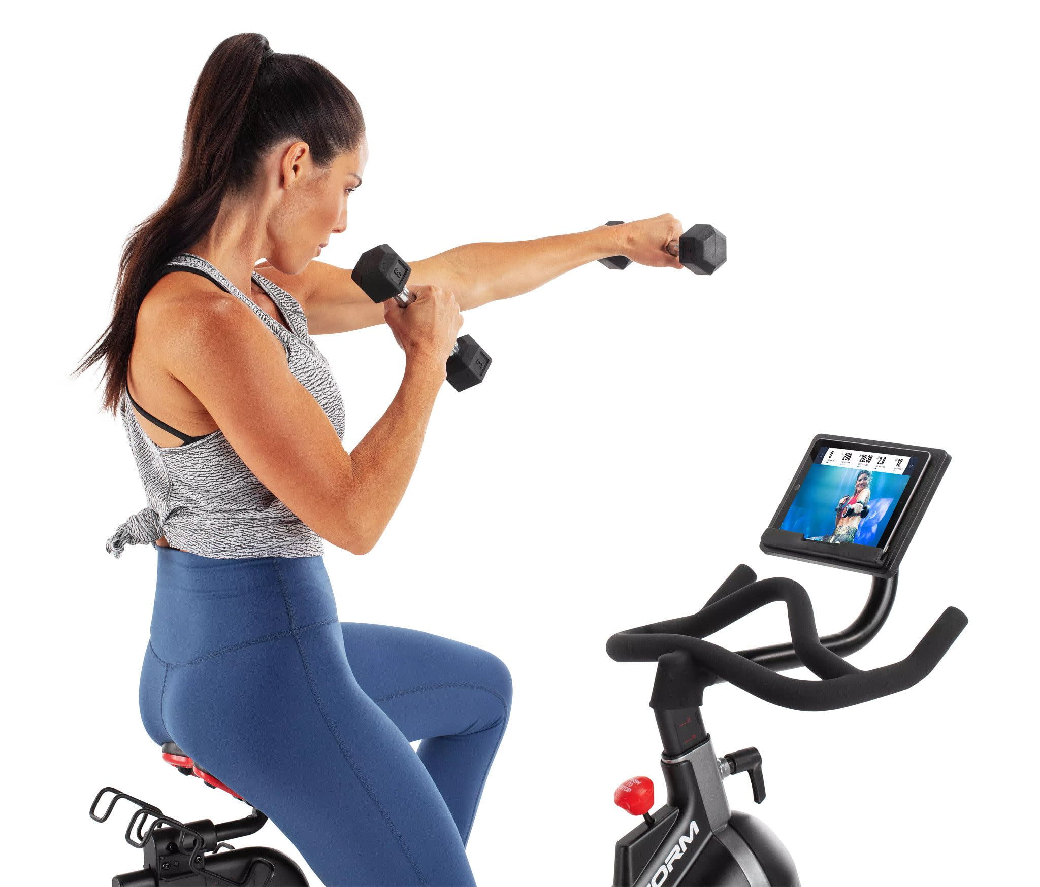 ProForm Sport CX Stationary Exercise Bike with 3 lb. Dumbbells, 30-Day iFIT Membership for Global Workouts & Studio Classes