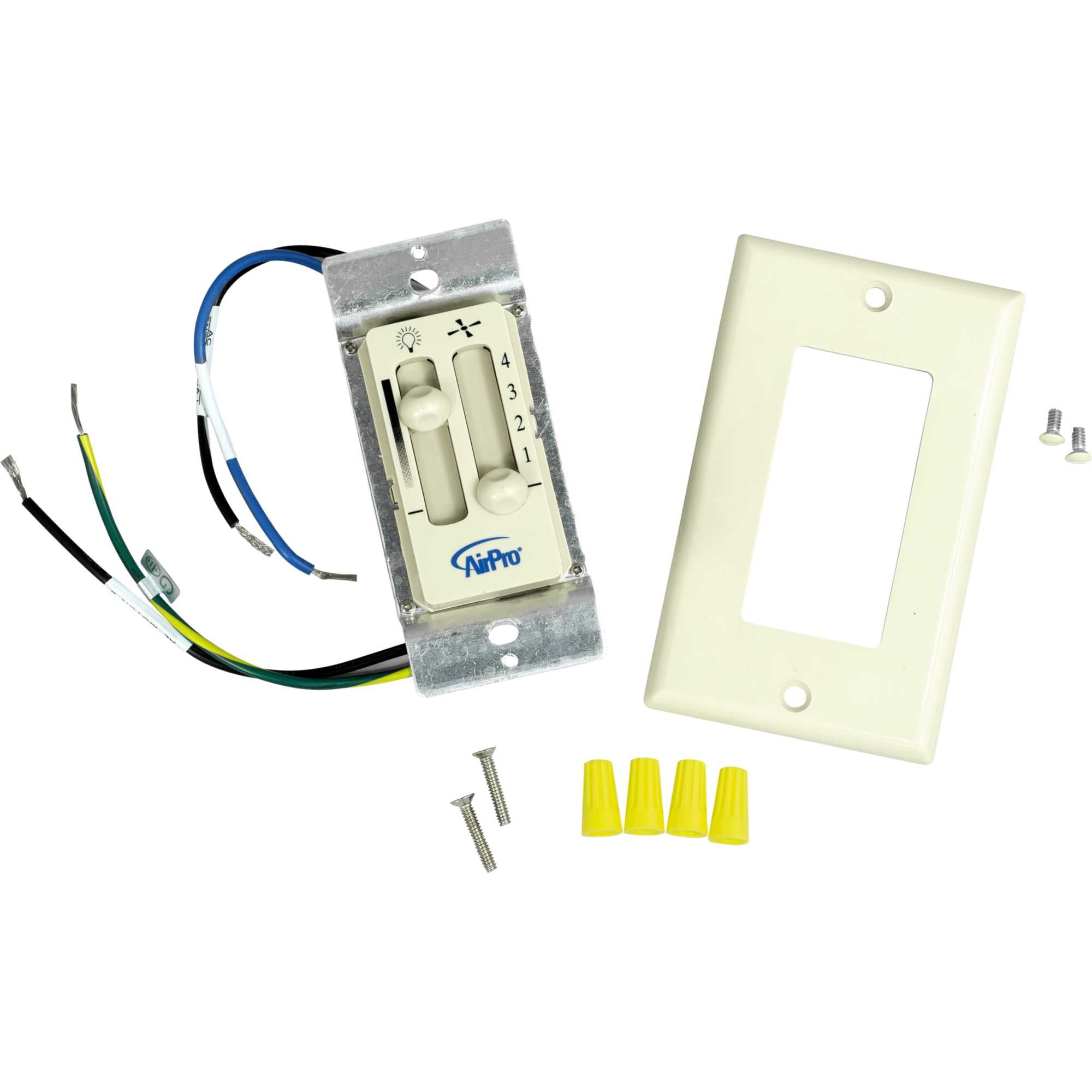 Progress Lighting-P2630-30-Collection: Airpro, Material: Metal, Finish Color: White, Wet Location: Dry Rated, Desc: Four-speed, Ceiling fan white wall control provides convenient operation for fans with pull-chain controls. Includes full-range lighting dimmer and switch plate cover. Requires two circuits – fits single gang wall box. Back Plate Height: 4.25. / Back Plate Width: 2.75. / Canopy Included: Yes. / Canopy Diameter: 2.75.. ,-AirPro Fan Control – 2.75 Inch Wide