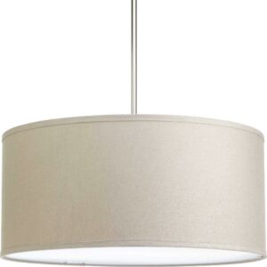 Progress Lighting-P8830-30-Collection: Markor, Material: Steel, Finish Color: White, Width: 22″, Height: 10″, Moisture Rating: Dry Rated, Desc: The Markor Series is a modular pendant system. The versatile series allow the choice of shades and stem kits. This 22″ shade with summer linen fabric is inspired by mid-century design. Acrylic bottom diffuser. This shade can be used with a variety of stem kits from 1 to 3 light in CFL, LED and incandescent light sources. Shade Included: Yes / Shade Dimensions: 21.56 . ,-Markor – Drum Shade in Transitional and Modern style – 22 Inches wide by 10 Inches high-White Finish-Summer Shade Color