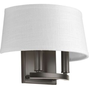 Collection: Cherish, Material: Resin, Finish Color: Antique Bronze, Width: 12″, Height: 9″, Depth: 6.5″, Height From Outlet Box: 4.75″, Backplate Width: 8.5″, Backplate Length: 5.56″, Lamping Type: Incandescent, Number Of Bulbs: 2, Wattage: 60 Watts, Moisture Rating: Damp Rated, Desc: Classic two-light elegant wall sconce modernized with a summer linen shade. Back Plate Height: 5.56 / Back Plate Width: 8.50 / Shade Included: Yes. ,-Cherish – Wall Sconces Light – 2 Light in Coastal style – 12 Inches wide by 9 Inches high-Antique Bronze Finish-Cherish, Wall Sconces, finish type:plated, Coastal, Farmhouse, New Traditional, Transitional, empire lighting, empire light, empire wall lighting, empire wall light, empire wall sconce, flush lighting, flush light, flush wall lighting, flush wall light, f-P7172-20