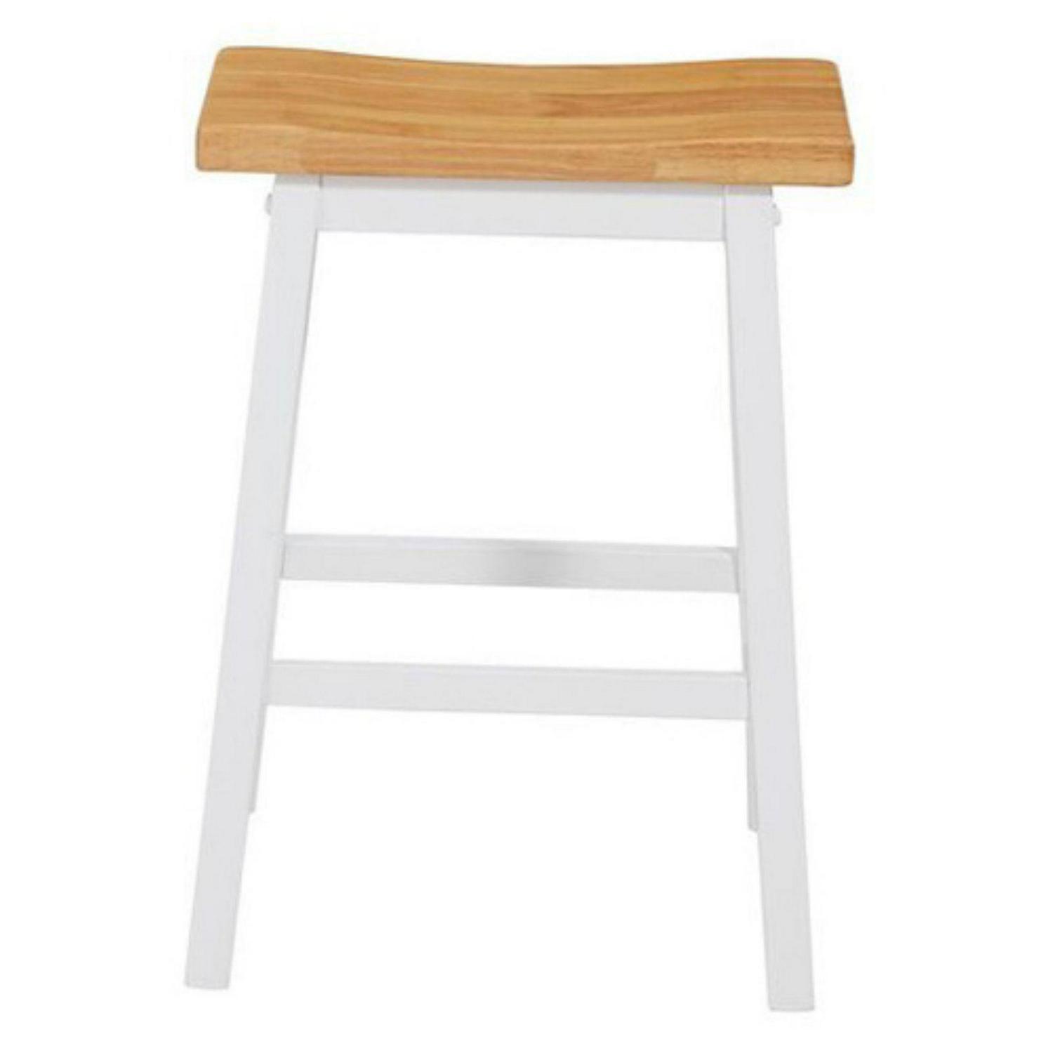 Add comfortable, sturdy seating to your counter or counter height table with the Progressive Furniture Christy Counter Stools – Set of 2. This set of two wooden counter stools is constructed of solid rubberwood and engineered wood for lasting durability. A two-tone finish in white and light oak looks great with most settings and décor. The stools have a contoured wooden seat and foot rest bar for added comfort. Pair with other items in the Christy Collection for perfectly crafted style.