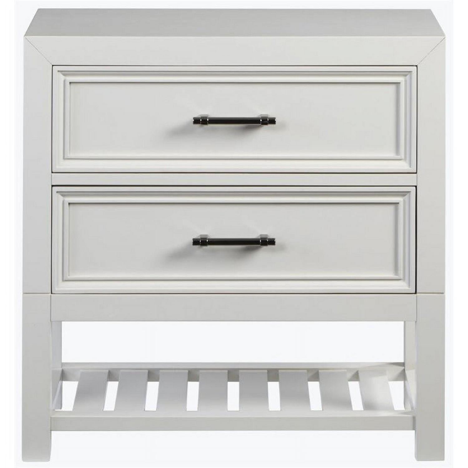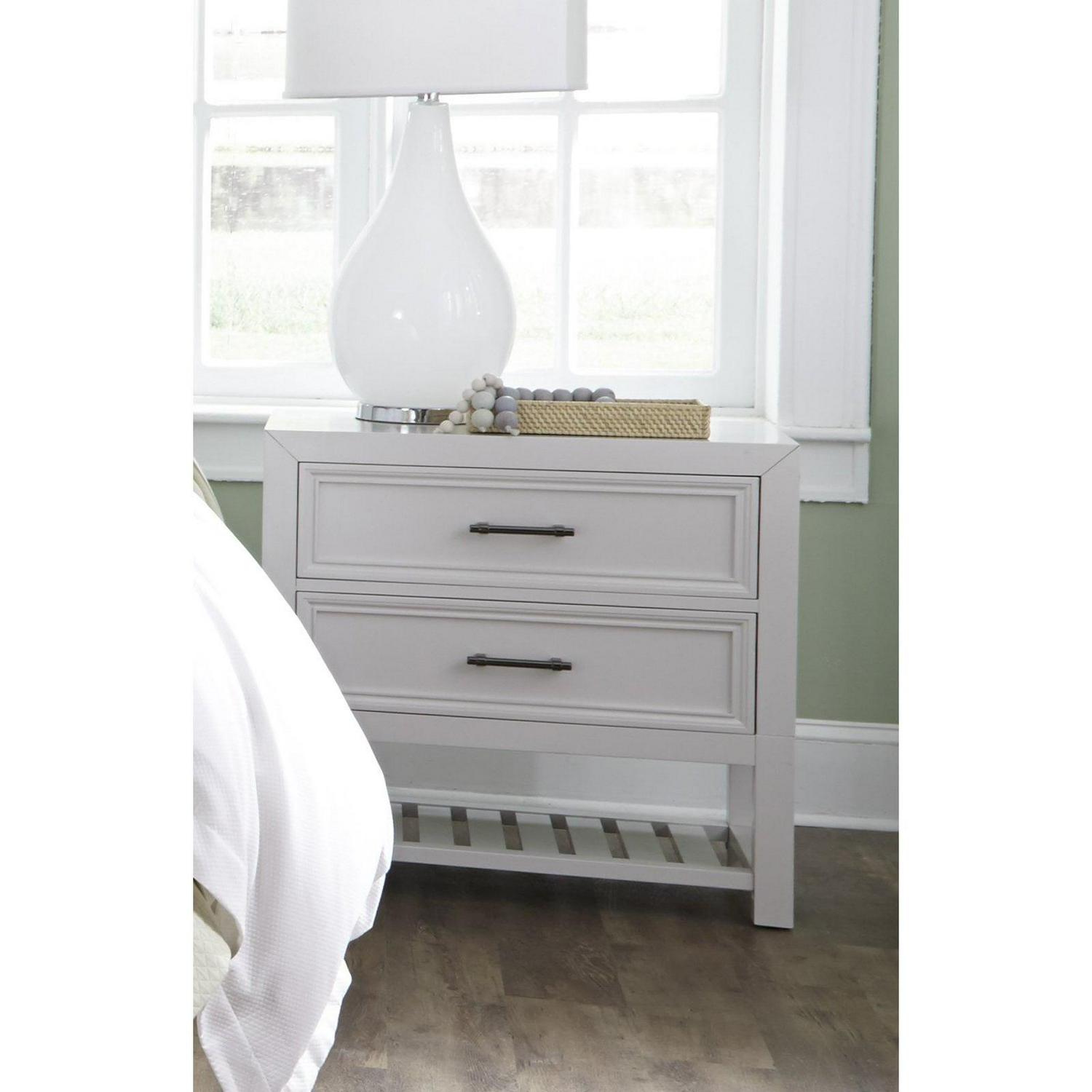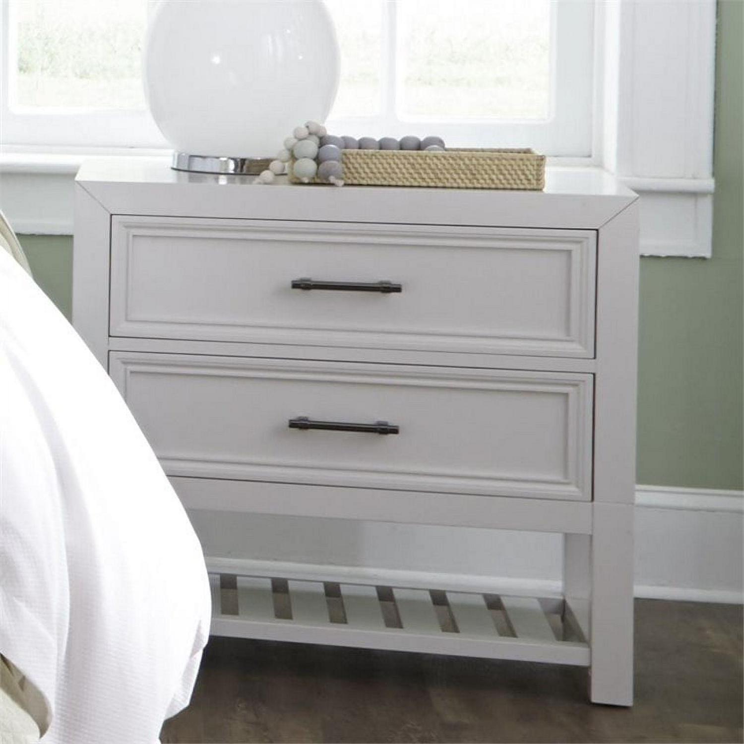 You ll love how the Progressive Furniture Serenade 2 Drawer Nightstand looks in your bedroom. This piece is constructed from engineered wood, rubberwood, and plywood with a tuxedo white finish. It features two framed drawers on full extension drawer glides. This nightstand not only has a top for displaying items, but also an open bottom shelf. The bottom shelf features open slats that highlight its transitional style. Easily match this two-drawer nightstand with others from the Serenade Collection.