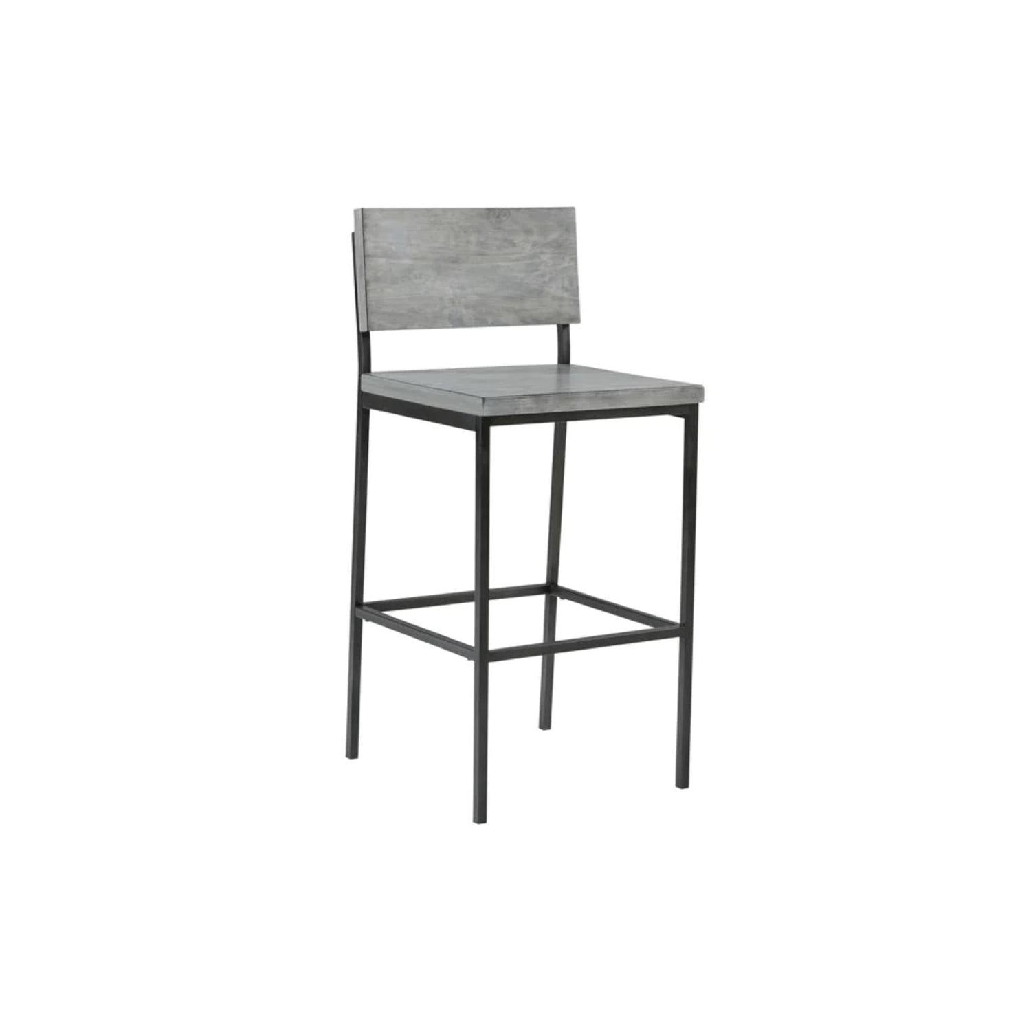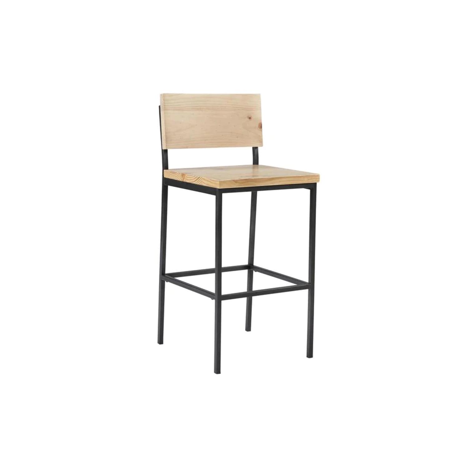Designed for the rhythms of contemporary living, the Progressive Furniture Sawyer Wood Counter Stool is a mixed-media creation with a distressed pine plank seat and backrest attached to a steel frame. The frame has a graphite gray finish for an edgy, industrial look. Each time you settle in and rest your feet on the strong railings, you ll want to run your fingers over the burnished edges of the contoured seat. Wormholes and tiny knots are part and parcel of the wood s natural origin. A rich java brown stain is treated to a protective, glossy, clear topcoat.