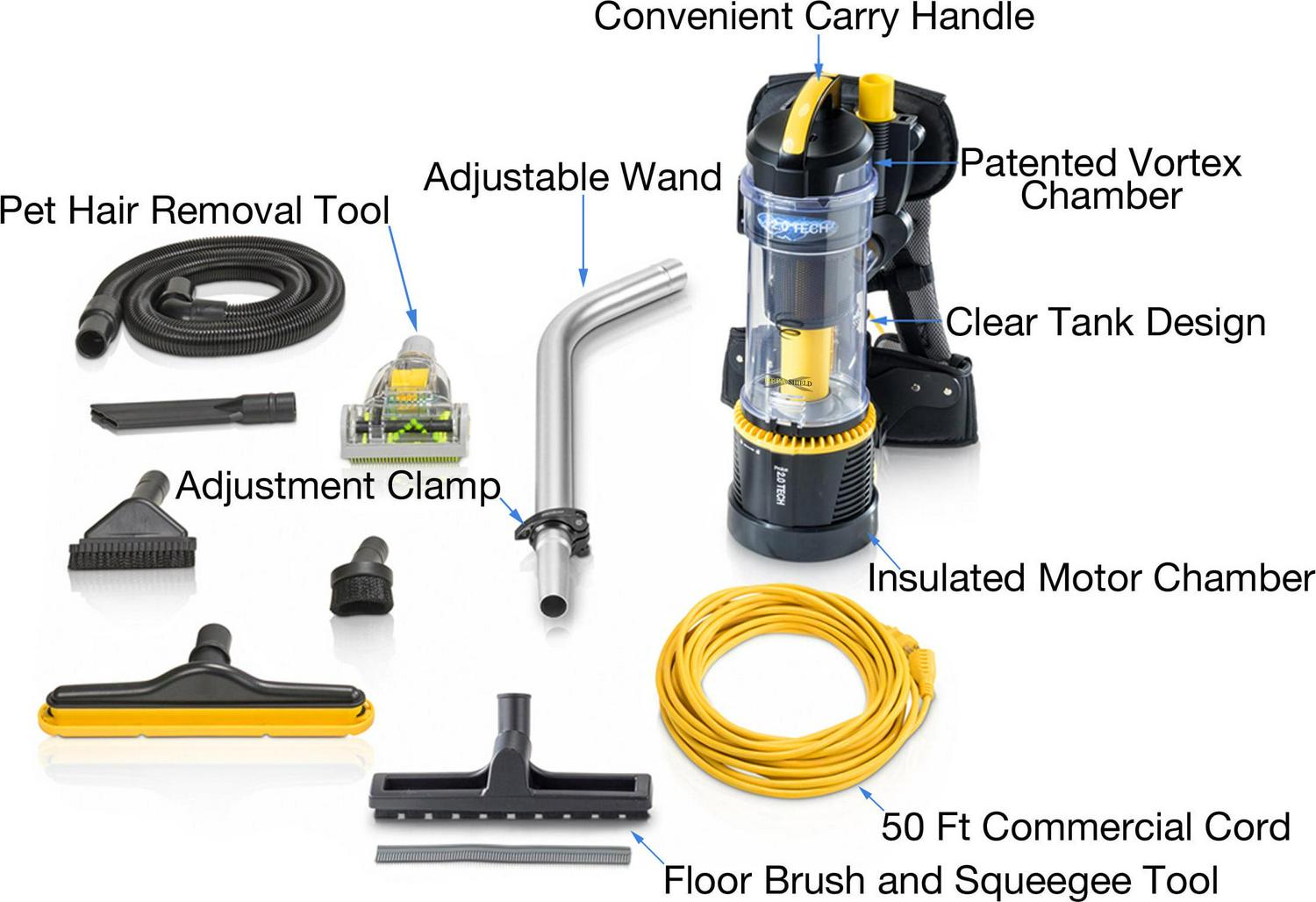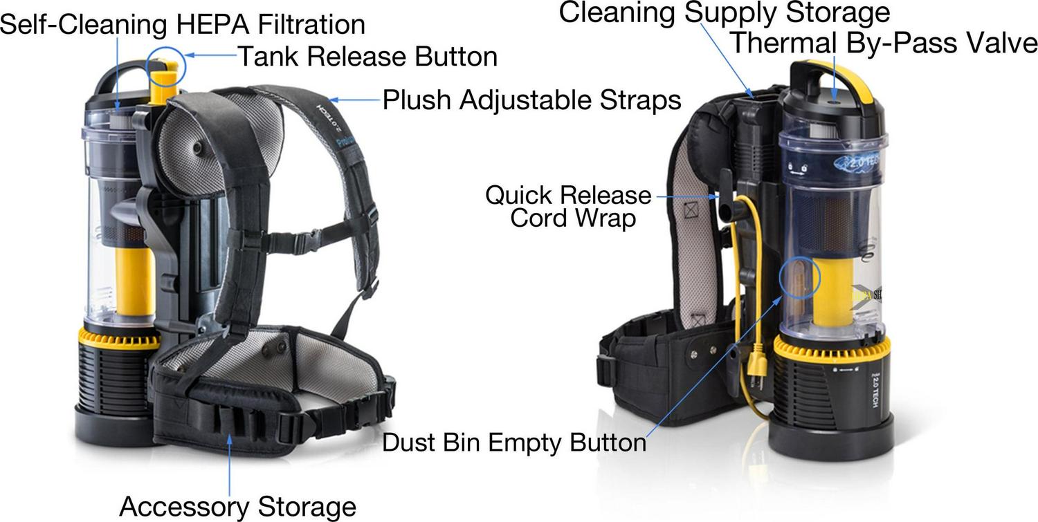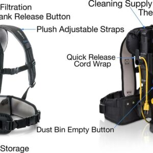 – Commercial Quality: Pro Model with 1.5″ commercial tool kit for Professionals. Includes an adjustable wand and easy to connect tools. Prolux re-invented bagless technology! The result is a bagless backpack vacuum that is 40% more efficient than current bagless tech and also qualifies for the toughest commercial cleaning jobs. The Pro model includes 50 foot commercial grade 3-prong extension cord, 1 1/2 commercial attachments and hose, and rubber bumper for protection