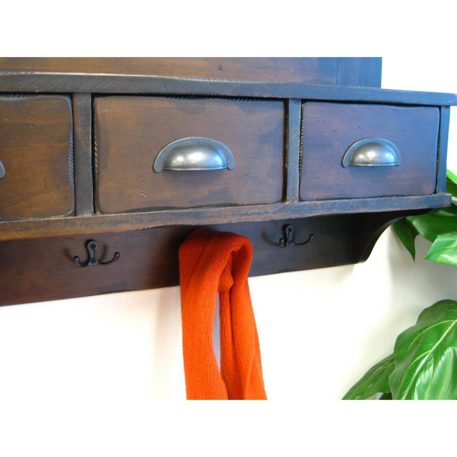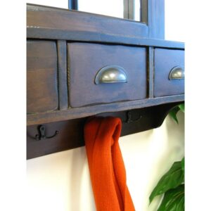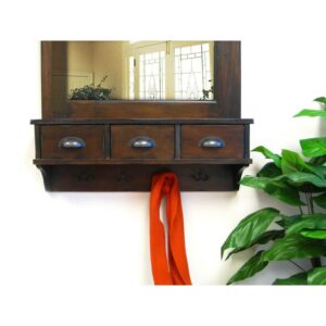 Bombay wall mirror, elegant classic design with drawers and hooks to store your daily used items. Great size mirror with antique finish. Three drawers to store small items. 4 hanging hooks for keys and clothes.