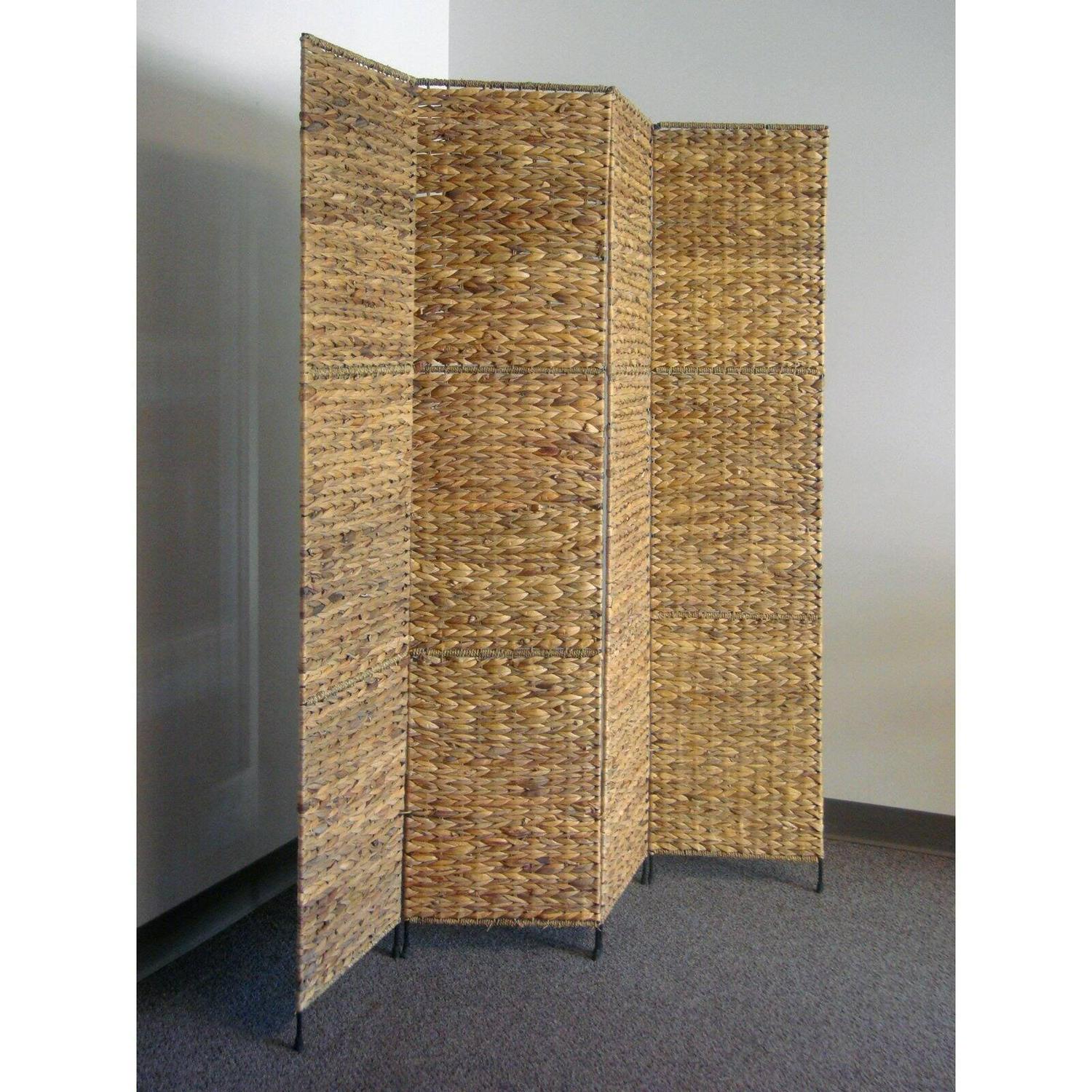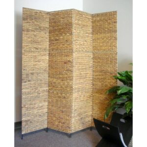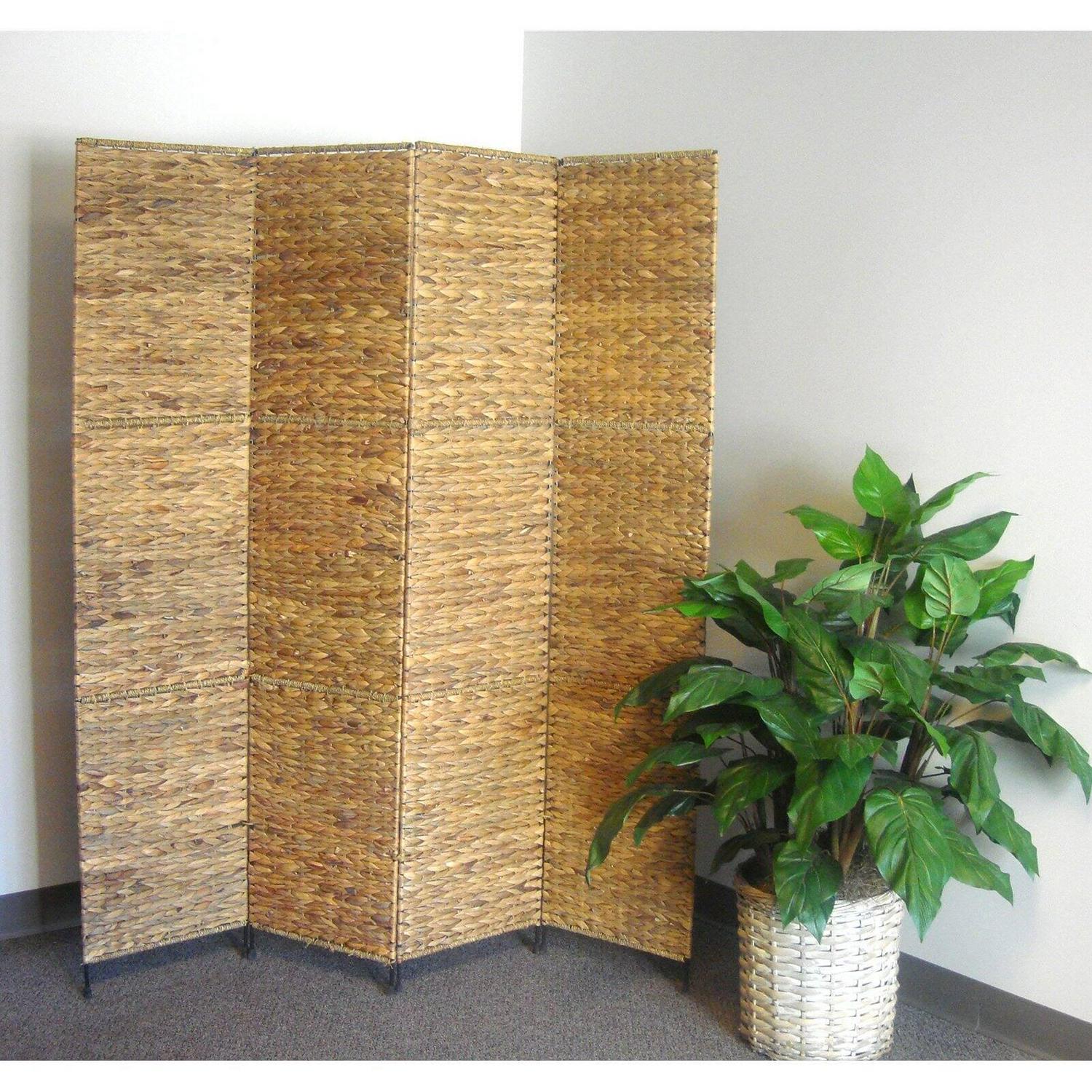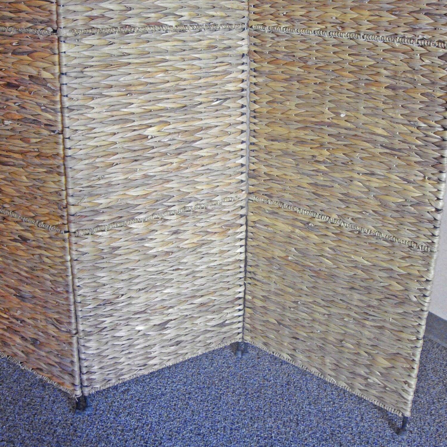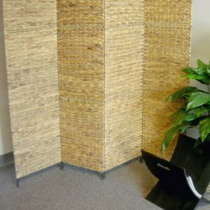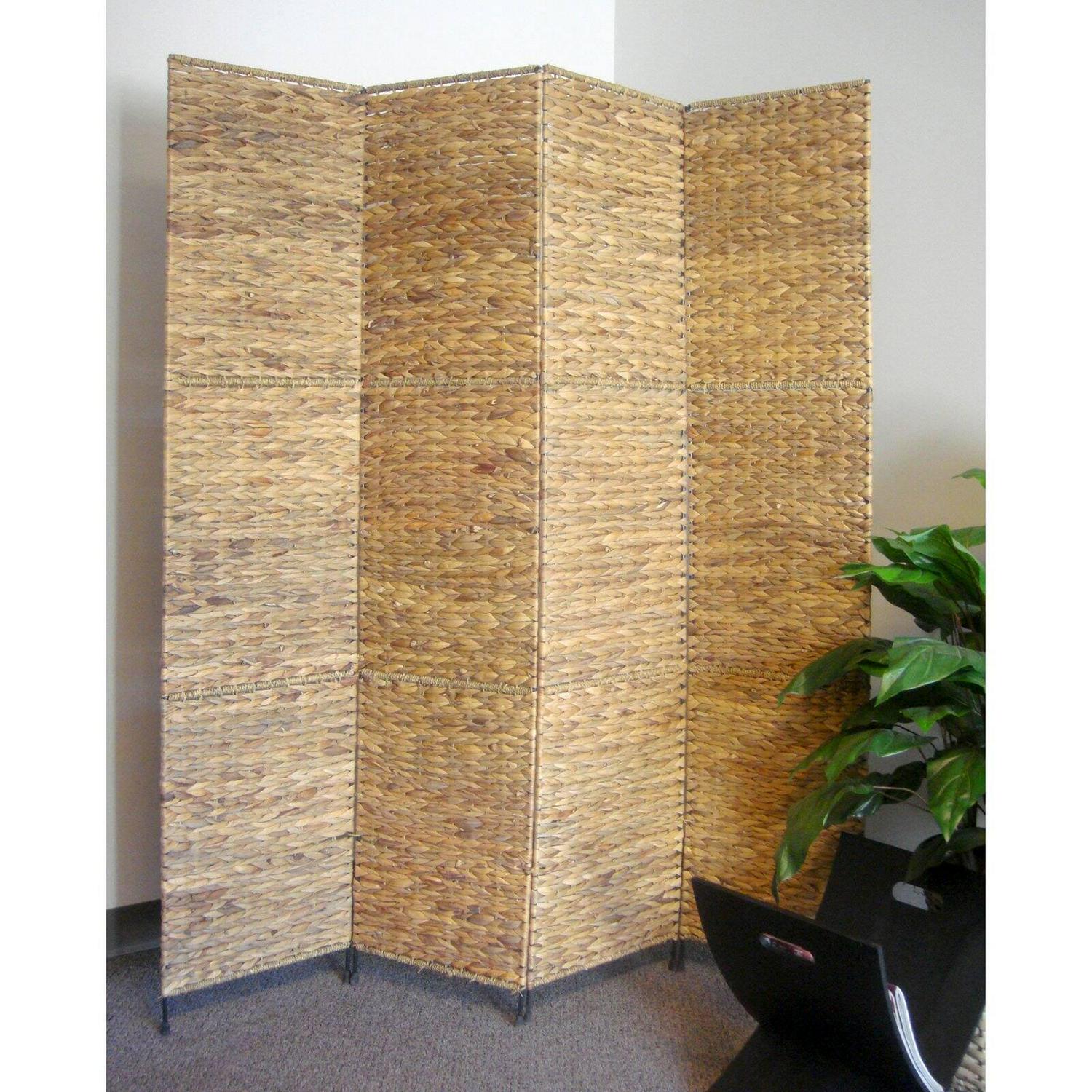 Jakarta folding screen with water hyacinth decoration. Four well-crafted panels made from water hyacinth. This beautifully textured room divider can be used as a decorative accent or to block sunlight from windows.