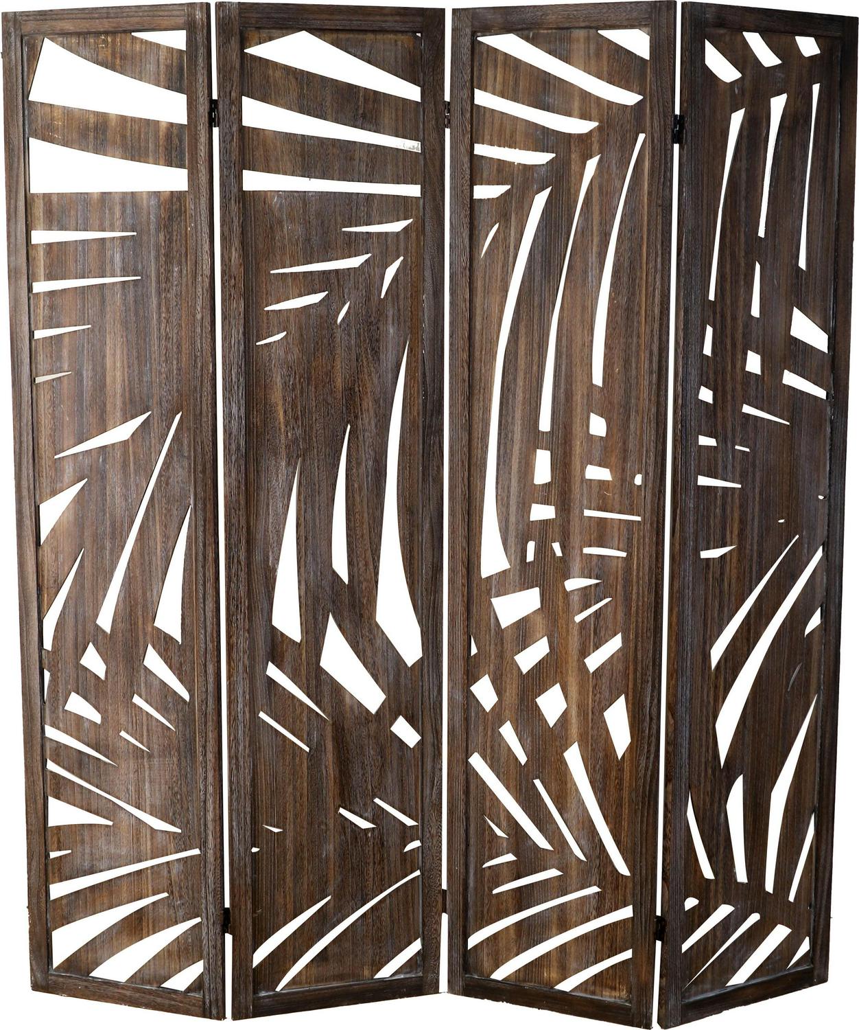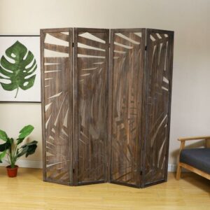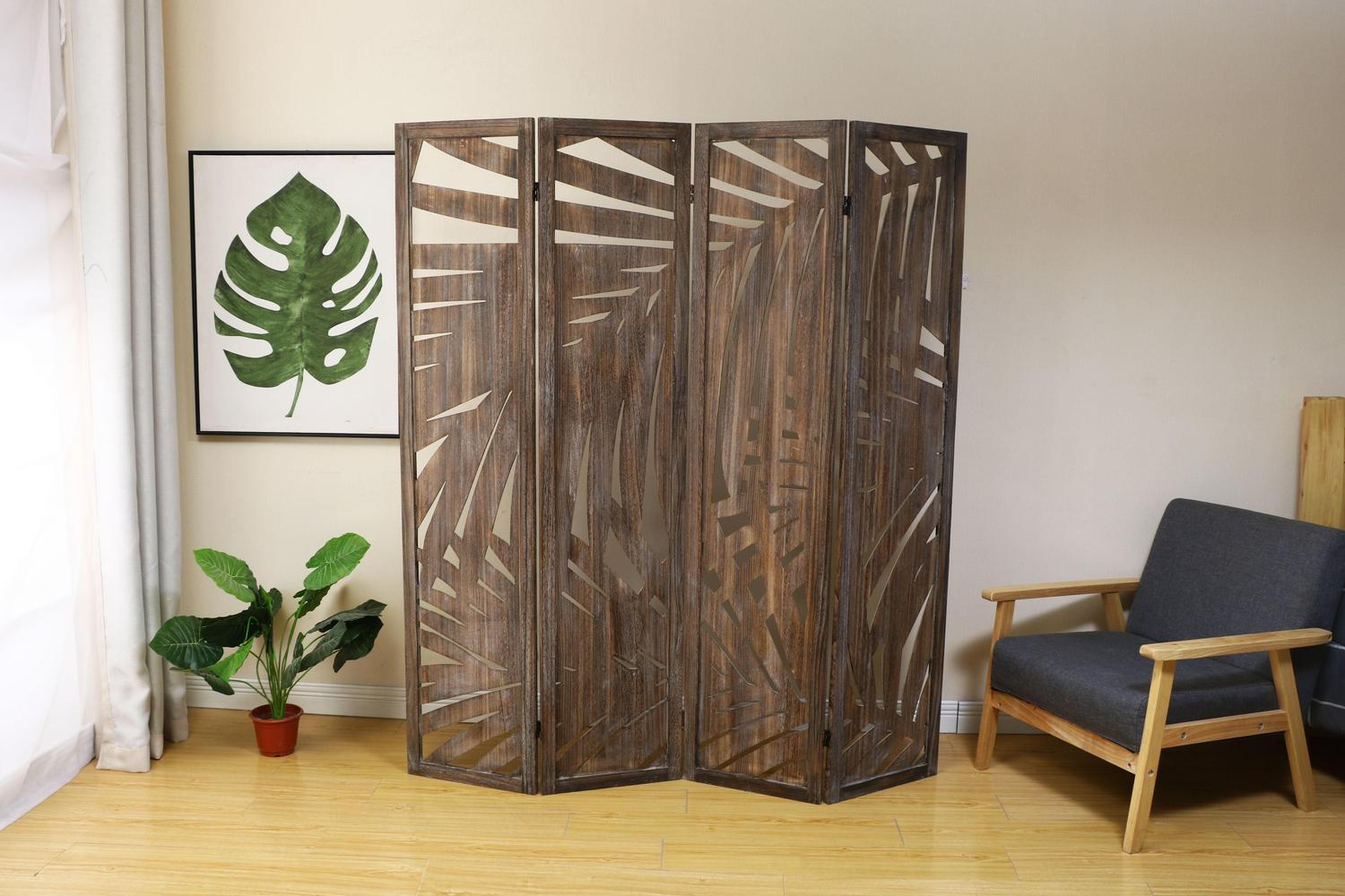 Palm Spring 4-panel folding screen is beautifully crafted and assembled. The folding screen is made in natural Paulownia wood with carbonized finish, their 4 panels form a palm leaves picture, a beautiful art design that is perfect for decoration as well as providing privacy users needed.