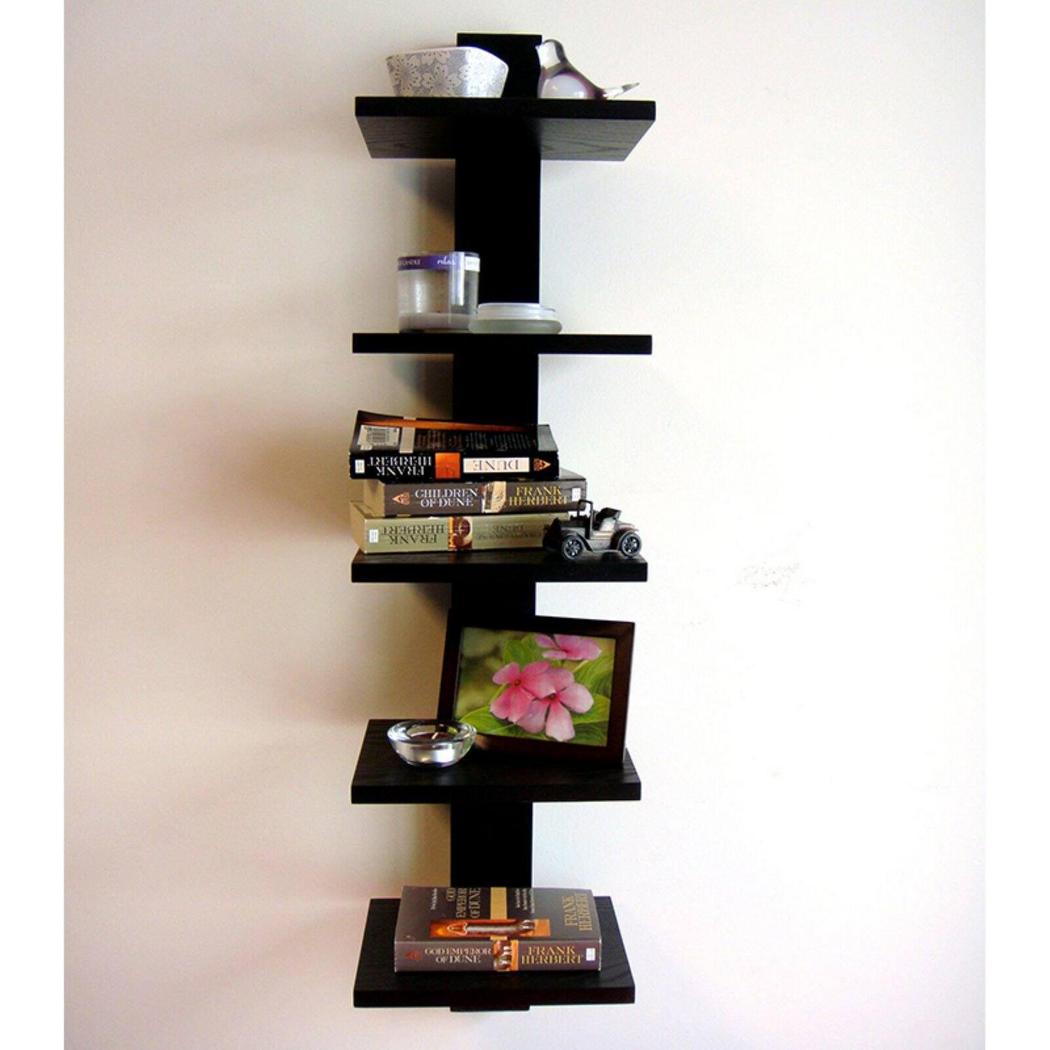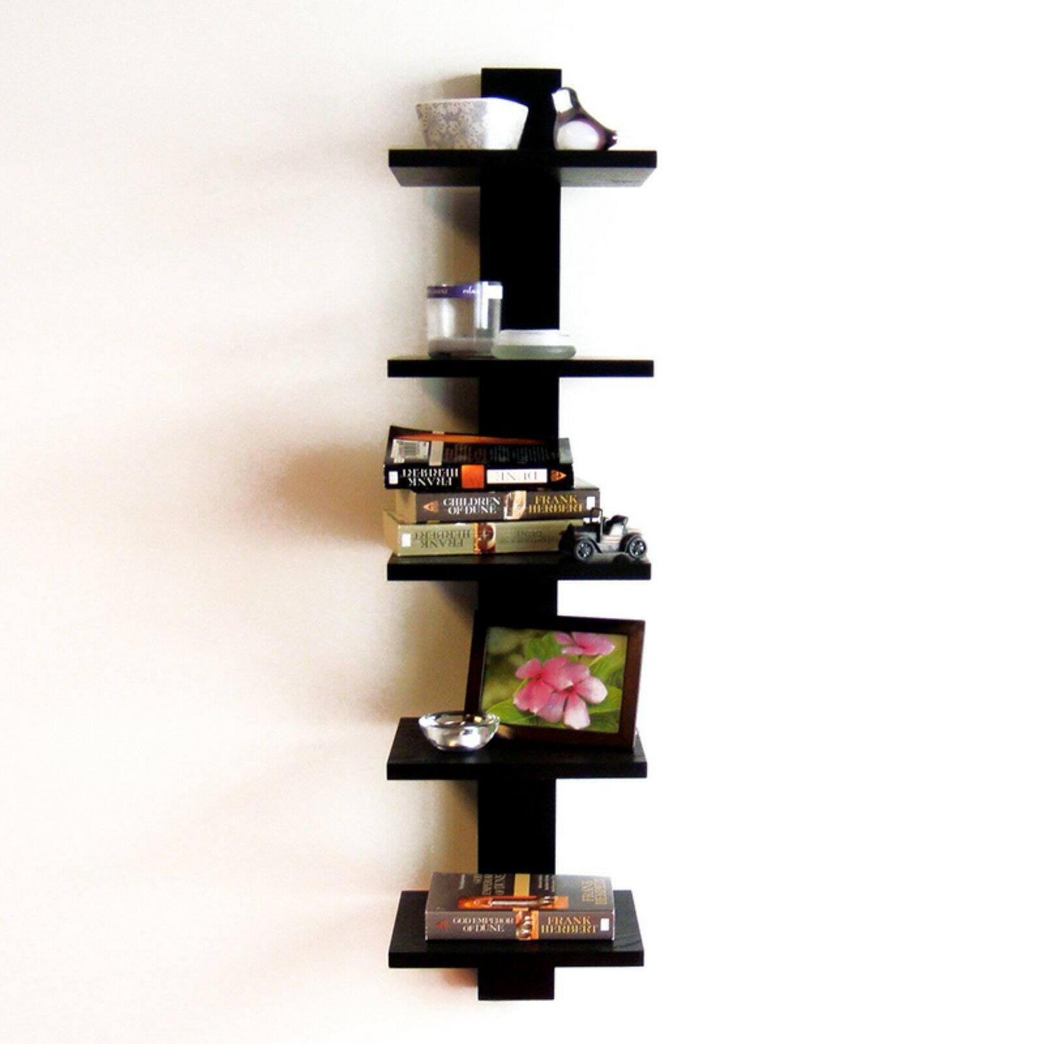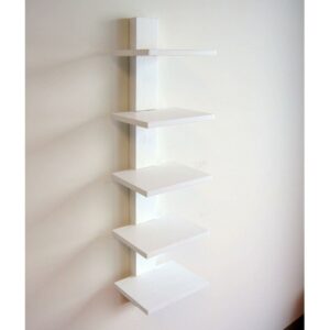 Display your photos, stack your books, or light a candle on this Spine Decorative Wall Shelf. Featuring a simple but modern look that utilizes five shelves, this space saver is easy to assemble and install off the ground and against any wall in the house. The shelf is available in black or white and measures just over three feet tall and each of the five shelves measures just under 10 inches wide..