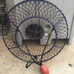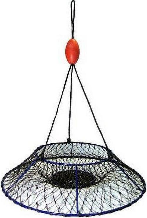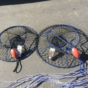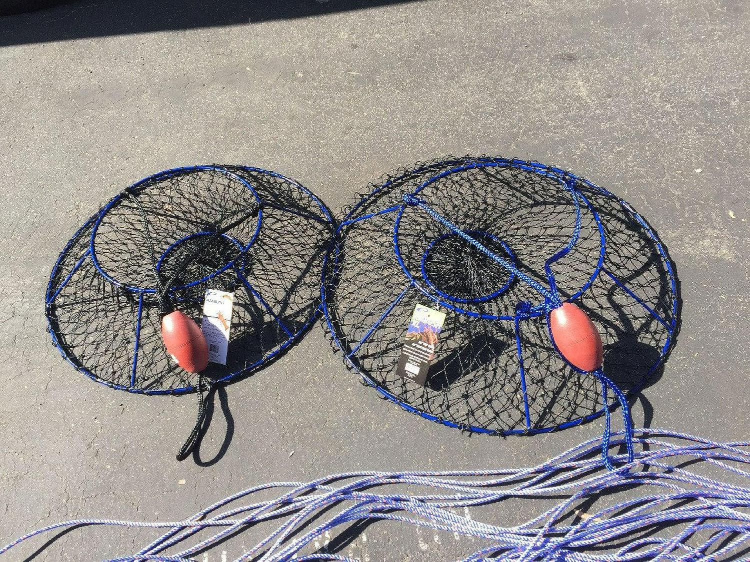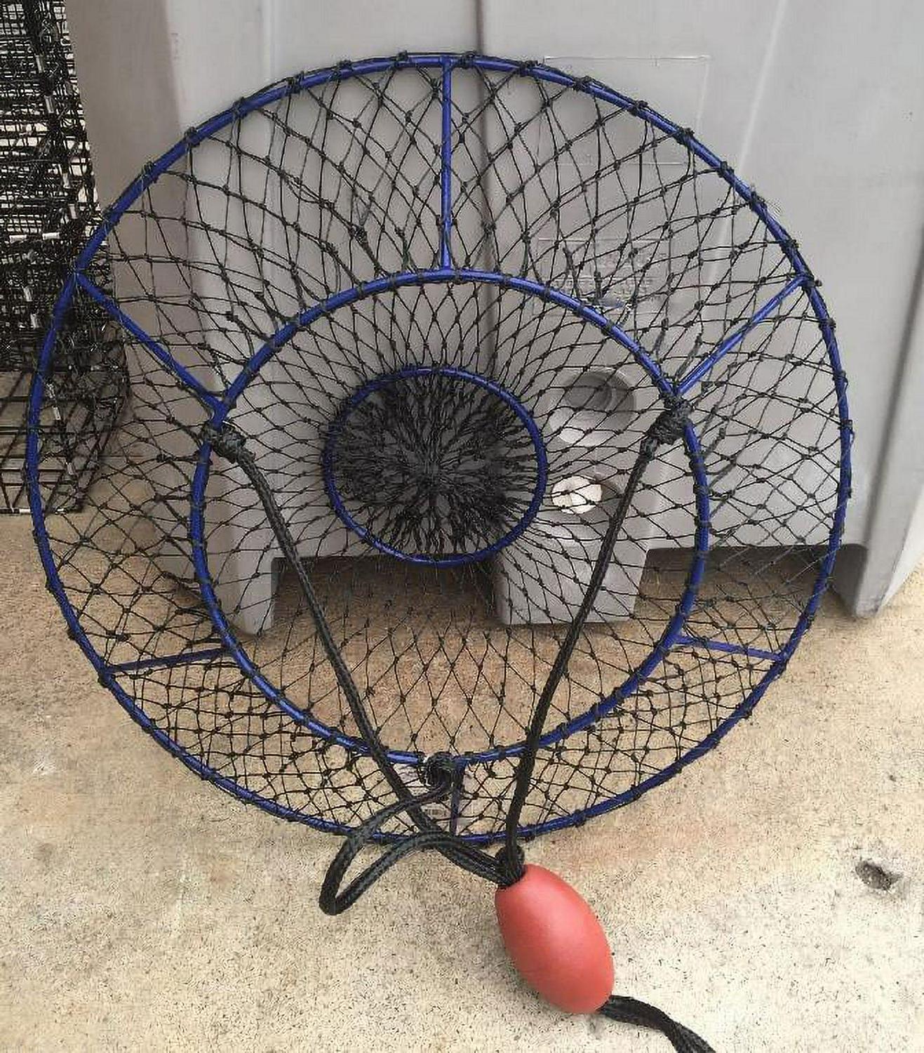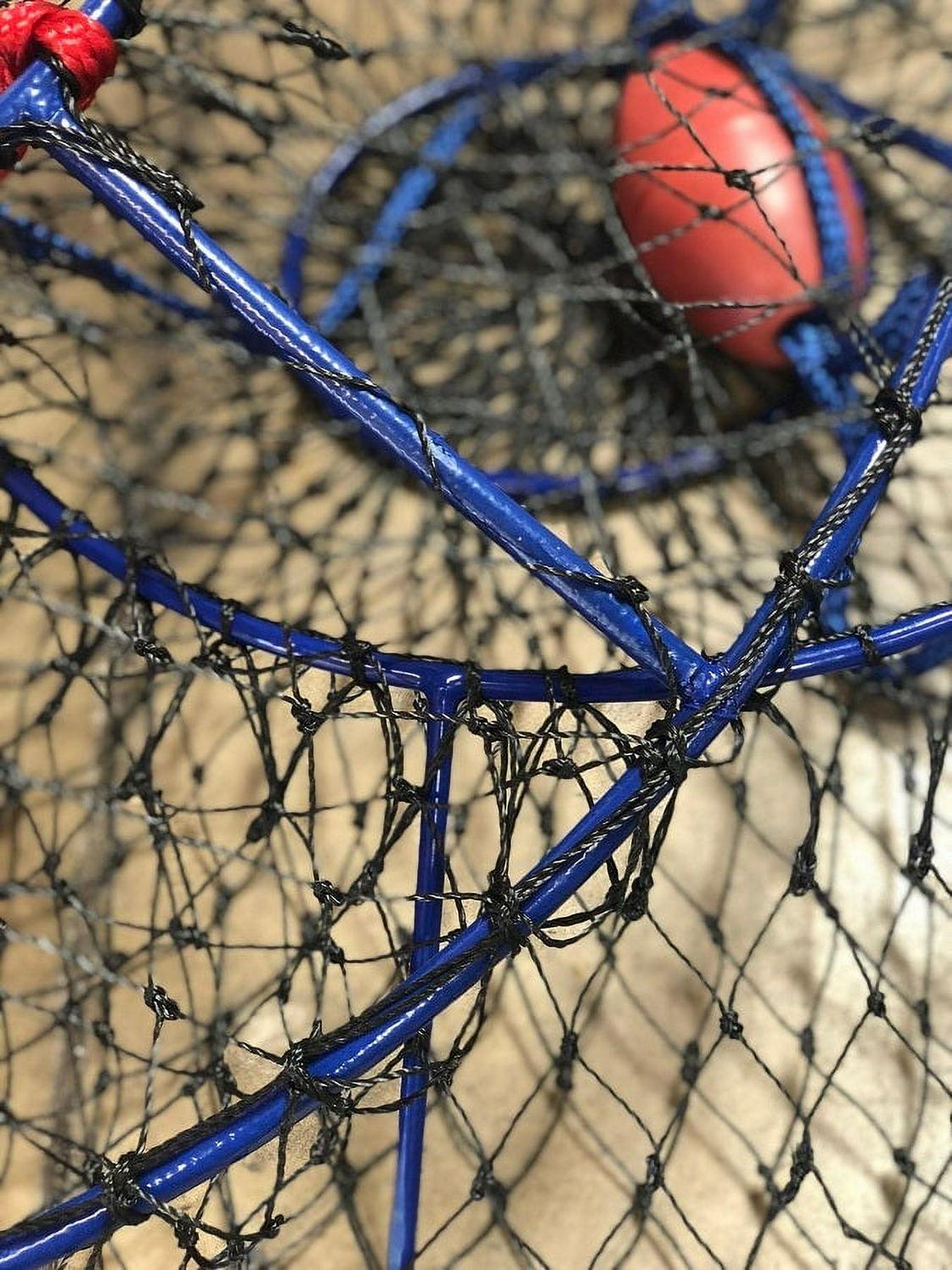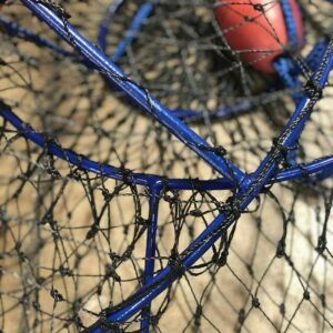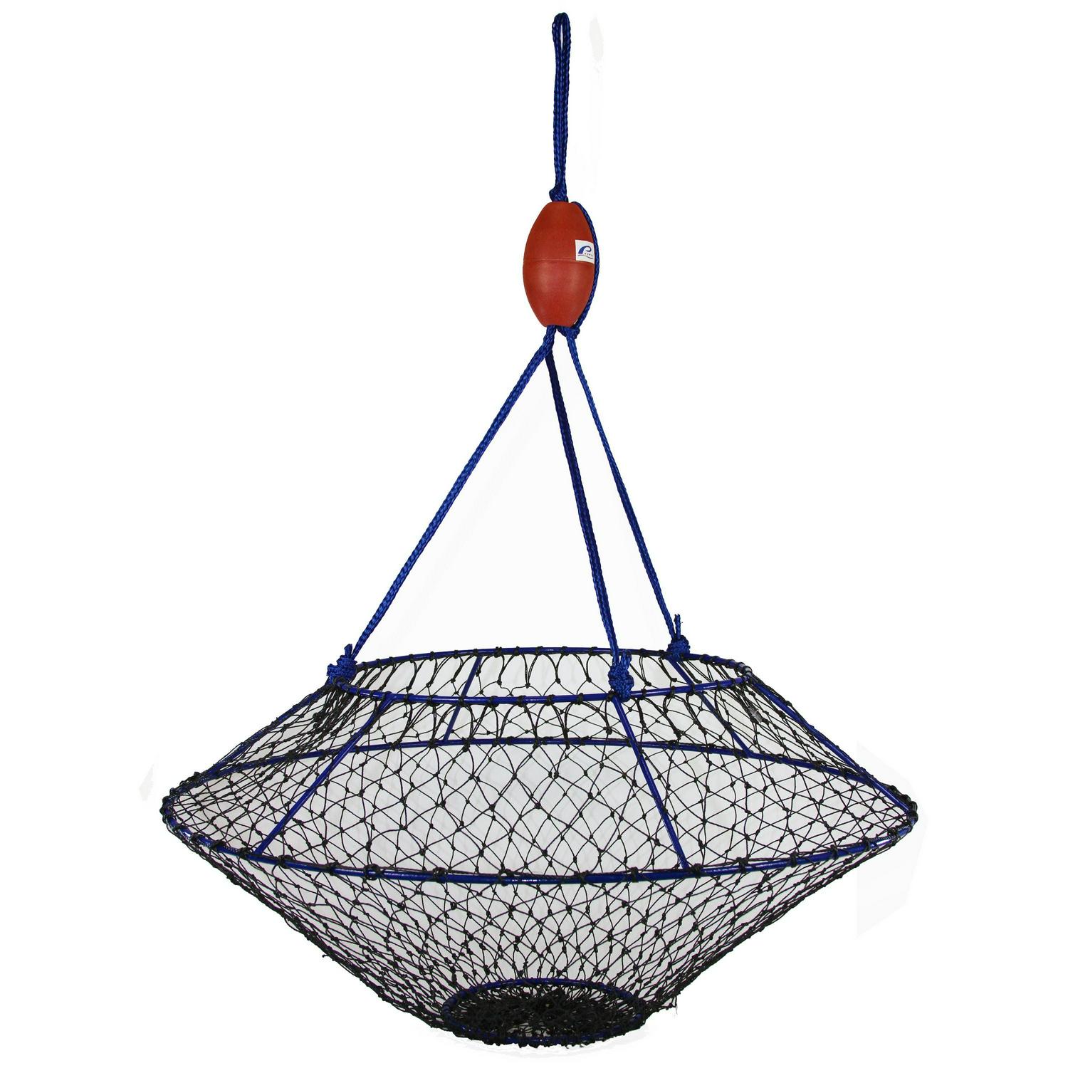 Ambush Hoop Nets are optimized for catching lobsters and crabs. The steep angles offer more volume and help to retain more of your catch, especially for the taller stature of larger crustaceans such as lobsters. The stealthy blue-ocean vinyl coating protects the rigid steel frame and top ring from the elements and almost disappears in the water blending in with its underwater environment. Promar Ambush Nets are supported by 6 fixed welded posts providing solid and stable hauls. These nets come complete with a patented built in bait pouch and weighted steel ring, a heavy duty black harness, and quality bridle float. Match these nets with a Promar Hoop Net Pro Kit for turn key rigging.