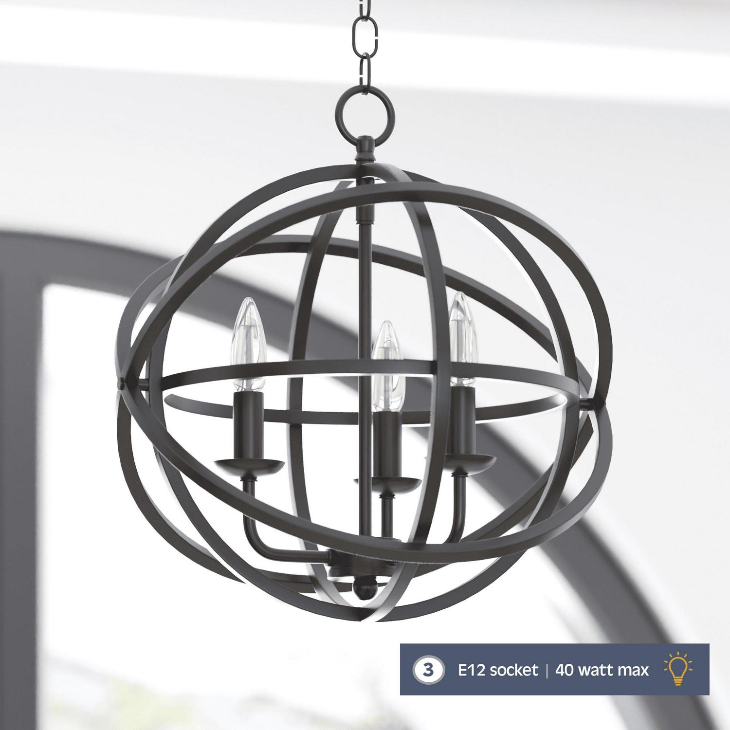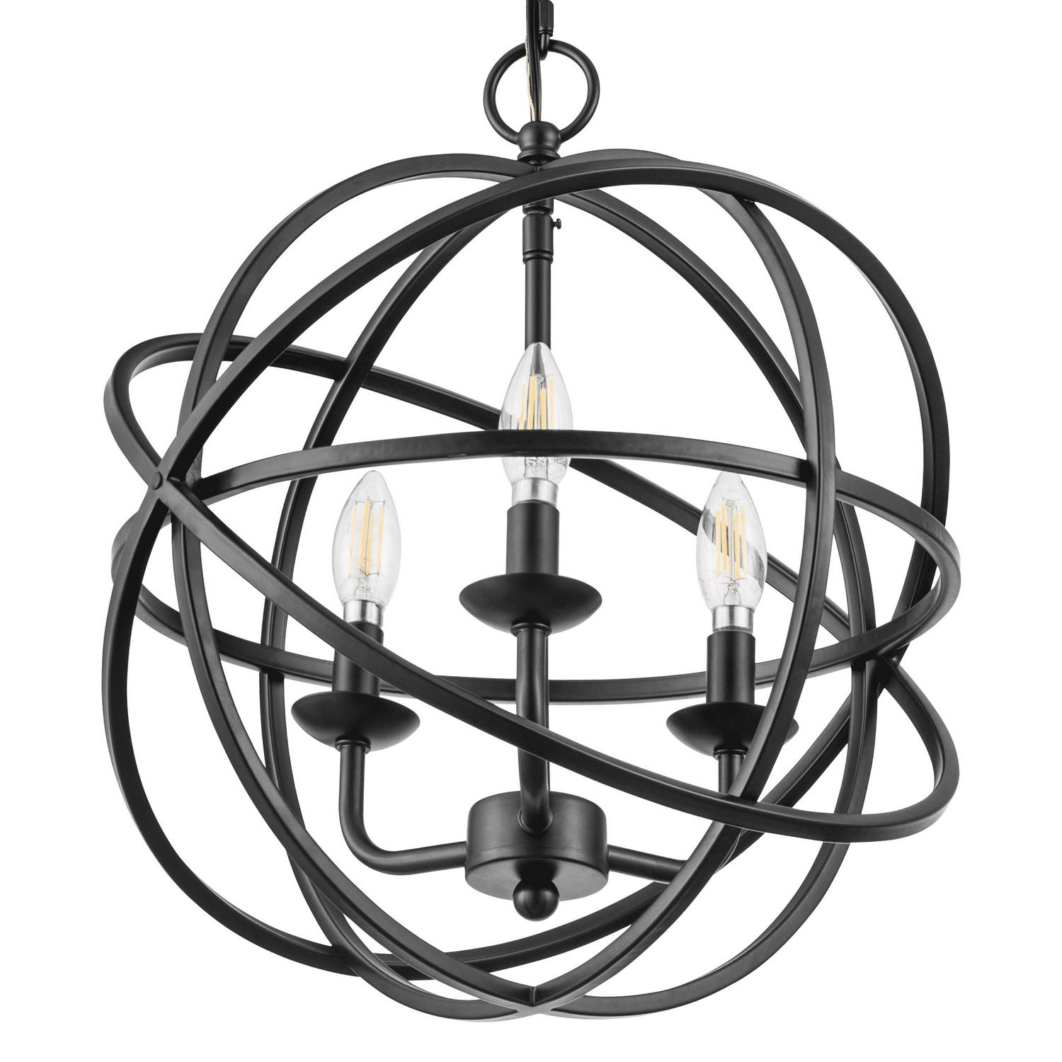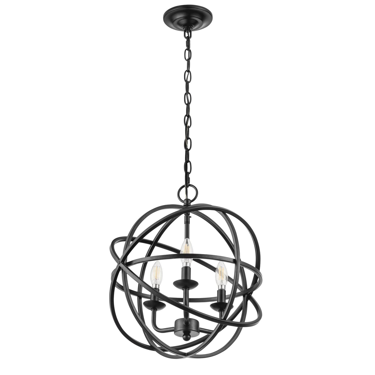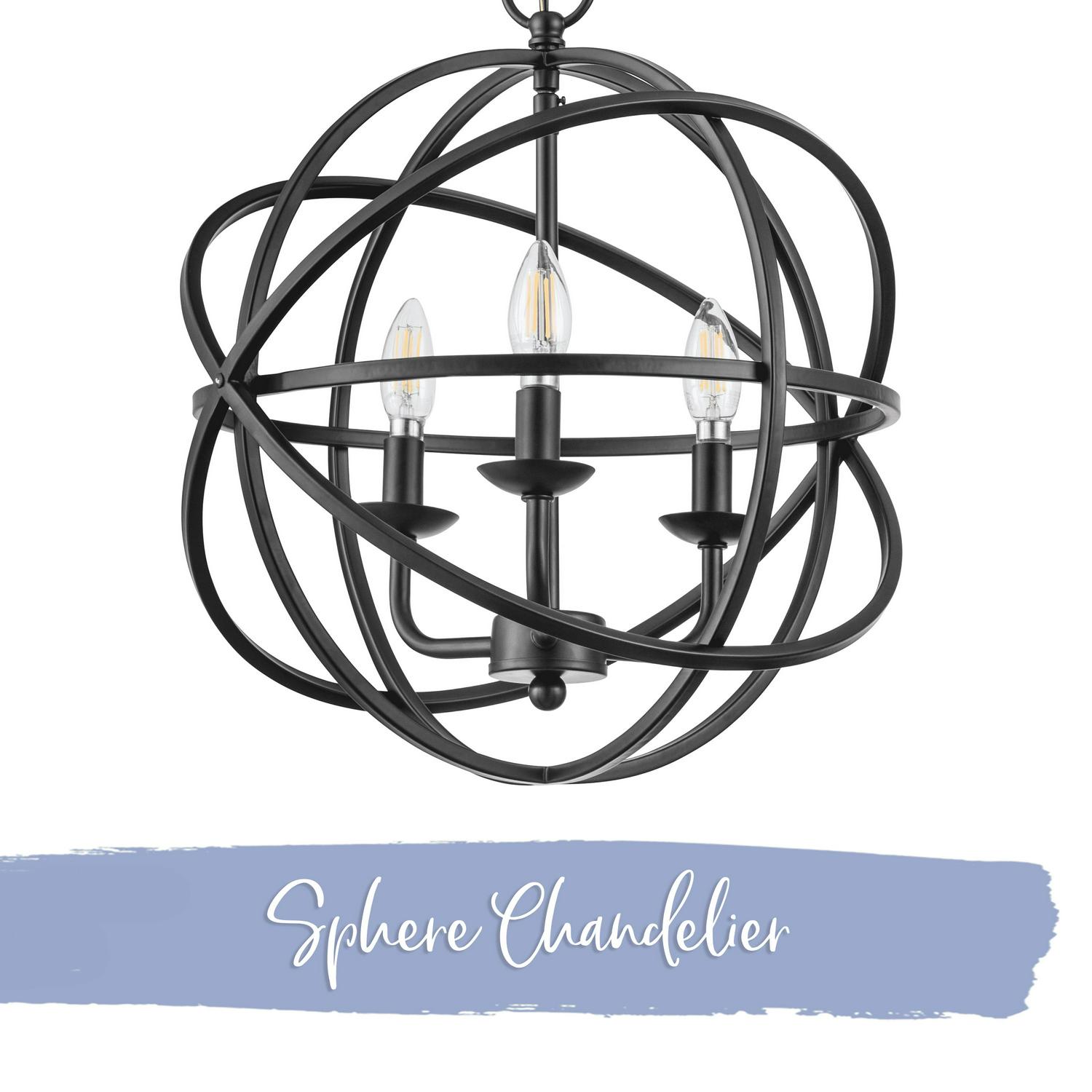 Add striking, sophisticated style to your indoor spaces with the Prominence Home Birchberry spherical chandelier. Featuring a matte black finish, this candle style pendant light showcases three E12 bulbs (not included). This beautiful luminary is perfect for your kitchen island or above a stylish dining room table and can be used as a beautiful single light source or several can be grouped together for an eye-catching statement piece. This light fixture comes with comprehensive instructions and a troubleshooting manual making it easy to have installed in no time!