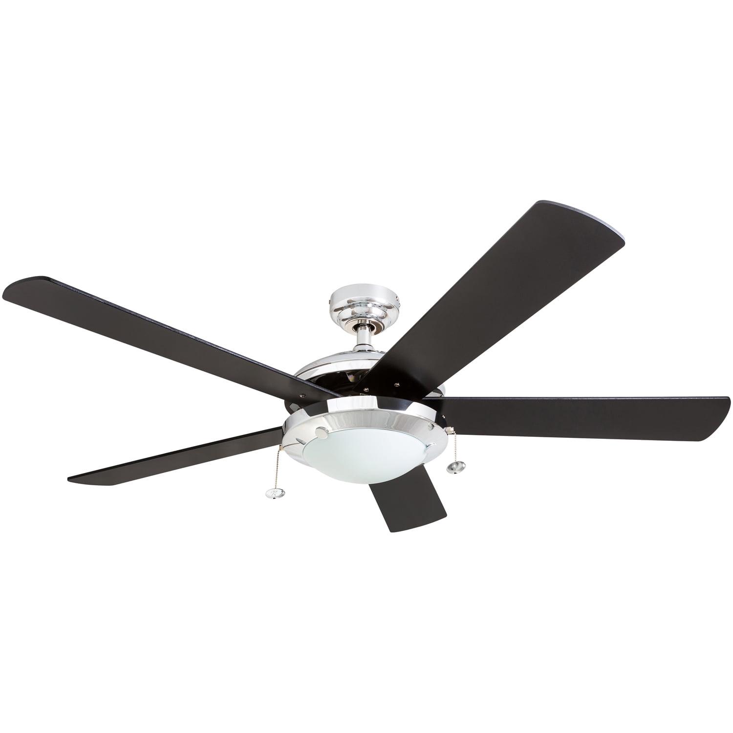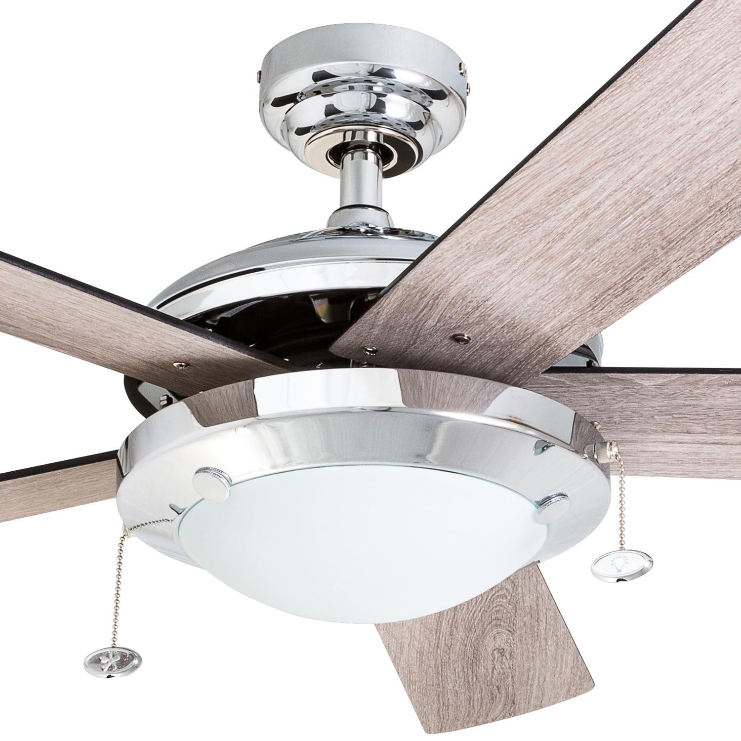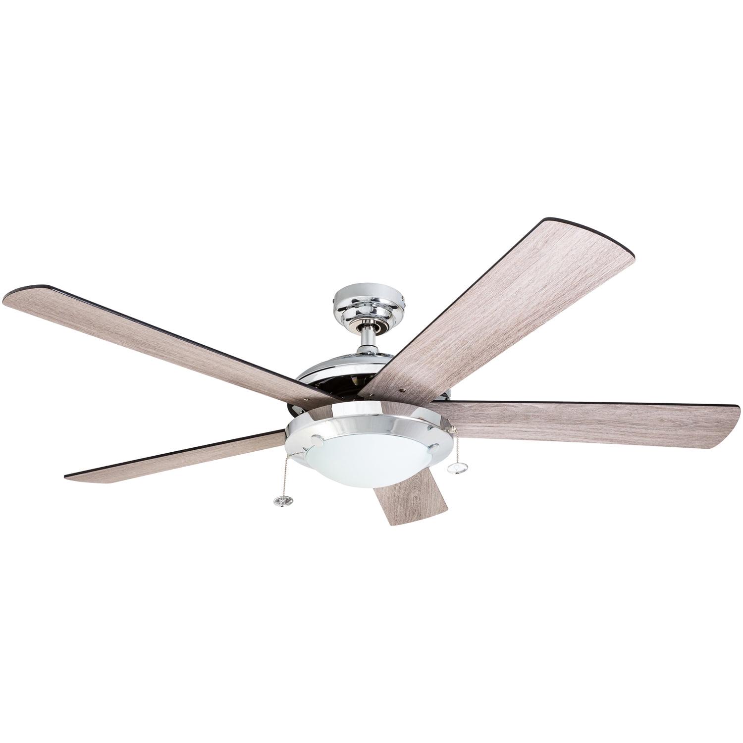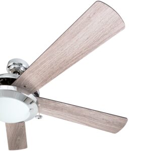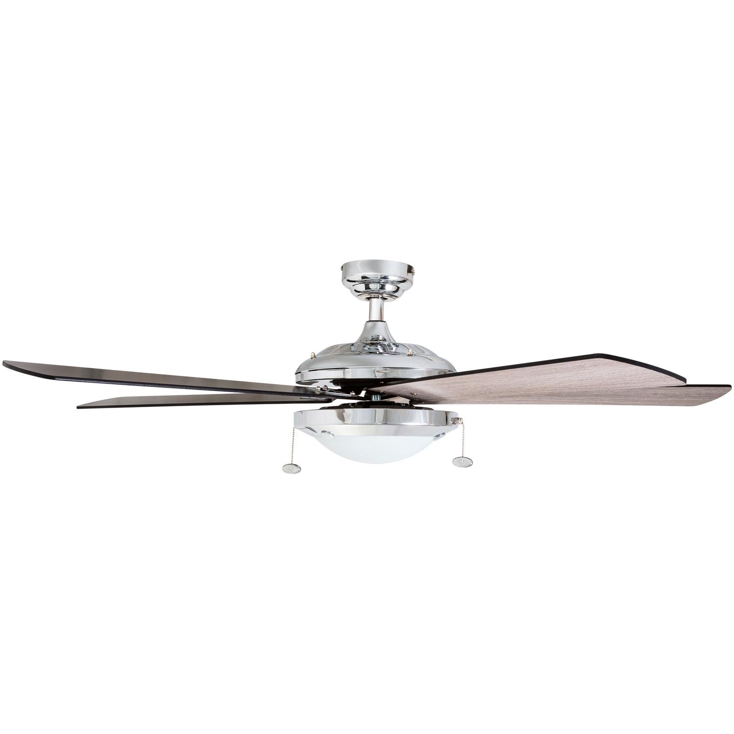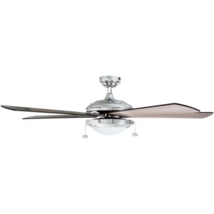 Prominence Home Bolivar 52 Chrome Ceiling Fan with 5 Blades, Integrated LED Light Kit, Pull Chains and Reverse Airflow