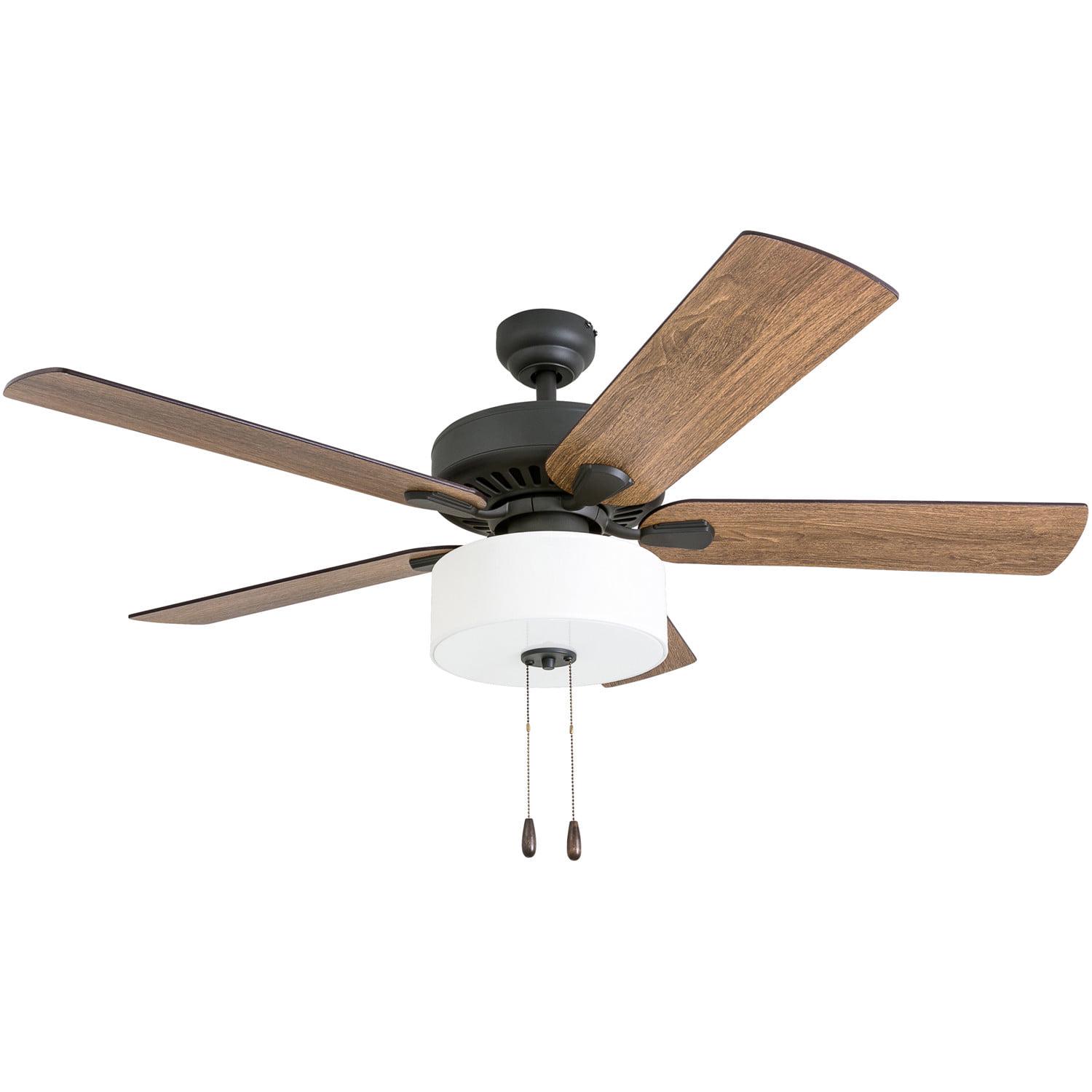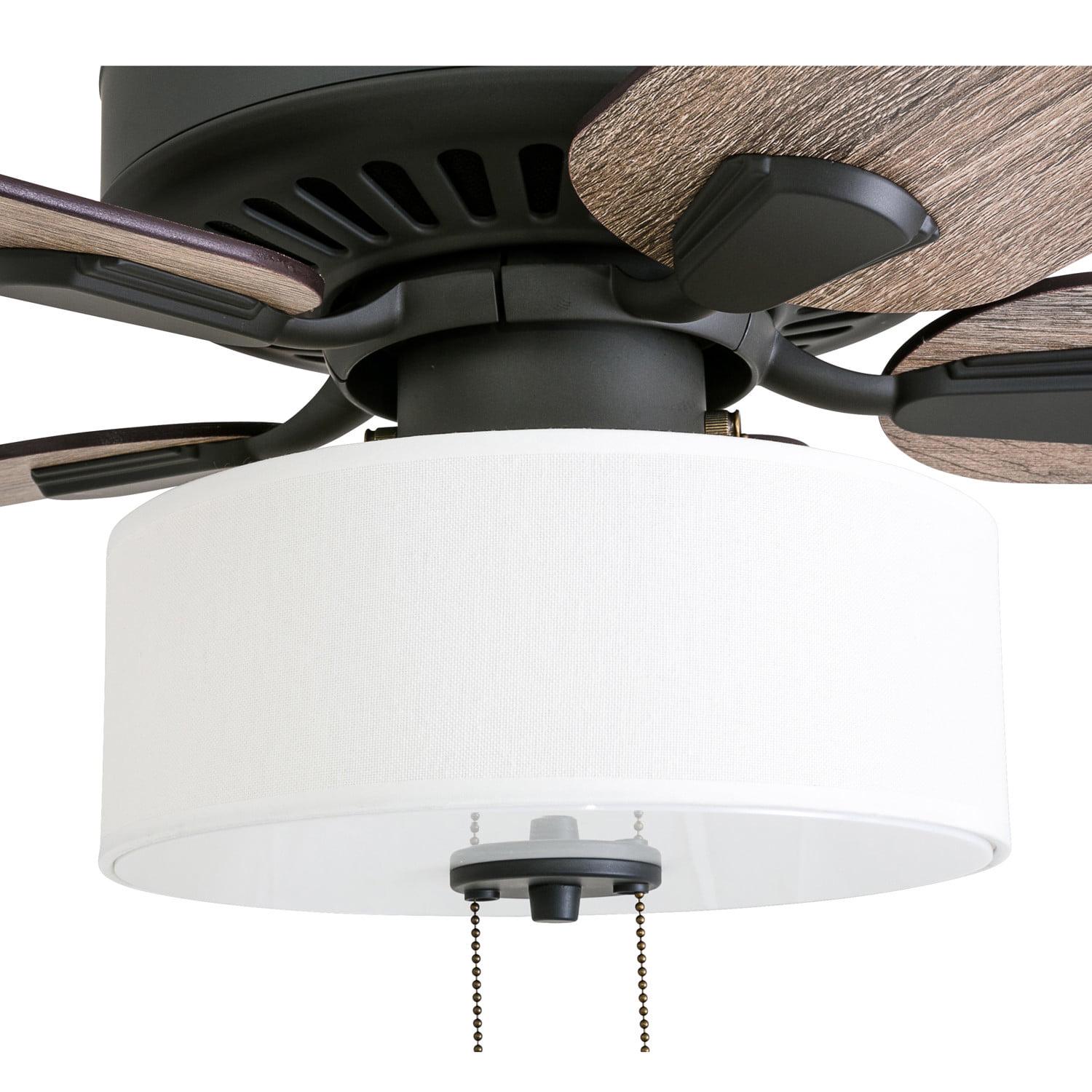Prominence Home Canoe Ridge 52 Bronze Farmhouse Ceiling Fan with 5 Blades, Linen Drum Shade, Pull Chains and Reverse Airflow