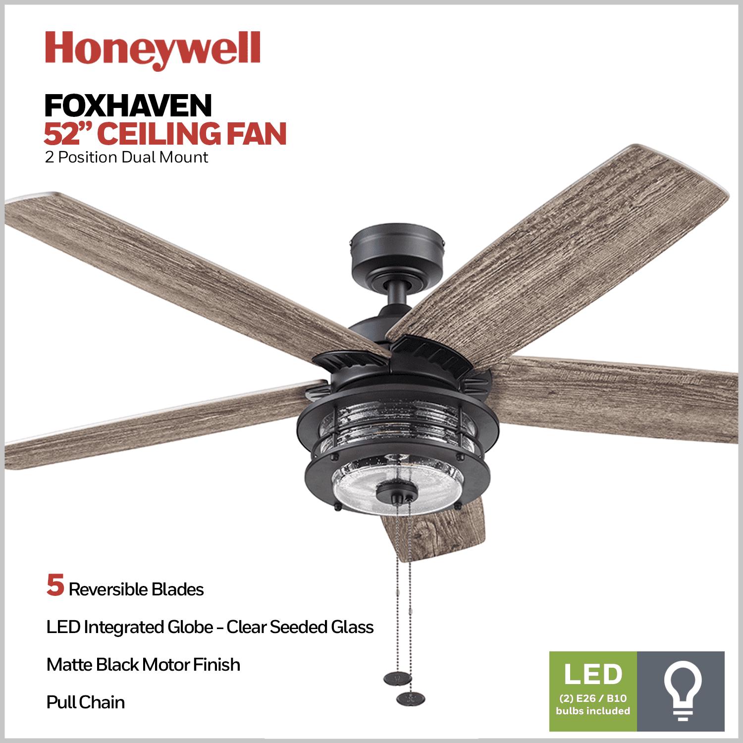– RUSTIC FARMHOUSE: With unique texture, stylish Edison light bulbs and a beautiful matte black finish, the Honeywell Foxhaven elevates your farmhouse spaces! Having a blade span of 52 inches, this fan is perfect for medium to large rooms such as bedrooms, dining rooms, dens and much more!