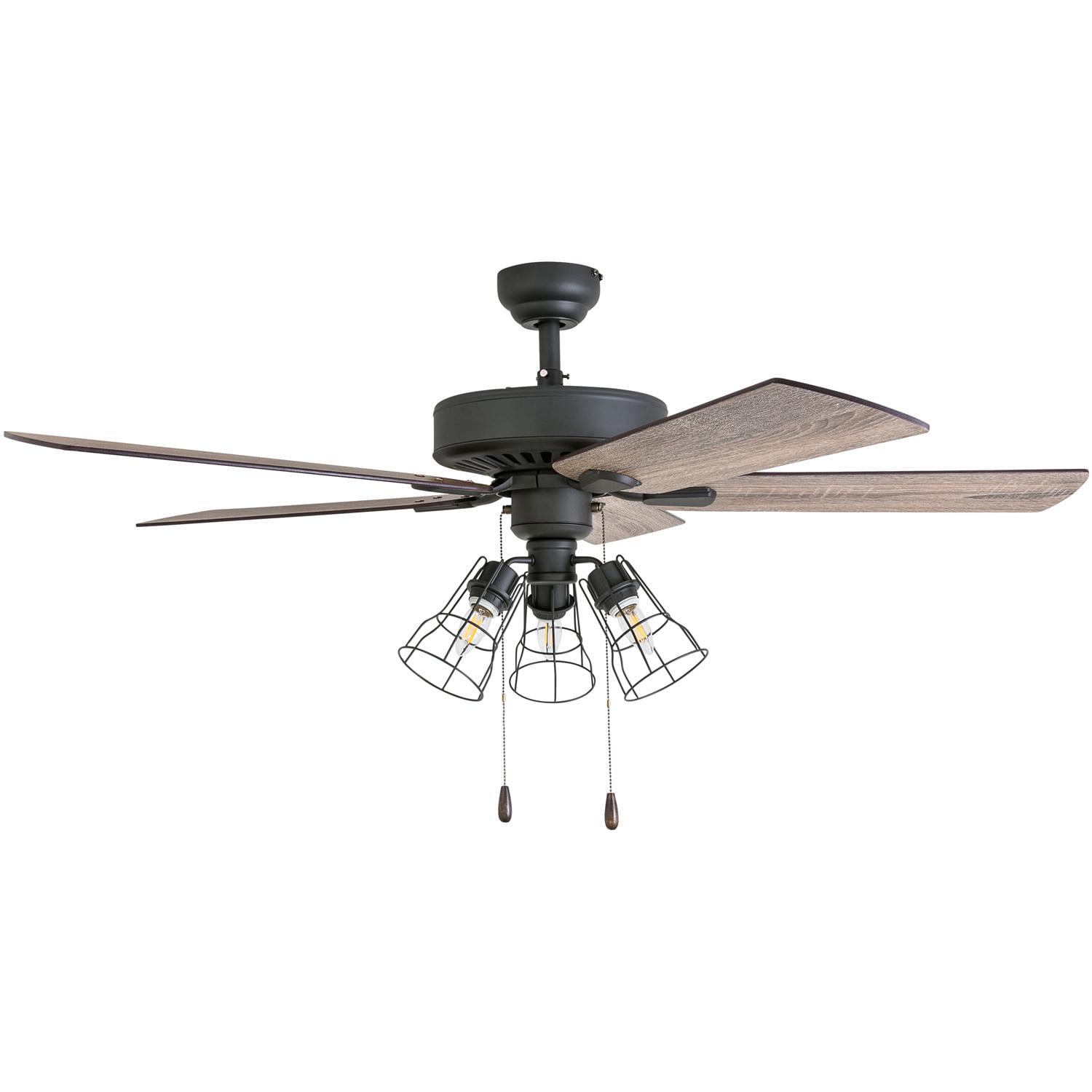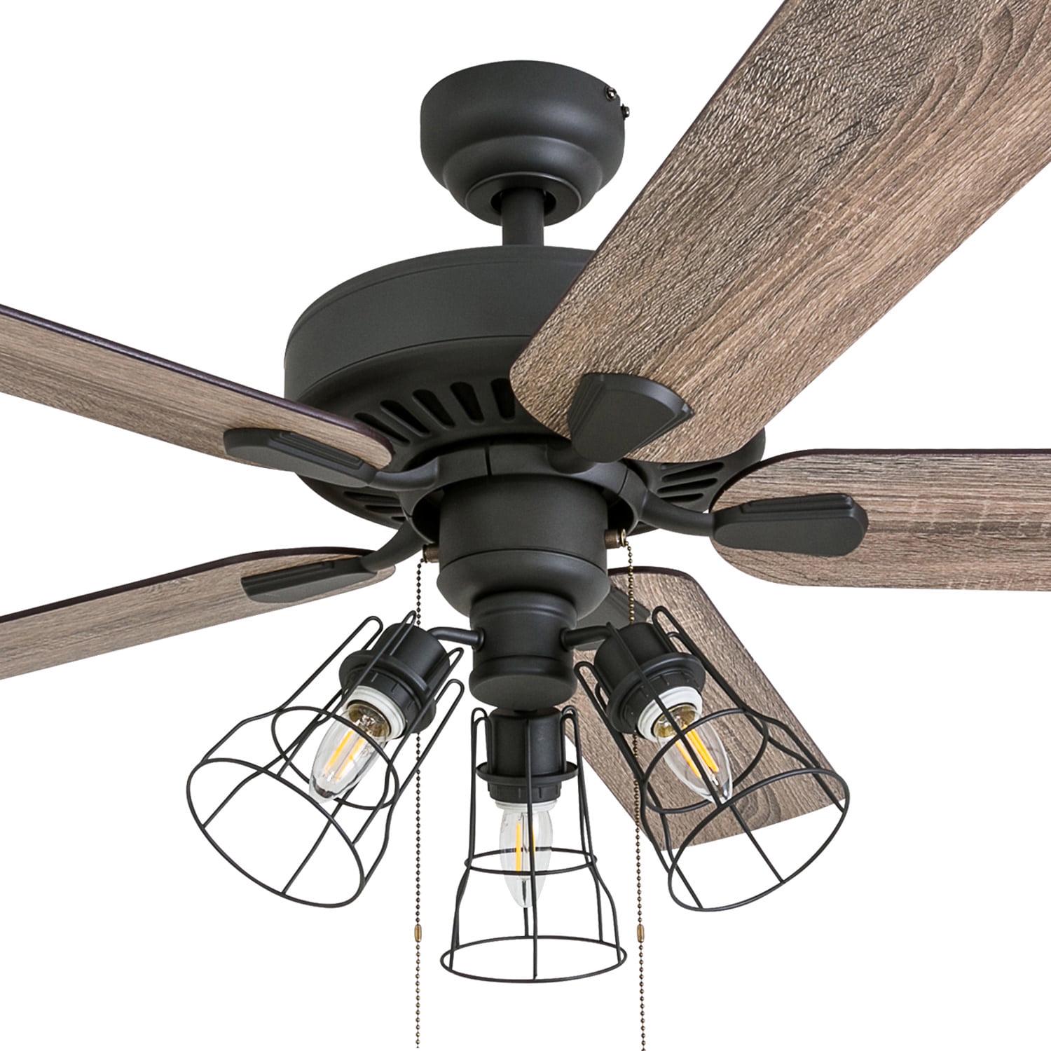 Prominence Home Inland Seas 52 Bronze Farmhouse Ceiling Fan with 5 Blades, 3 Arm Cage Light Kit, Pull Chains and Reverse Airflow