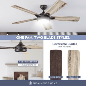Prominence Home Lorelai 52 Bronze Modern Ceiling Fan with 5 Blades, Integrated LED Light Kit and Smart Remote