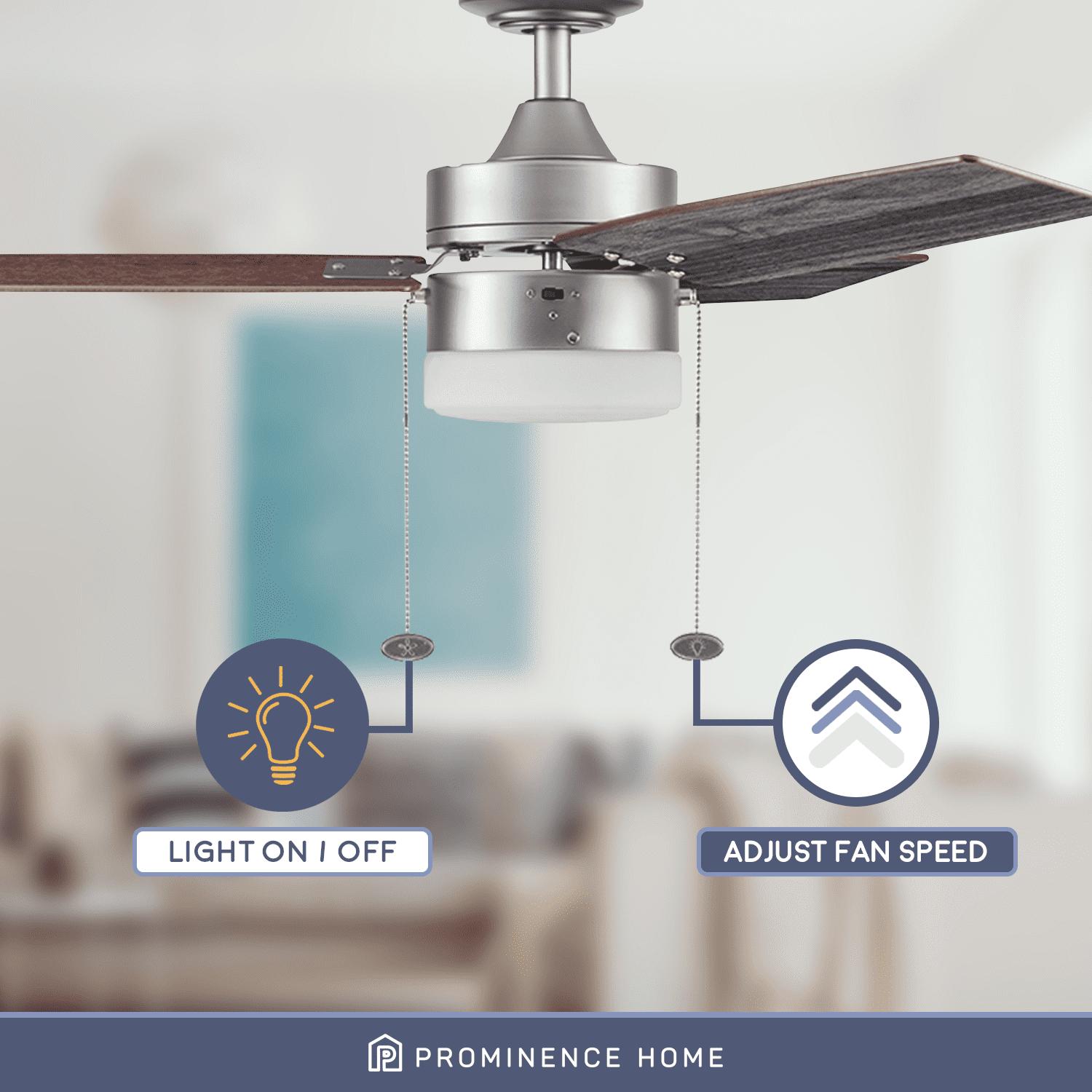 Prominence Home Reston 42 Pewter Ceiling Fan with Light, 3 Blades, Pull Chains and Reverse Airflow