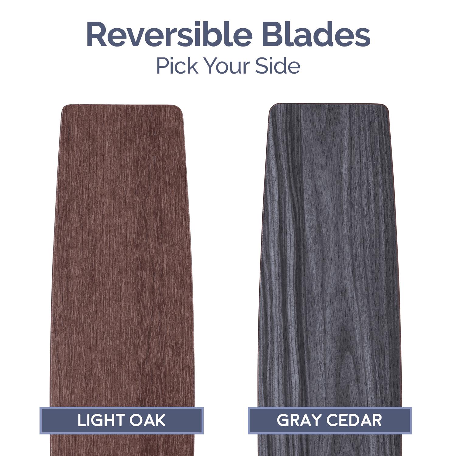 – DUAL-FINISH REVERSIBLE BLADES: The style is up to you! This ceiling fan comes with a different finish on each side of the blades. One side comes in a beautiful Gray Cedar finish, while the other side showcases a lovely Light Oak finish. Pick the look that best fits your space!