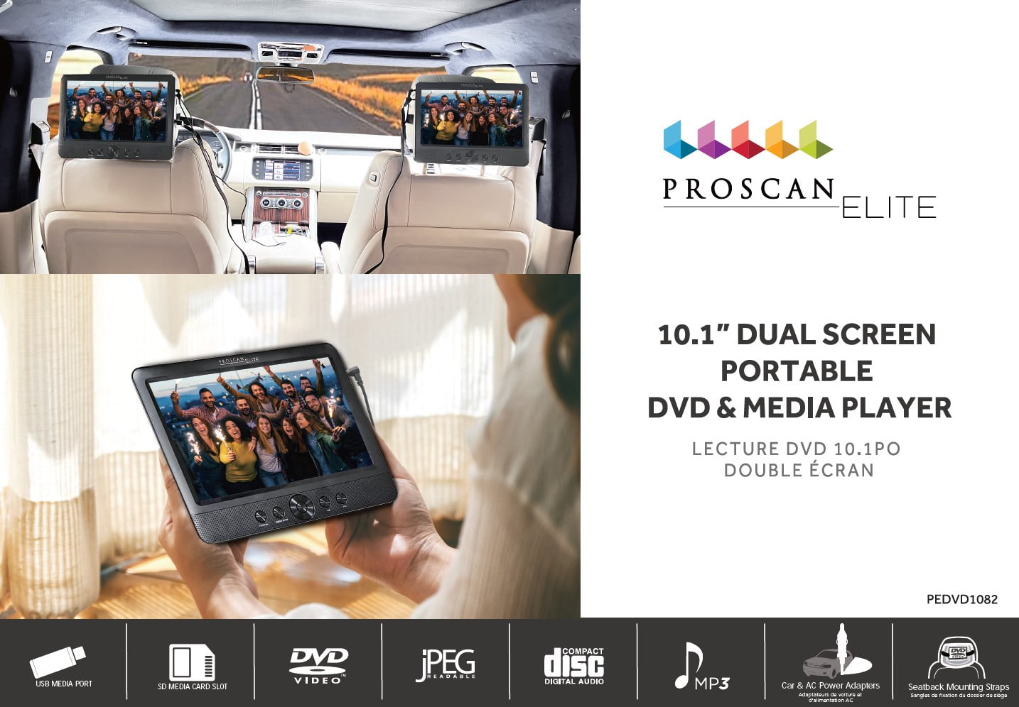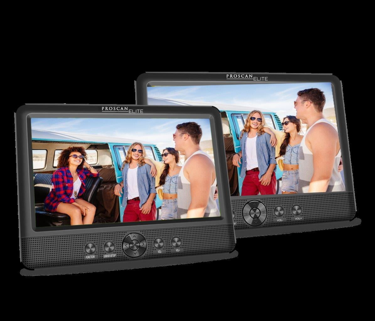 Proscan Elite, 10.1″ Dual Screen Portable DVD Media Player, PEDVD1082, Black