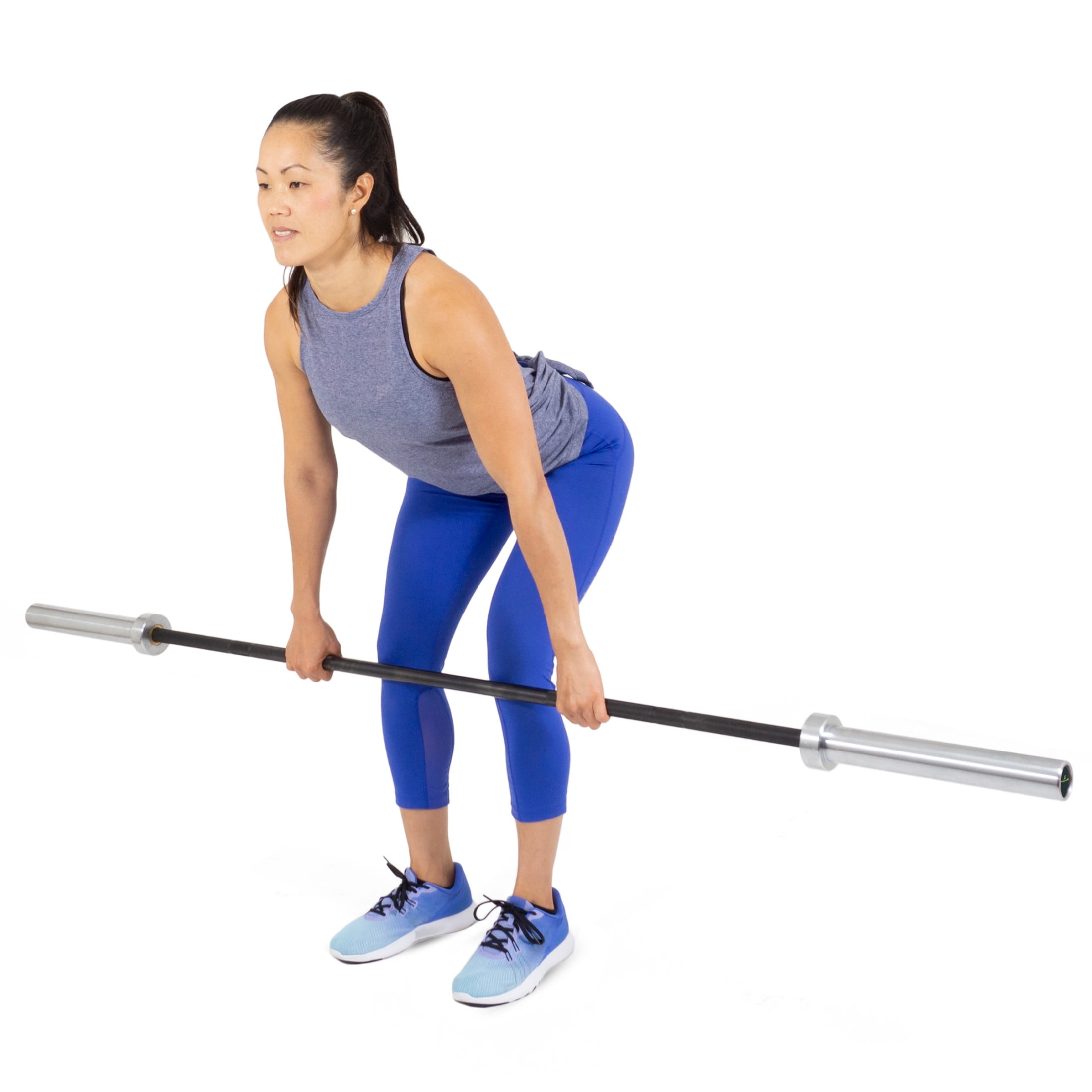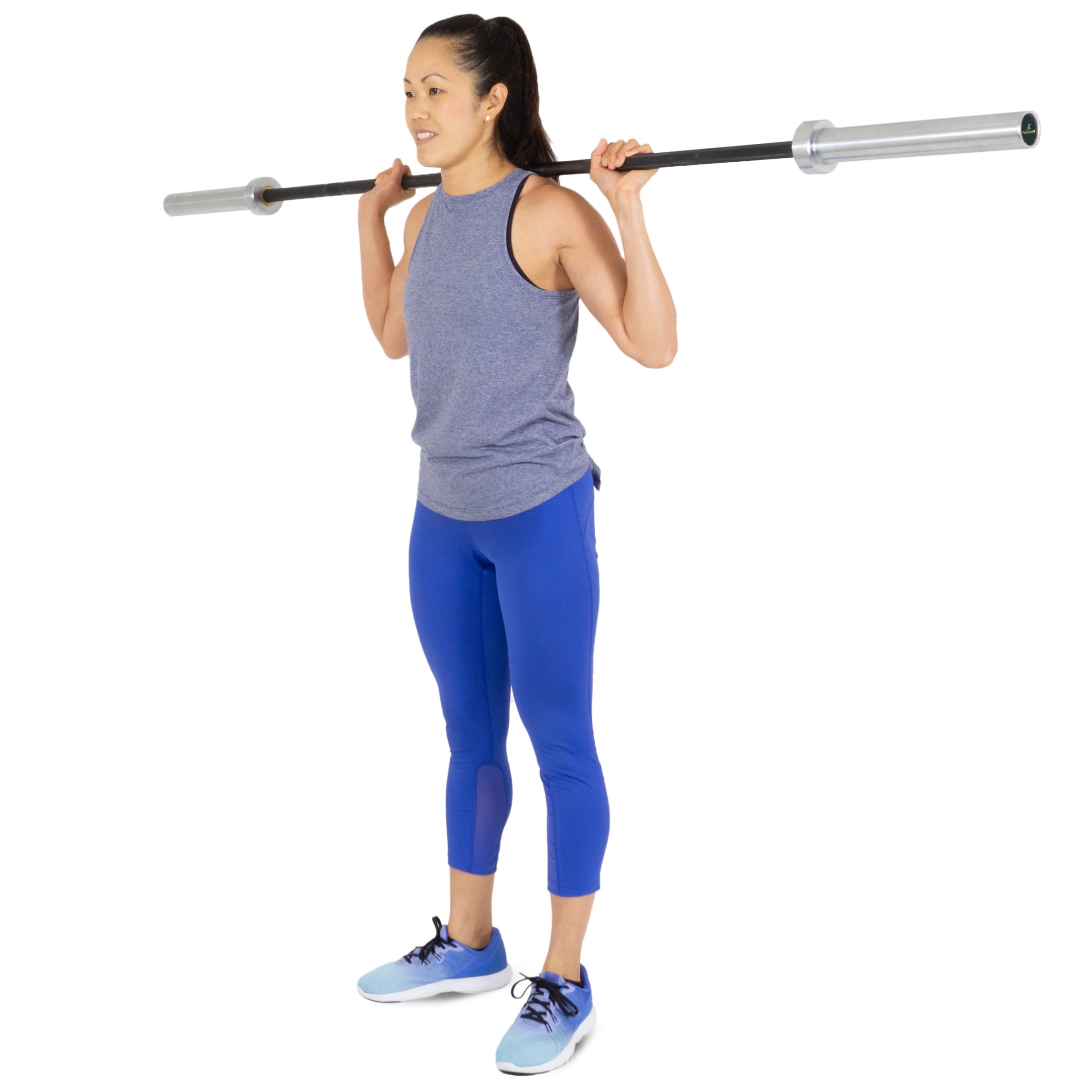 Multipurpose Olympic Barbell, Womens MULTIPURPOSE – Barbells are ideal for strength & power training, weightlifting & commercial or home gyms DURABLE STEEL – 160k PSI steel bar with phosphate finish & chrome sleeves for durability and rust-prevention OLYMPIC STANDARD SIZE BARS – Men’s: 44lb, 86.6” long, 28mm diameter. Women’s: 33lb, 79.13” long, 25mm diameter SMOOTH SPIN – Sleeves fit standard bumper plates and provide the right spin for exercises like cleans & snatches KNURL – Standard medium diamond knurl provides a secure grip with a smooth knurl-free center that is easy on back & hands