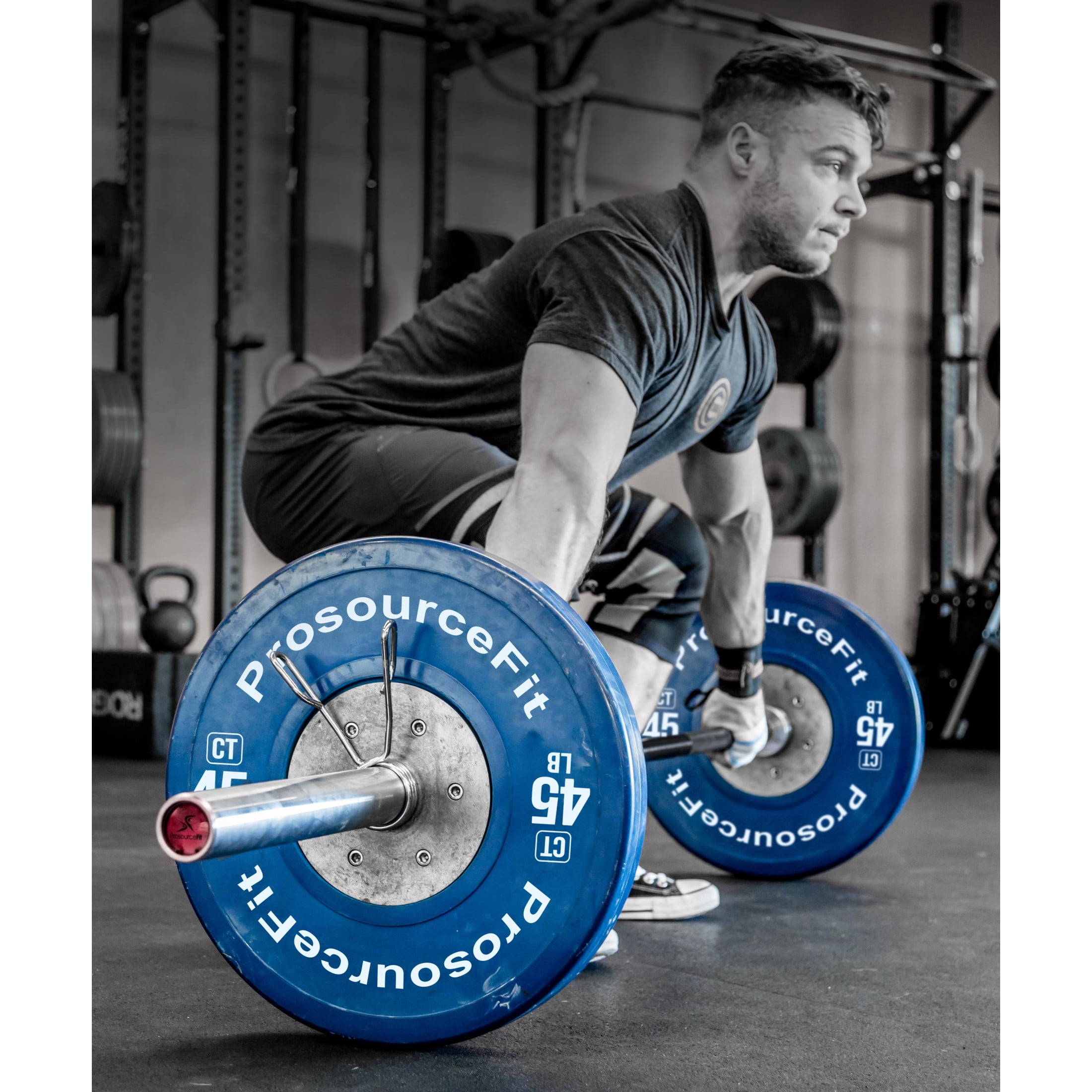 ProsourceFit Bumper Plates are built with the highest quality for use in cross-training or commercial gyms but are also perfect for garage gyms and home use. These plates offer low bounce with a durometer of 88 (+/-5), so they won’t fly around the floor when you drop them. The solid rubber design can withstand repeated drops and won’t damage your floors like other plates. The narrow width of each plate allows you to fit more weight on your barbell. (Durometer measurements indicate the density of the rubber and how much a plate bounces when dropped, with 100 being hard with no bounce and 65 being softer with a lot of bounce.) CT – series The color training bumper plates have IWF competition-standard colors and markings. Plates are also calibrated to competition standards for the most accurate weights. Each plate has a diameter of 450mm and width varies from 30-72mm depending on weight. Plates have zinc steel inserts and fit barbells with two-inch sleeves. SR – series The solid rubber bumper plates have a diameter of 450mm and the width varies from 30-60mm depending on weight. Solid rubber bumper plates have stainless steel inserts and fit on 2-inch barbell sleeves. For questions or concerns, please contact customer service: (855) 552-2637. We are open Monday – Friday from 8:30AM – 4:30PM Pacific Standard Time