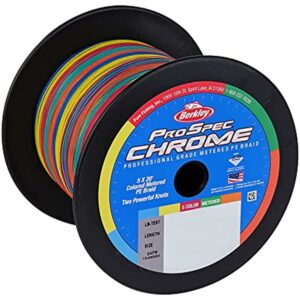 At last – a premium metered braid that fully suits the needs of the North American big game angler. New Berkley ProSpec 5 x 20 Metered Braid is ProSpec Premium Saltwater Braid marked with a 5-color pattern _each color is 20-foot in length for easy and repeatable marking of line depth and distance.