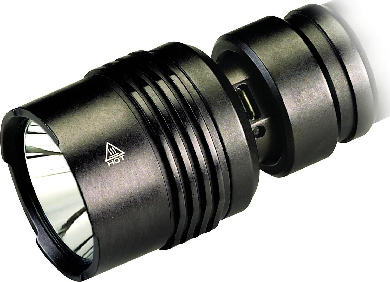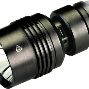 – TEN-TAP Programming – choice of three operating modes: 1.) high/strobe/low; 2.) high only; 3.) low/medium/high: High: 1,000 lumens; 35,000 candela; 374m beam; runs 1.5 hours Medium: 400 lumens; 14,100 candela; 237m beam; runs 3 hours Low: 65 lumens; 2,250 candela; 95m beam; runs 20 hours Strobe for signaling or disorienting: runs 3 hours
